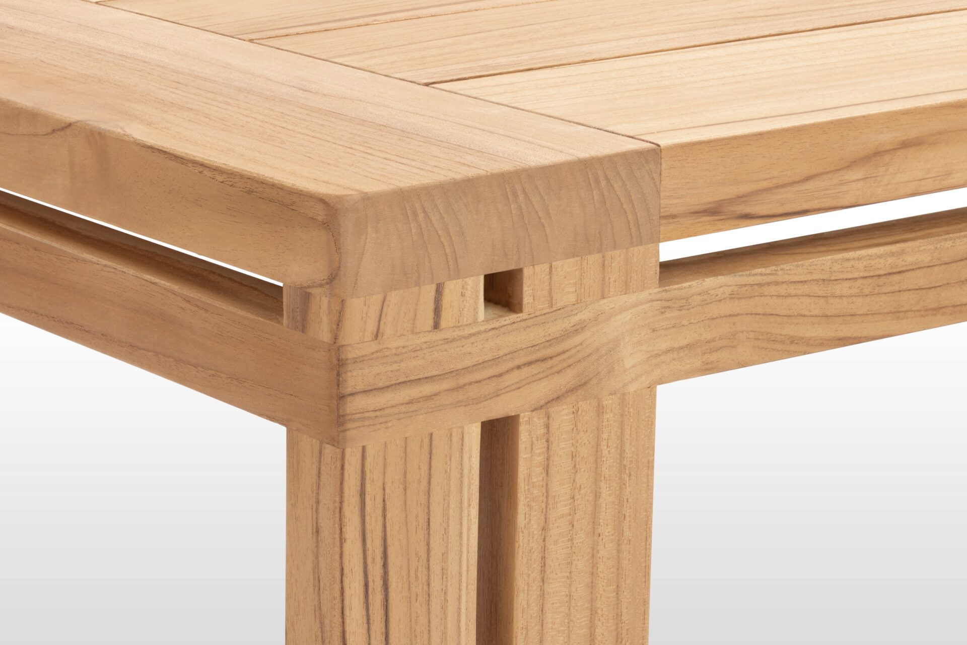 Constructed from high-quality teak wood well-known for its durability, the Lusso Outdoor Collection is designed to endure outdoor conditions without compromising its aesthetic appeal over time. The rich, golden tone of the teak wood imparts a sense of coziness and elegance to any outdoor area, fostering a welcoming ambiance for gatherings with family and friends.