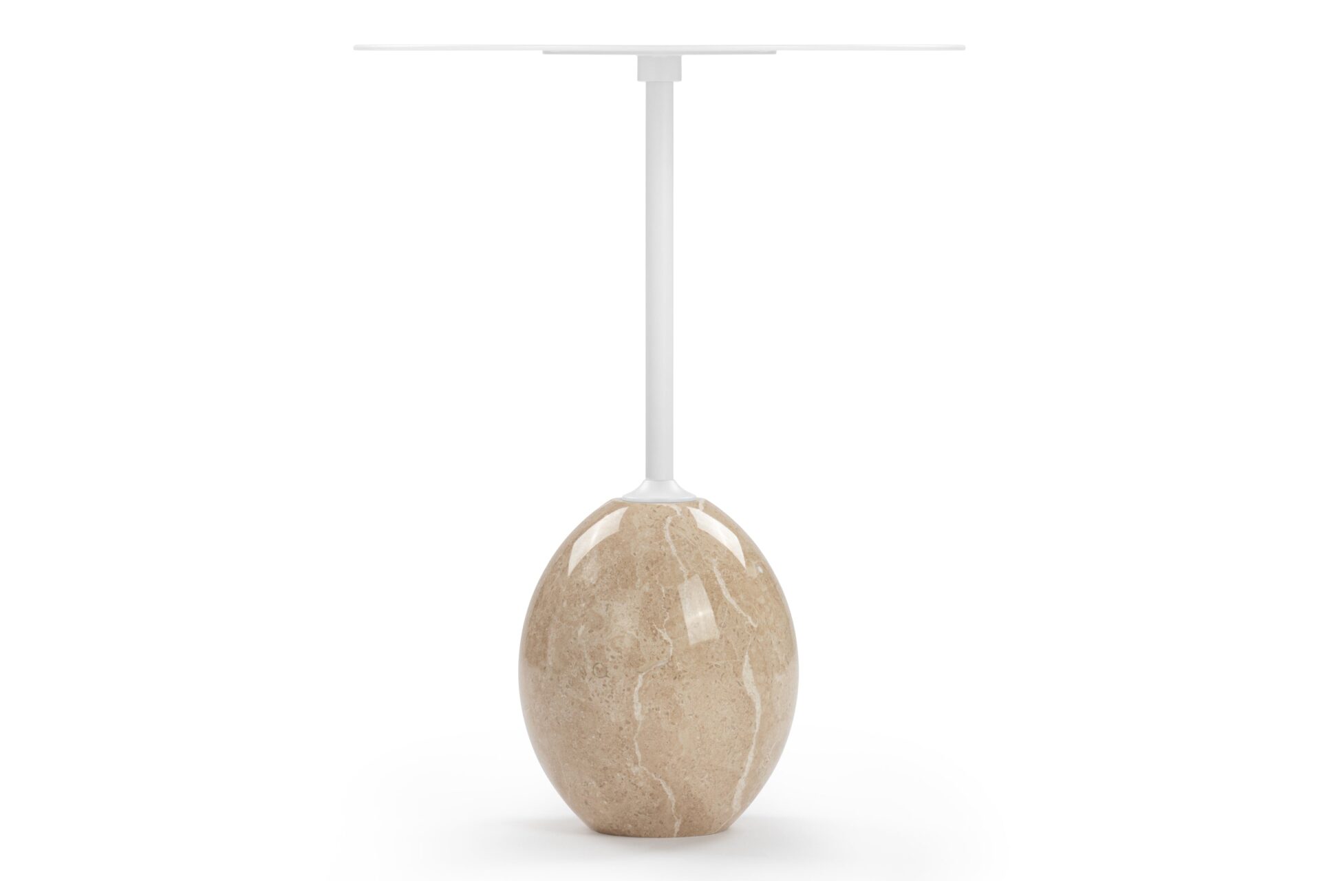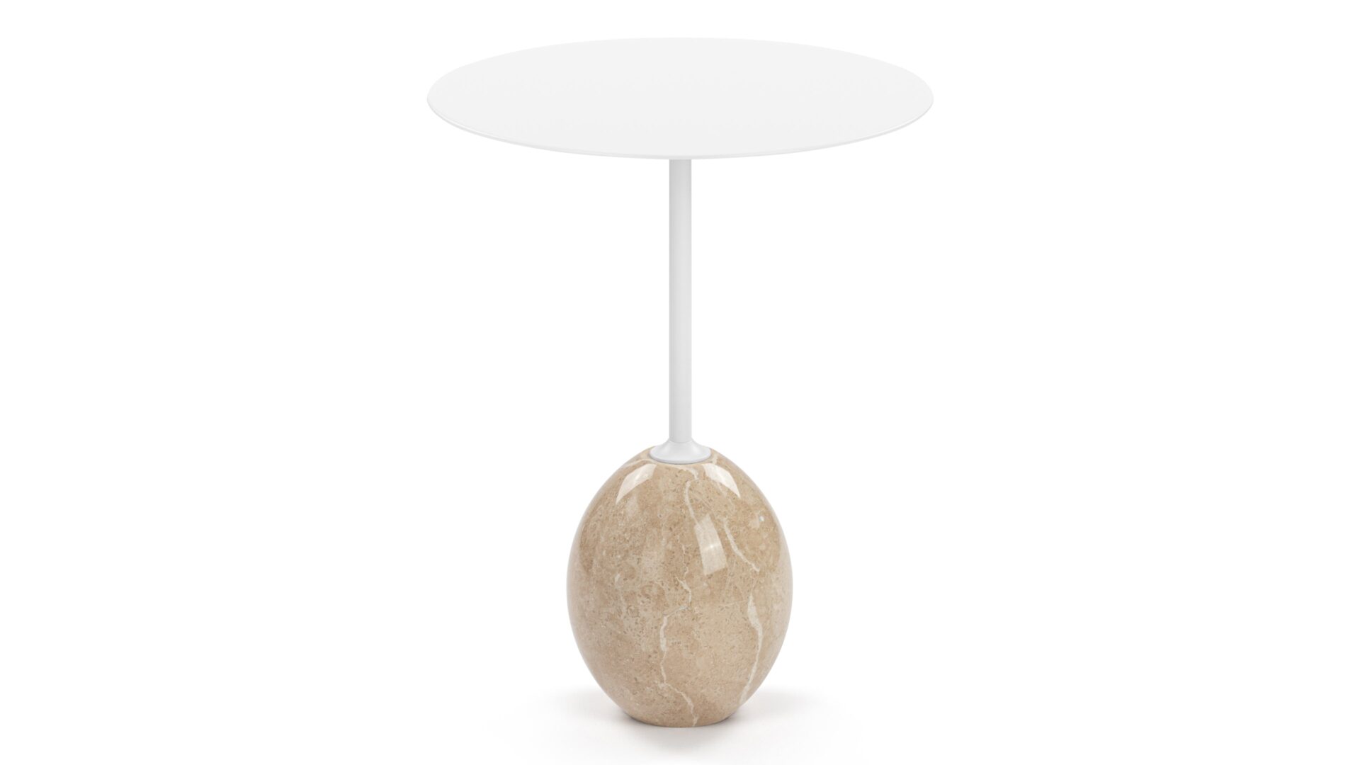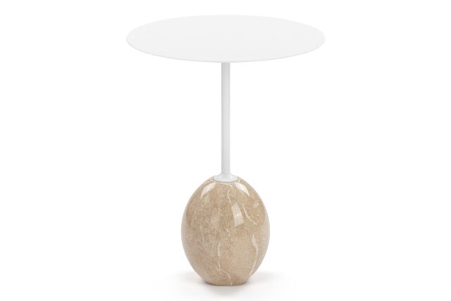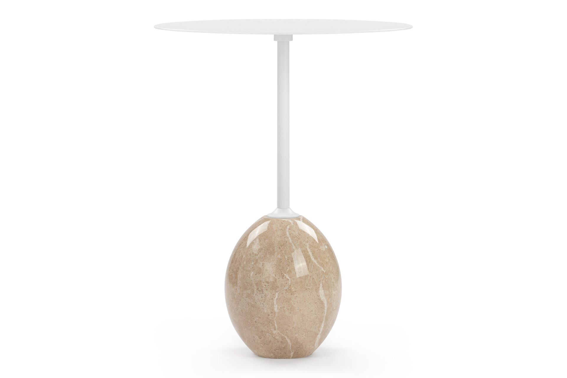 Discover the elegant Malmo Side Table boasting a marble base and a metal frame and tabletop in a matte white finish. This design strikes a harmonious balance between softness and strength, featuring a circular tabletop and a discreet presence that effortlessly complements diverse interiors. The warm-toned marble with its rich cream hue exudes sophistication, elevating any living space.