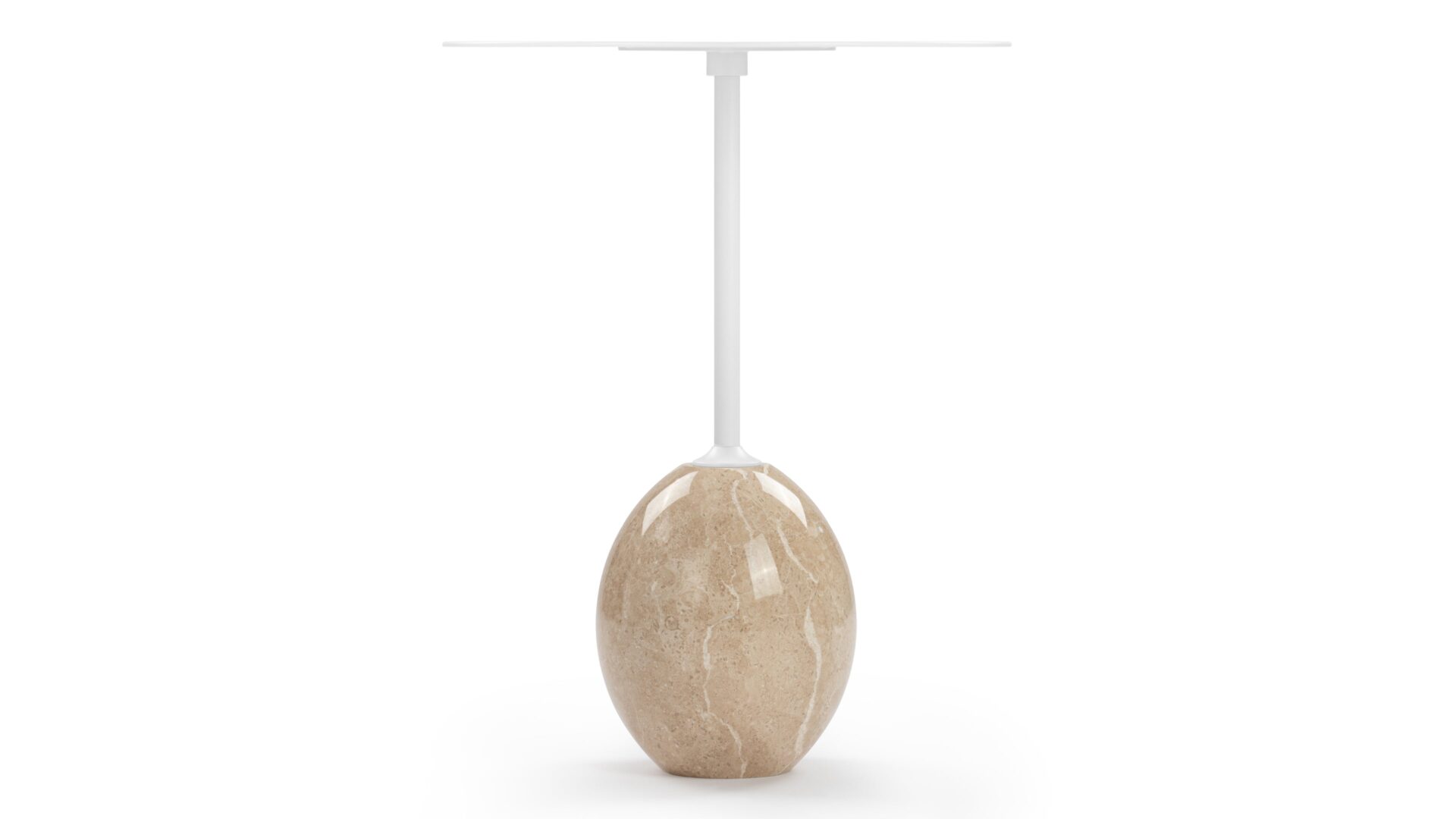 Discover the Malmo Side Table, an elegant furniture piece featuring a marble base, matte white metal frame, and circular tabletop. Balancing softness and strength, this table exudes sophistication with its warm-toned marble and sleek design, perfect for various interiors. Inspired by Italian aesthetics, it merges natural materials into a practical yet stylish piece, ideal for compact spaces. Elevate your space with this refined and space-saving table, enhancing it with a statement vase or decorative accents for a chic touch.