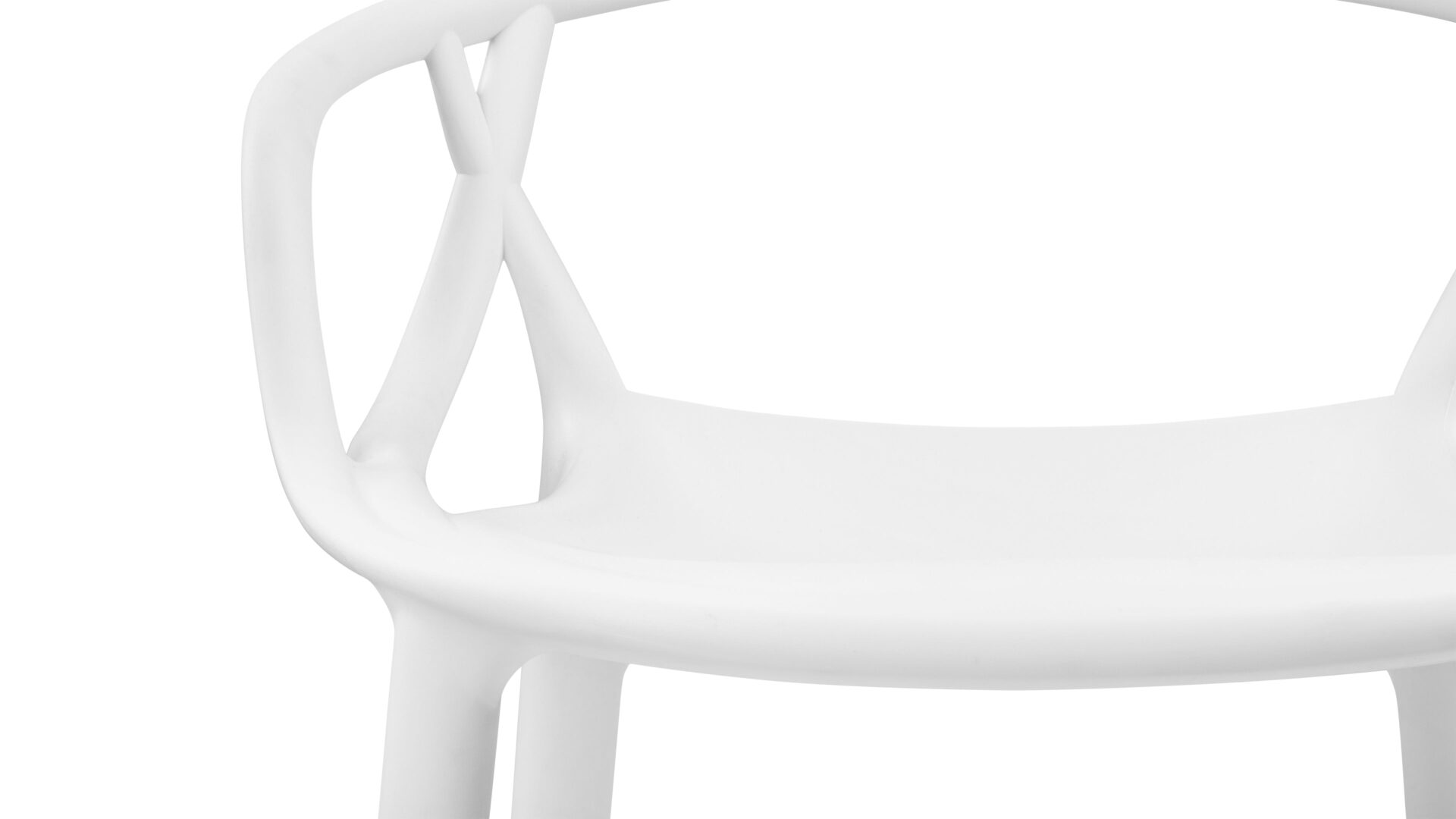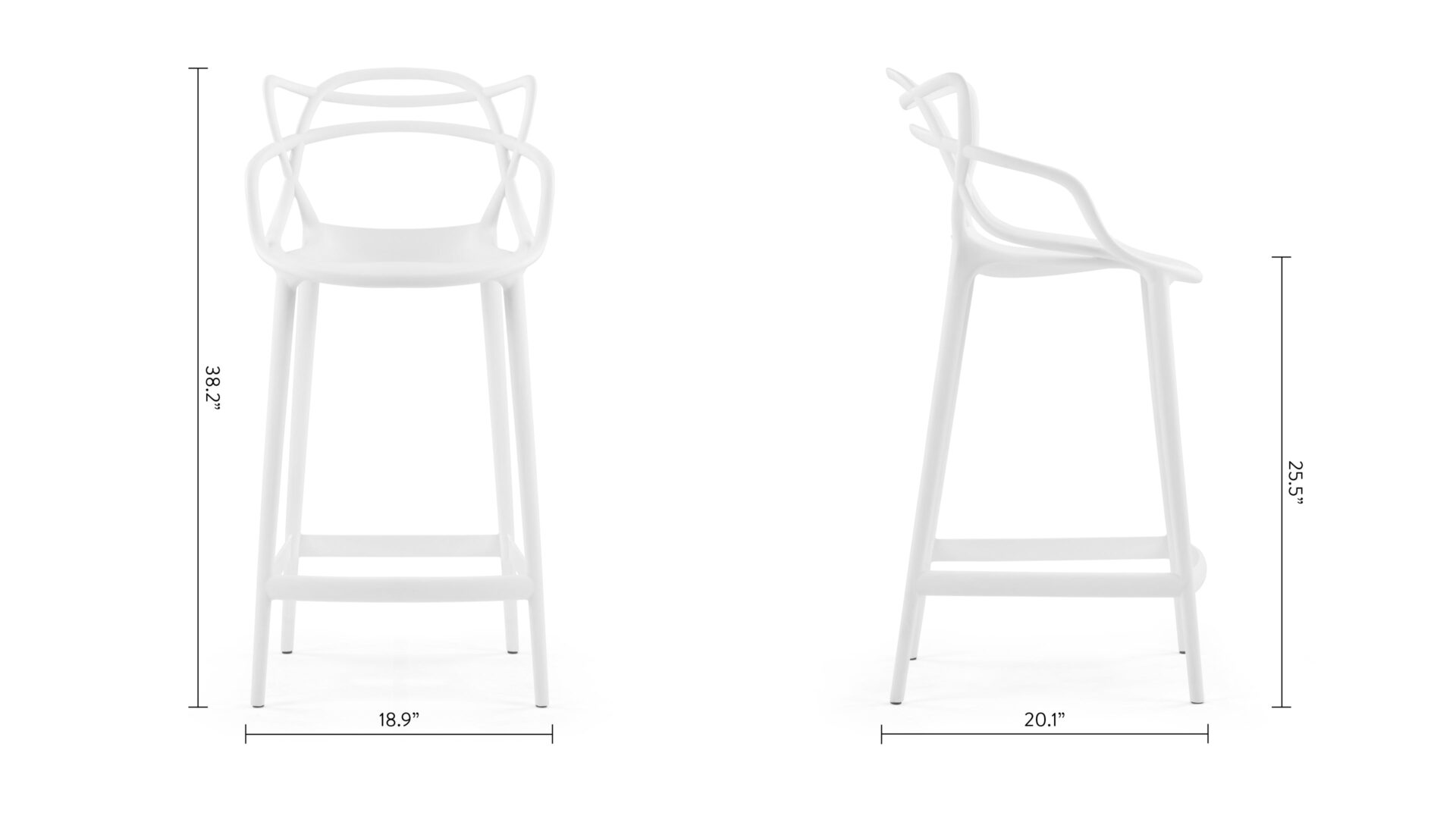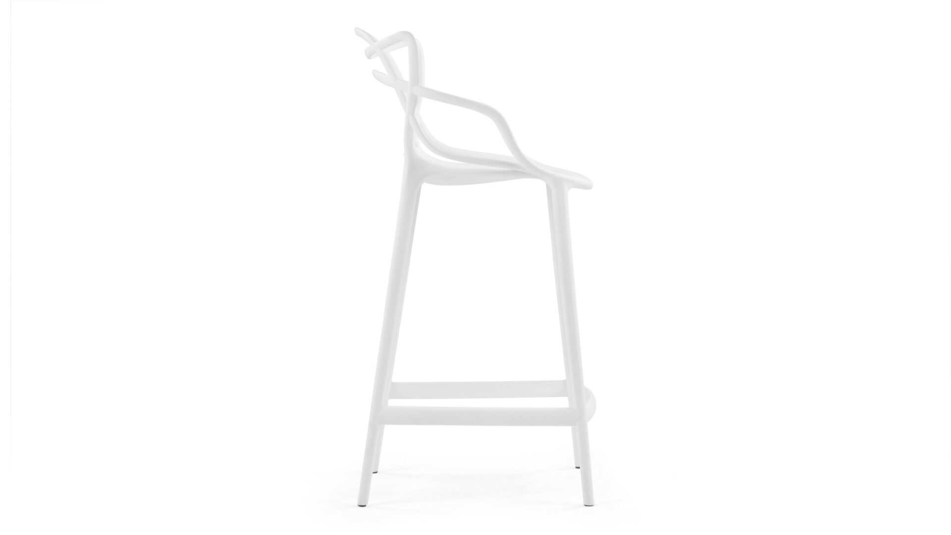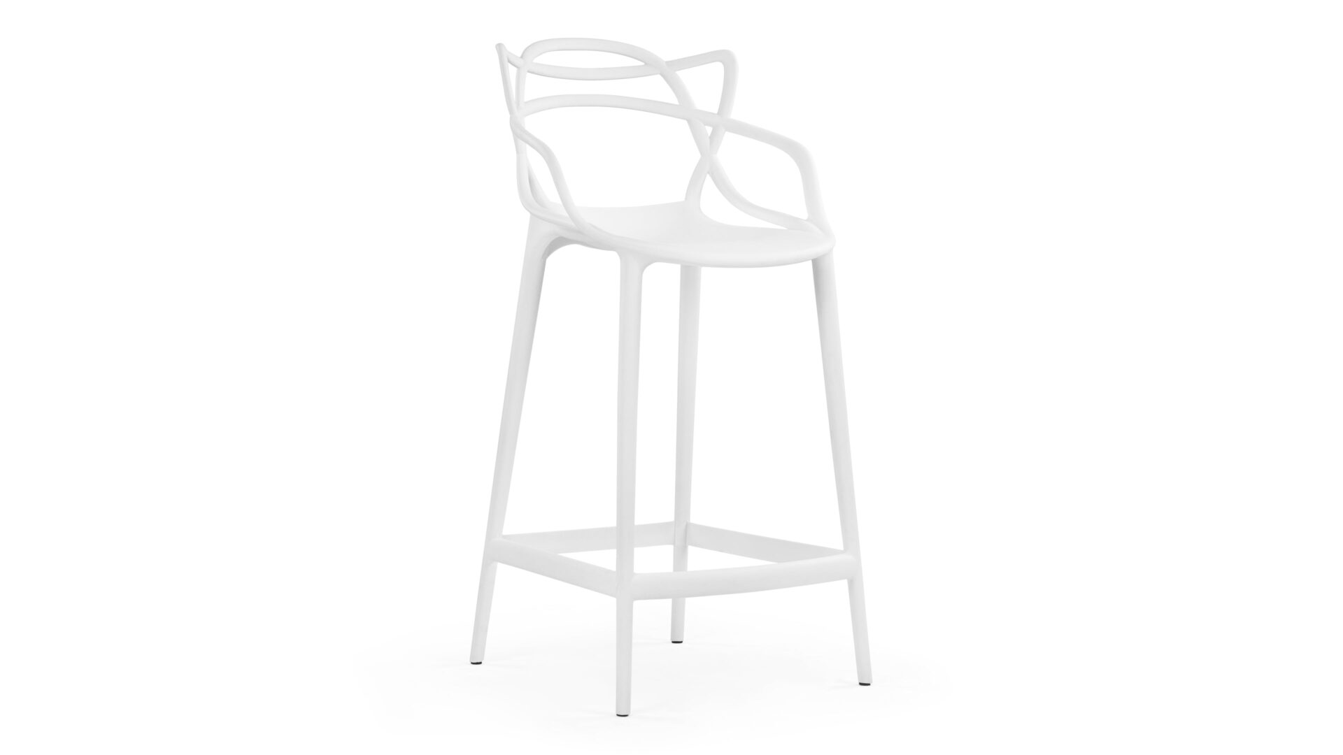 Discover the captivating essence of fluidity and elegance with the Master's Collection. The iconic Masters chair, featuring a contemporary backrest and subtly tapered legs, presents a harmonious balance of bold aesthetics and practical affordability. Meanwhile, the timeless appeal of the white Master's counter stool embodies enduring design excellence, seamlessly blending exceptional craftsmanship with a fresh contemporary design for modern living spaces.