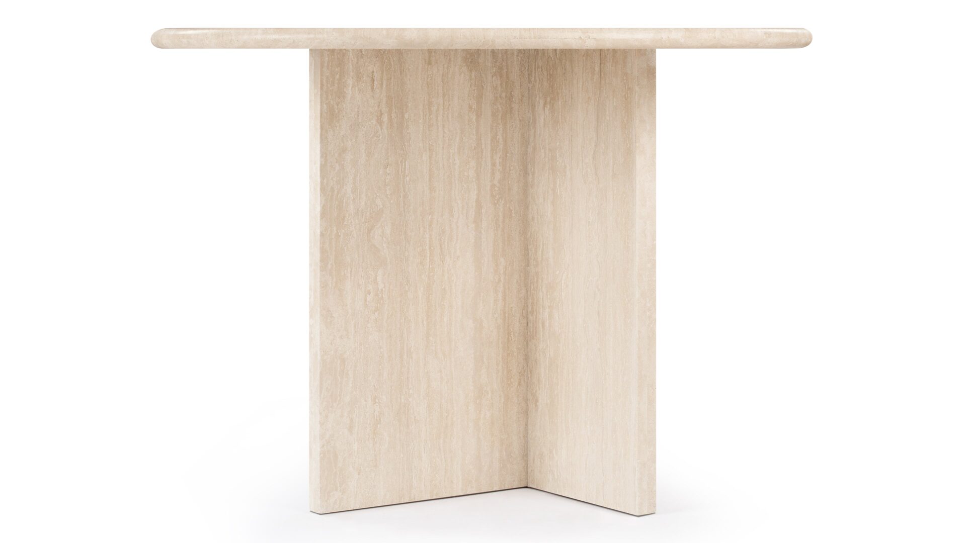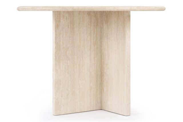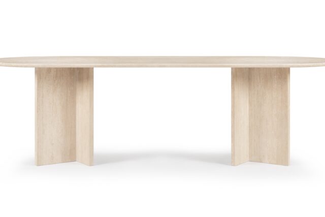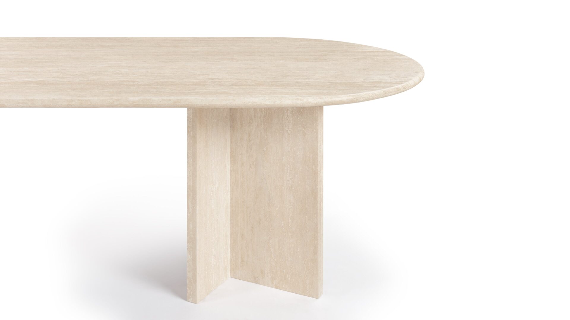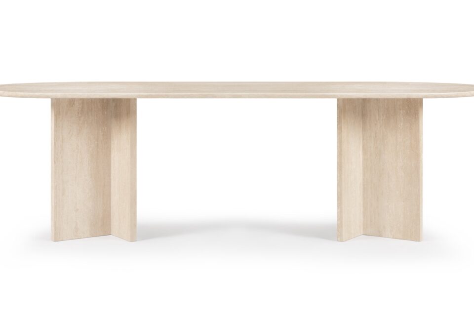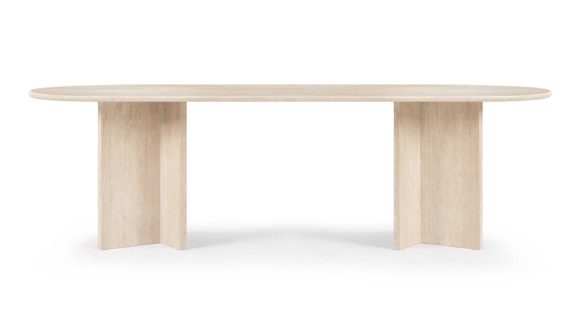 Discover the Maui Dining Table, an elegant centerpiece crafted with a rounded Travertine stone profile that comfortably seats up to 10 guests. Its fusion of smooth edges, angular legs, and intersecting leg framework showcases a contemporary aesthetic, blending durability with timeless sophistication. Available in warm, neutral tones, this table complements diverse decor themes, infusing your space with a harmonious blend of style and functionality.