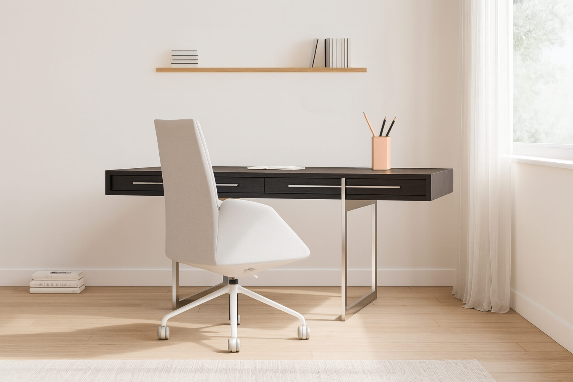 Not only does this desk chair elevate comfort, but it also introduces a chic, minimalist charm to any office or home workspace. The fusion of soft fabric and sleek metal details creates a versatile piece that exudes both practicality and a modern aesthetic. Ideal for extended work sessions, this chair harmoniously blends style and utility to deliver an exceptional seating experience.