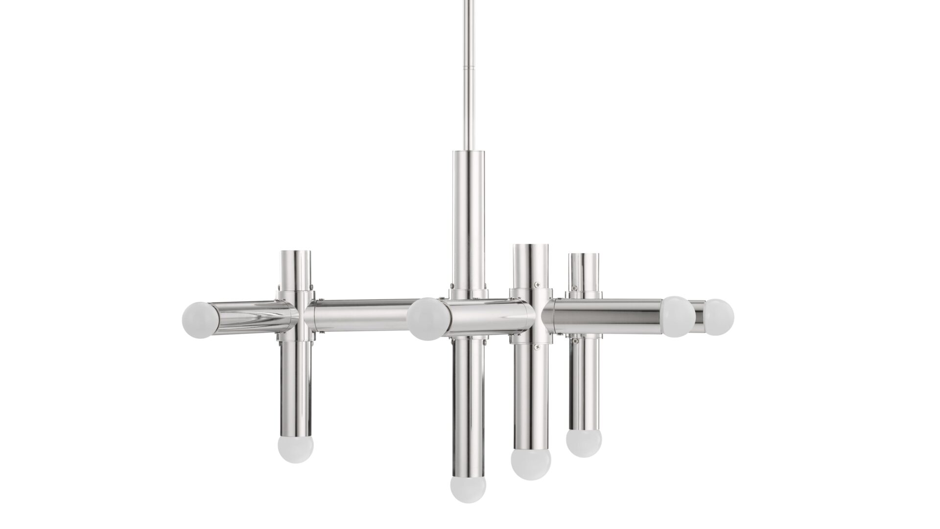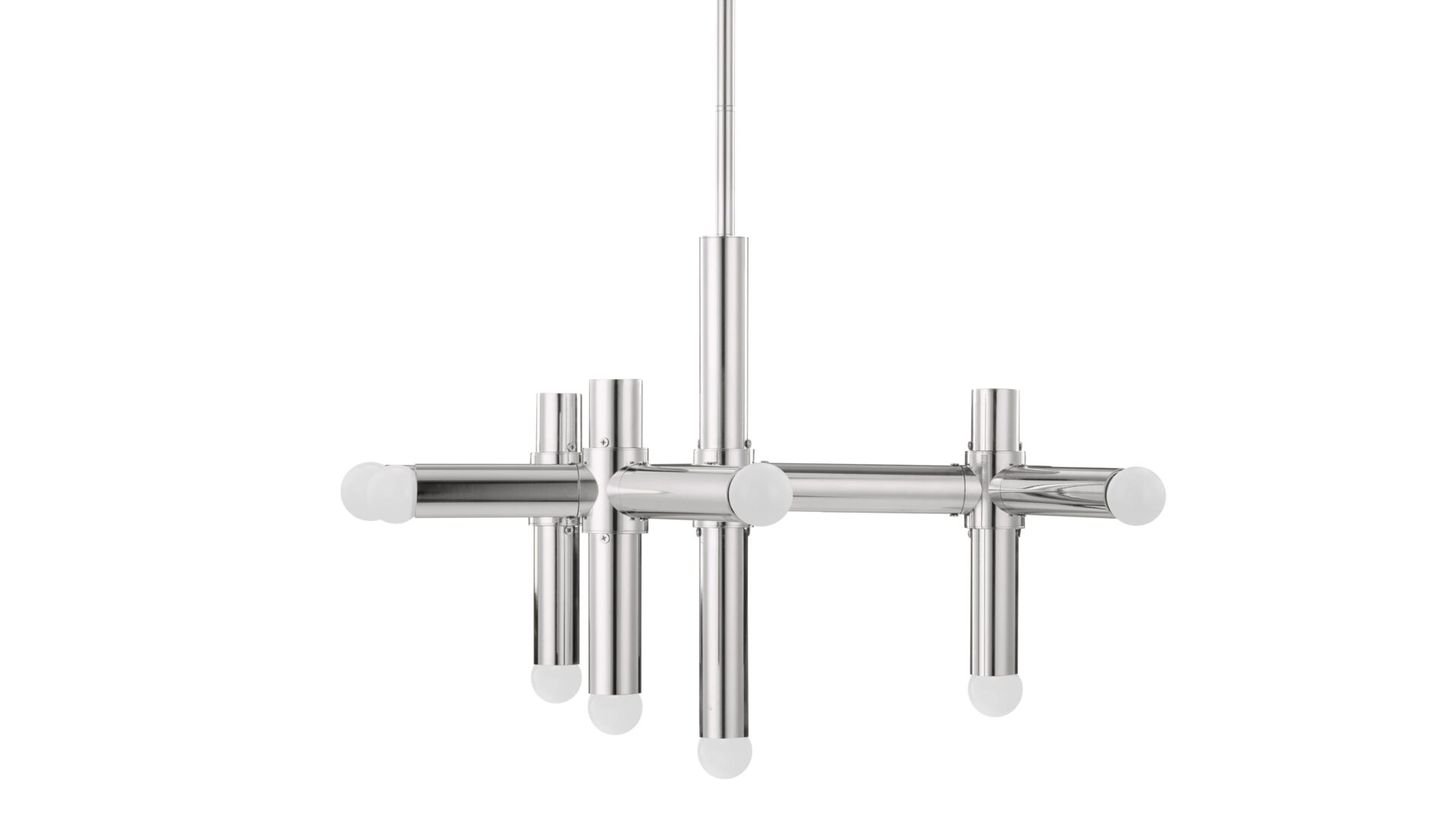 A practical and aesthetically pleasing lighting solution, the Moda Chandelier is enhanced by smaller bulbs that harmonize with its design without overpowering it. Its futuristic silhouette makes it a perfect fit for contemporary settings, whether elegantly suspended above a dining table or serving as a focal point in a living space.