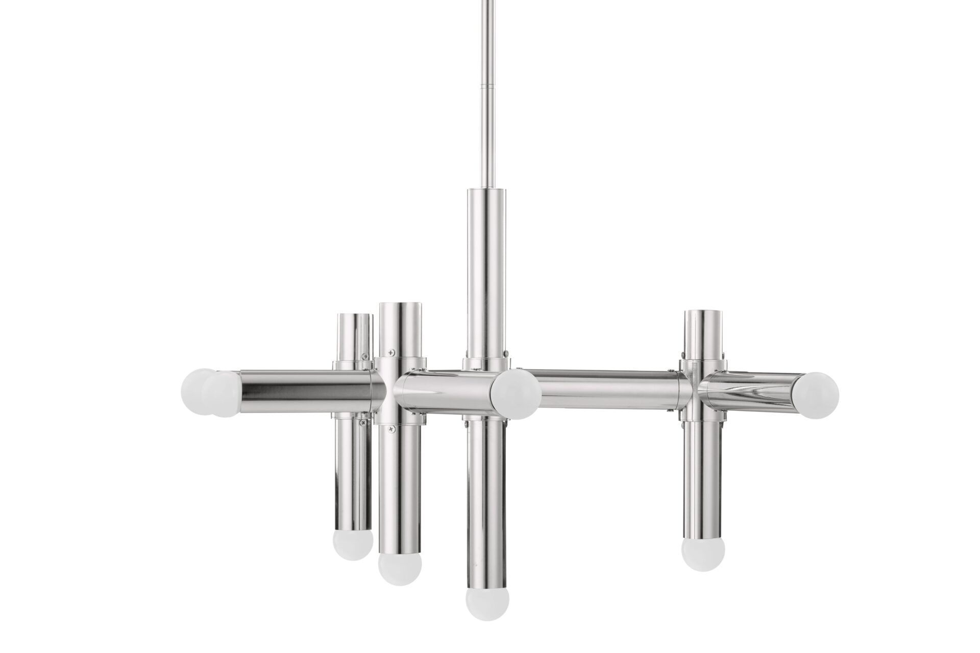 Introducing the Moda Chandelier, featuring a striking fractal design with sturdy arms branching into trios, creating a captivating technological aesthetic. The chrome finish enhances its futuristic silhouette, making it a perfect fit for modern settings. Pair with smaller bulbs for a balanced look that highlights its intricate geometric precision, creating a bold focal point in any room.