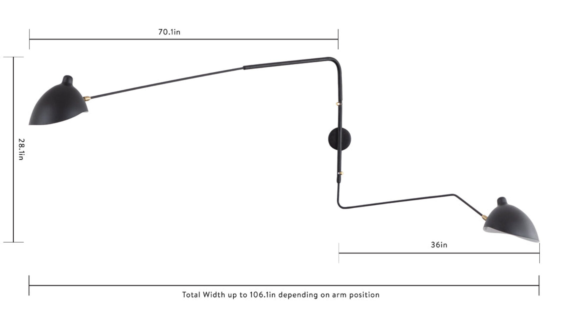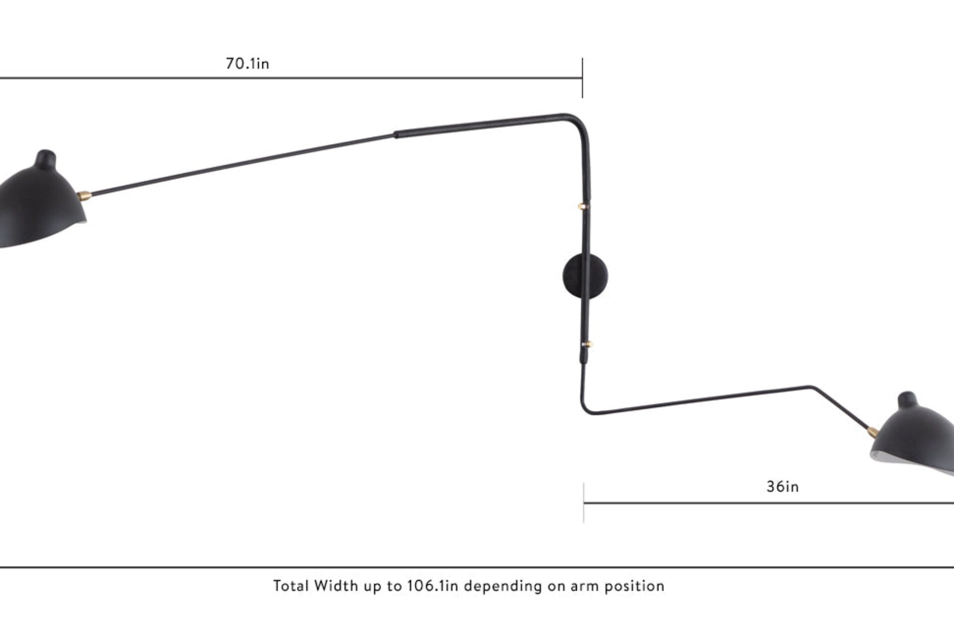 - Features: The length of the longer arm 70.1" and shorter arm 36" from the wall mounting point to the outer edge of the shade.