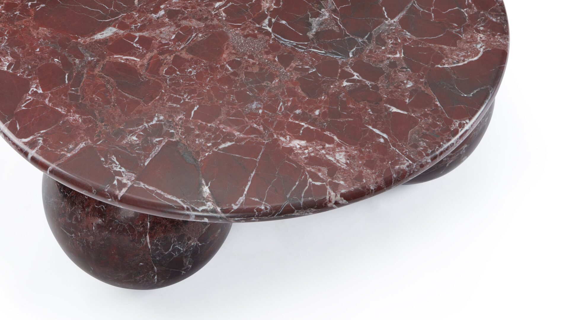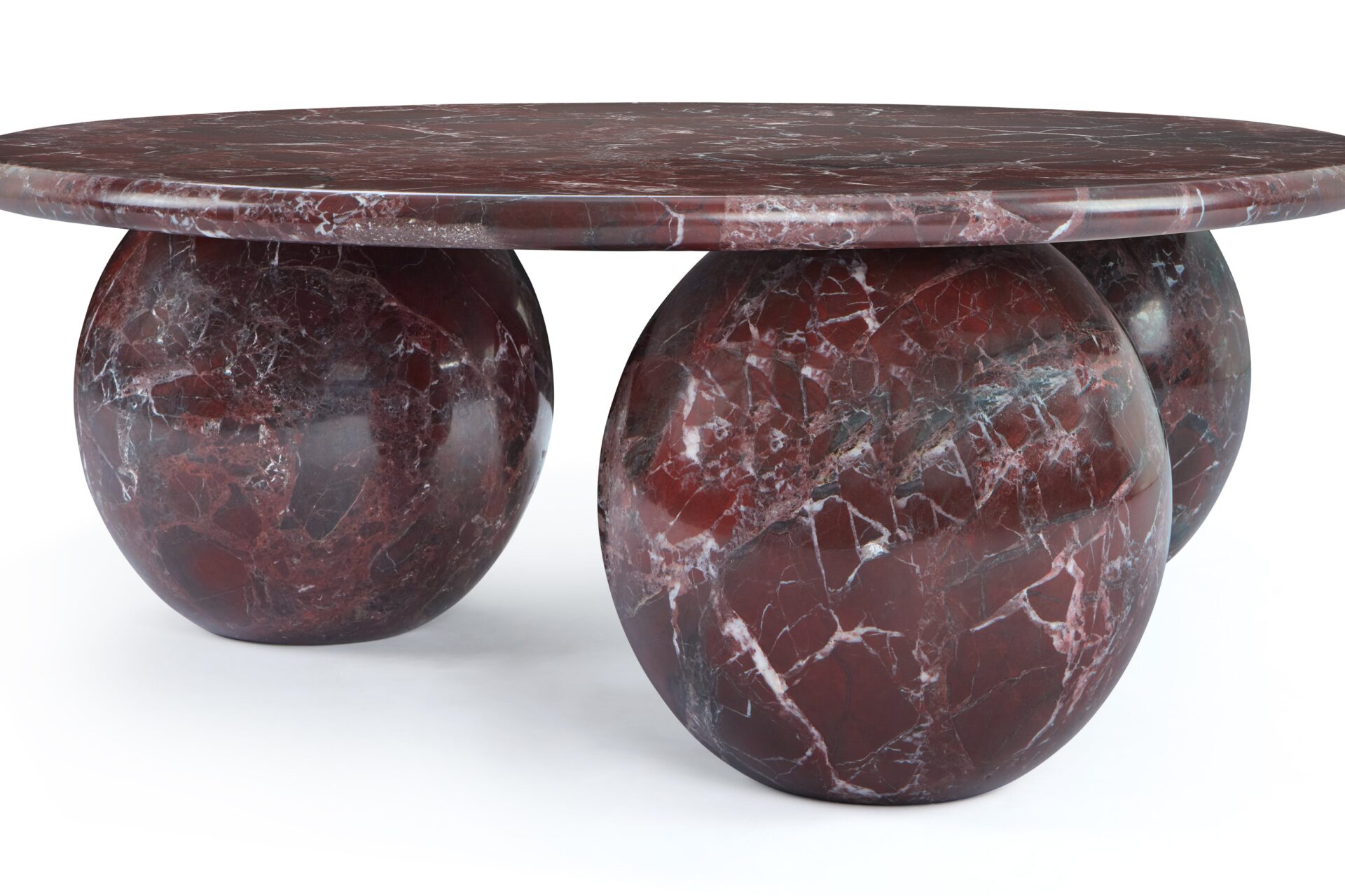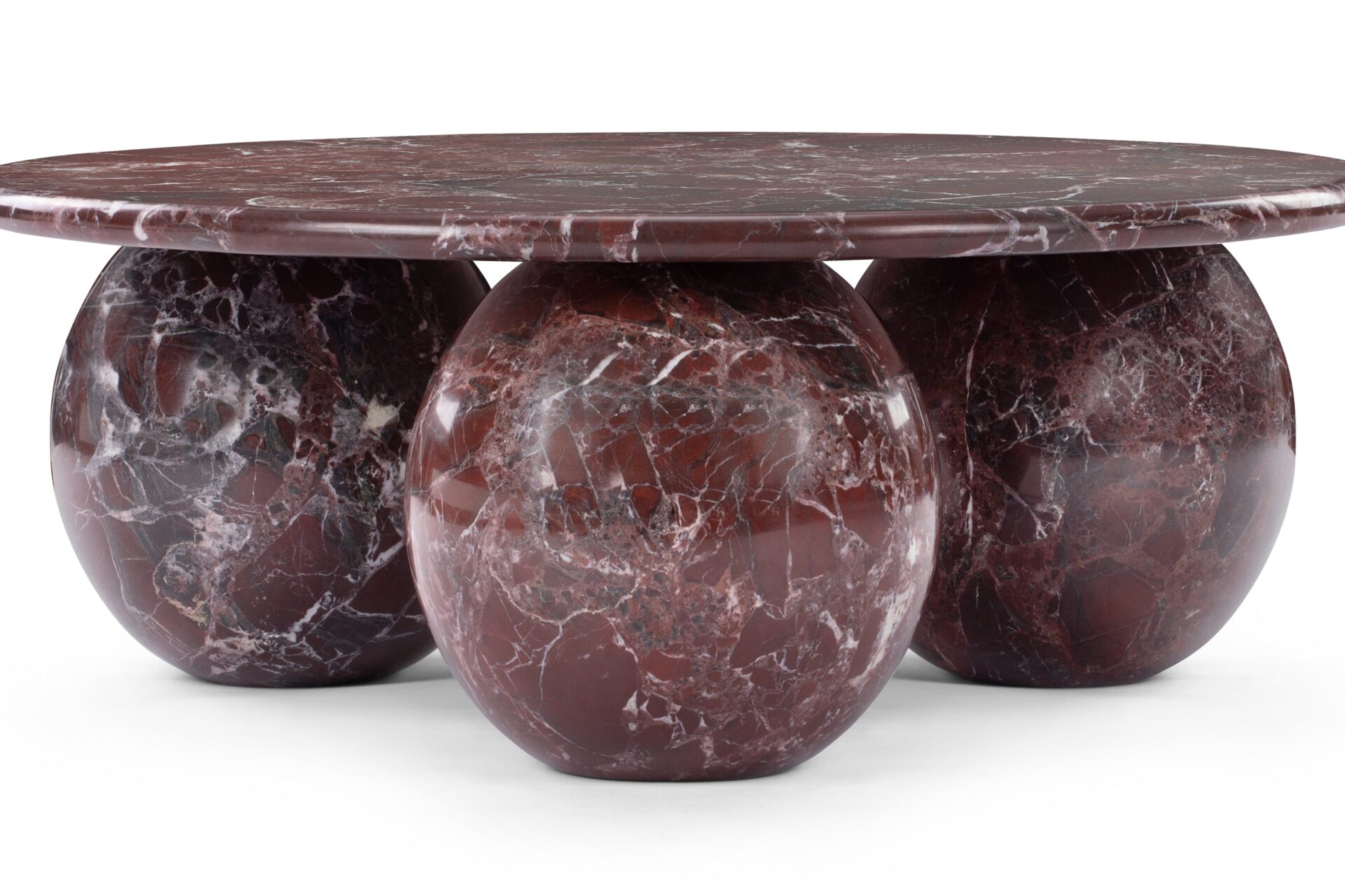 Introducing the Mya Coffee Table in Rosso Levanto Marble – a stunning blend of organic beauty and contemporary design that effortlessly commands attention in any living area. With its meticulously crafted three-sphere base and round top showcasing the unique patterns of authentic Italian stone, this table radiates timeless sophistication. Elevate your decor with its vibrant style and modern curvature, offering both artistry and functionality to curate a space that mirrors your discerning taste.