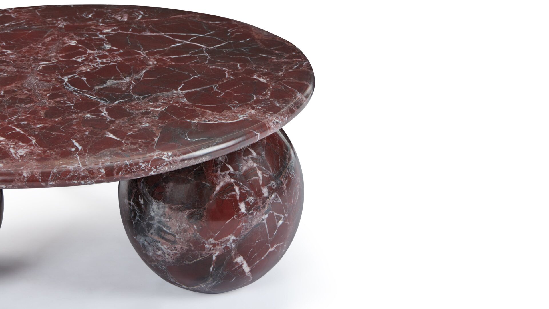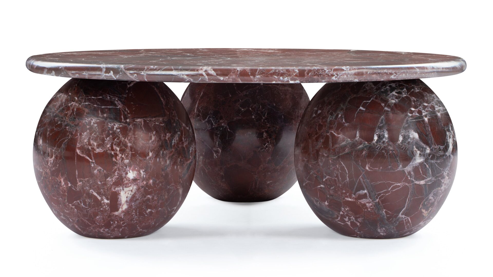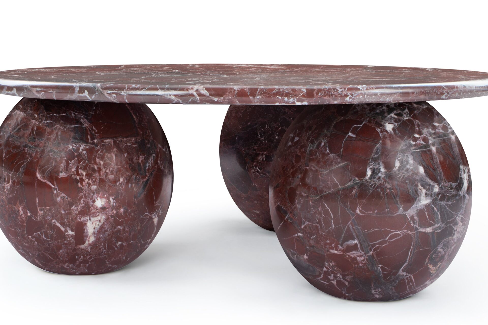 Introducing the Mya Coffee Table in Rosso Levanto Marble – a stunning blend of organic beauty and contemporary design that effortlessly commands attention in any living area. With its meticulously crafted three-sphere base and round top showcasing the unique patterns of authentic Italian stone, this table radiates timeless sophistication. Elevate your decor with its vibrant style and modern curvature, offering both artistry and functionality to curate a space that mirrors your discerning taste.