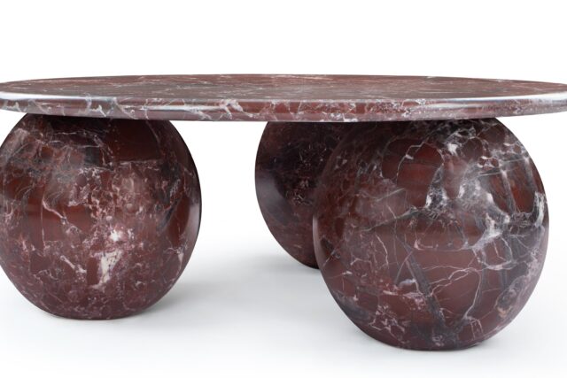 The Mya Coffee Table features a distinctive and forward-thinking design that distinguishes it from ordinary tables, presented in a breathtaking natural stone. Its meticulously crafted three-sphere base introduces a captivating visual appeal, elevating the space with a hint of sculptural sophistication. The harmoniously balanced spherical shapes suggest fluidity and movement.
