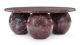 Introducing the Mya Coffee Table in Rosso Levanto Marble – a stunning blend of organic beauty and contemporary design that effortlessly commands attention in any living area. With its meticulously crafted three-sphere base and round top showcasing the unique patterns of authentic Italian stone, this table radiates timeless sophistication. Elevate your decor with its vibrant style and modern curvature, offering both artistry and functionality to curate a space that mirrors your discerning taste.