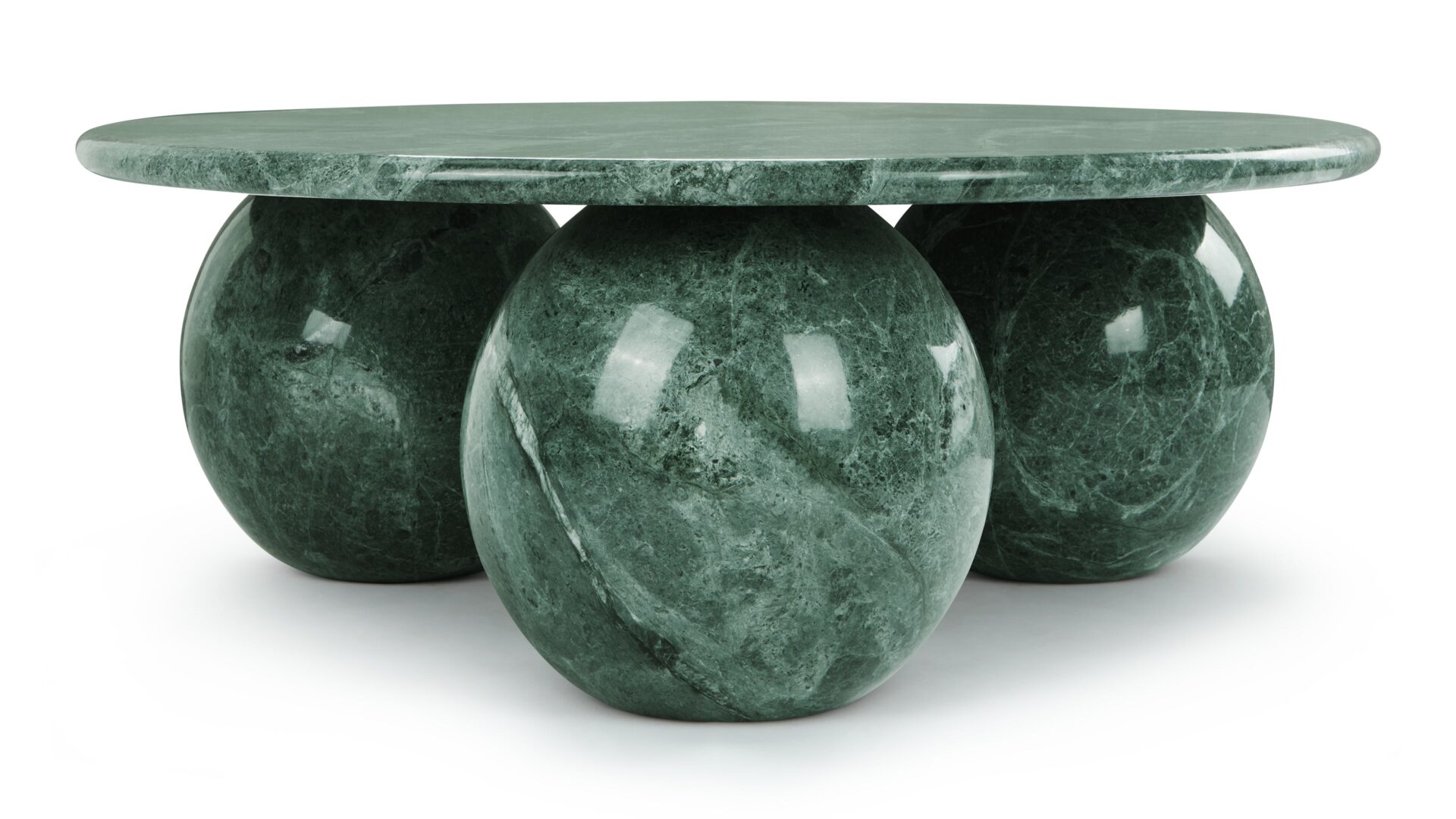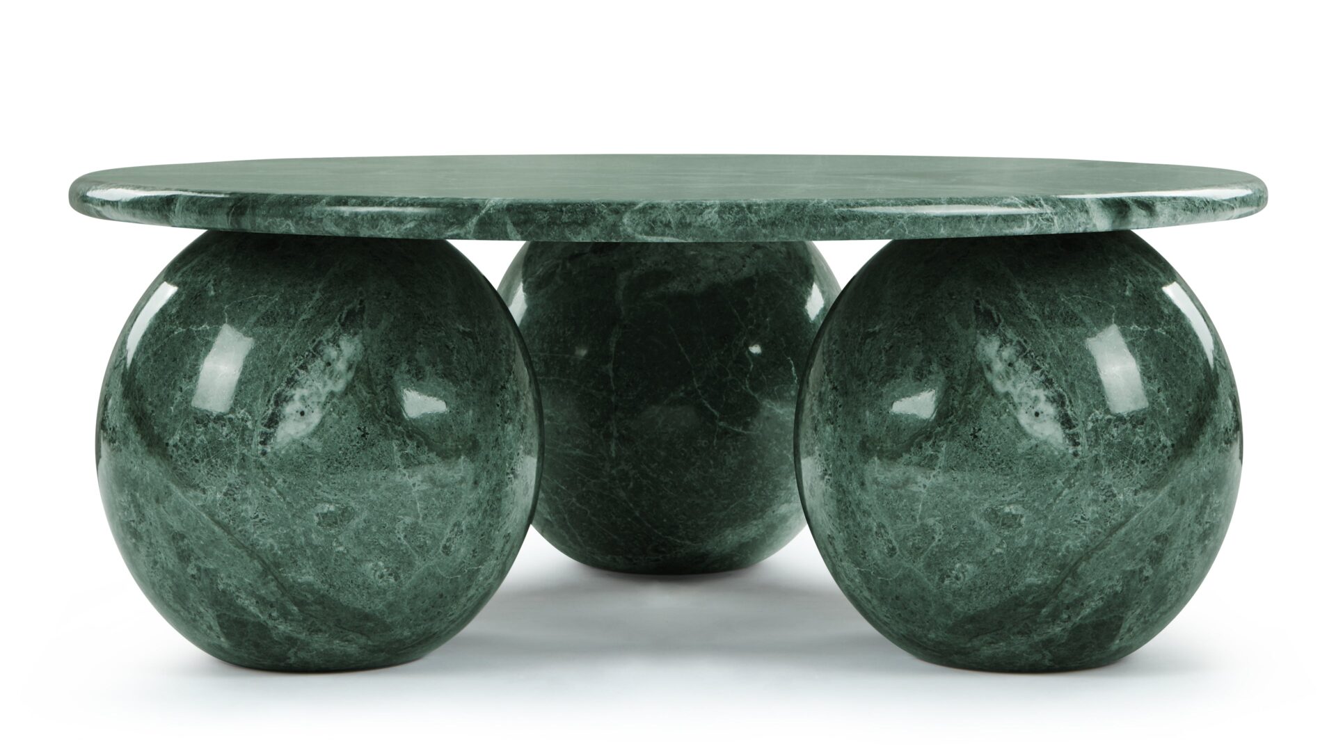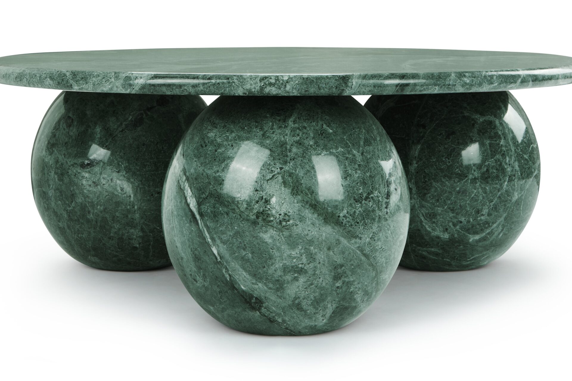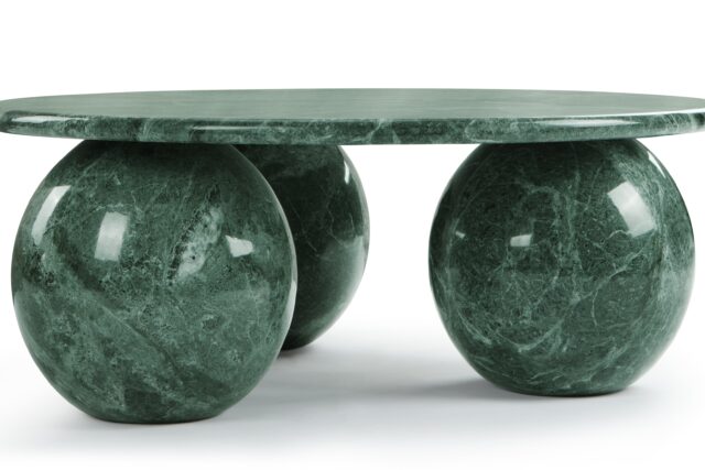Introducing the exquisite Mya Coffee Table, a captivating fusion of contemporary design and natural beauty. Crafted from green marble, this striking piece emanates organic sophistication and elegance. Its expertly sculpted three-sphere base adds a touch of sculptural sophistication, while the round tabletop provides ample space for decor. Elevate your living space with the harmonious balance of style and functionality embodied by the Mya Coffee Table in Green Marble.