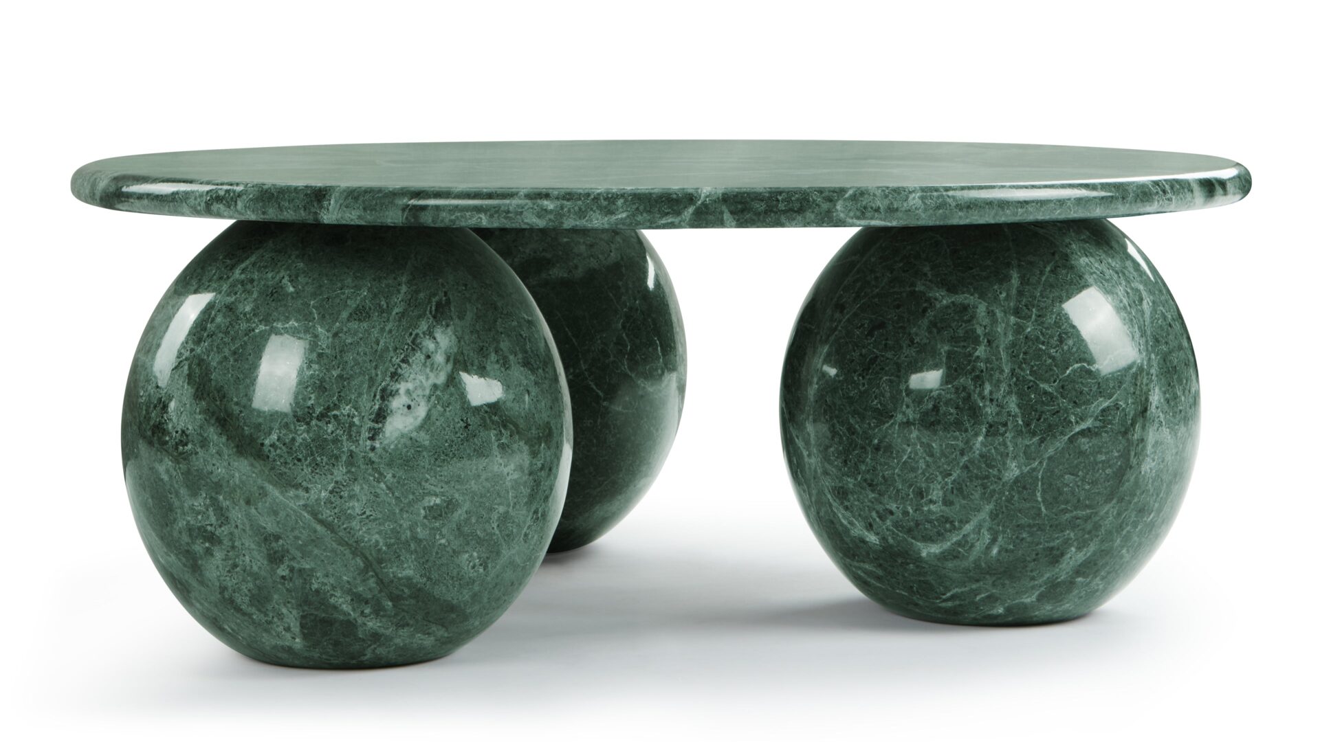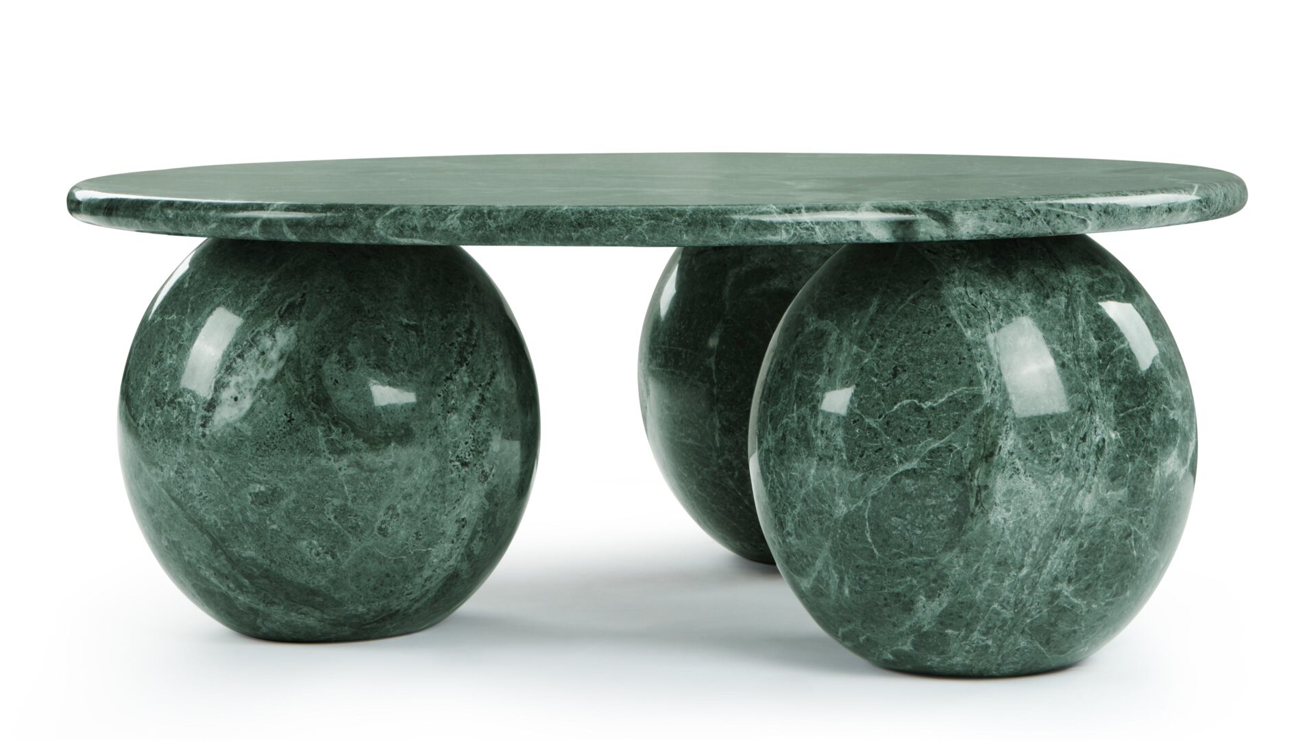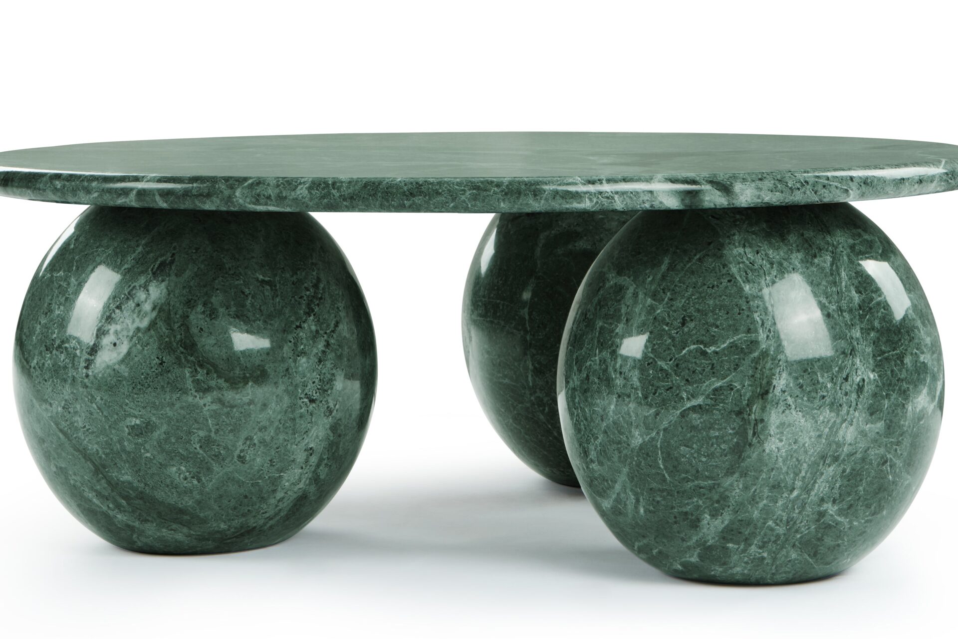 Introducing the exquisite Mya Coffee Table, a captivating fusion of contemporary design and natural beauty. Crafted from green marble, this striking piece emanates organic sophistication and elegance. Its expertly sculpted three-sphere base adds a touch of sculptural sophistication, while the round tabletop provides ample space for decor. Elevate your living space with the harmonious balance of style and functionality embodied by the Mya Coffee Table in Green Marble.