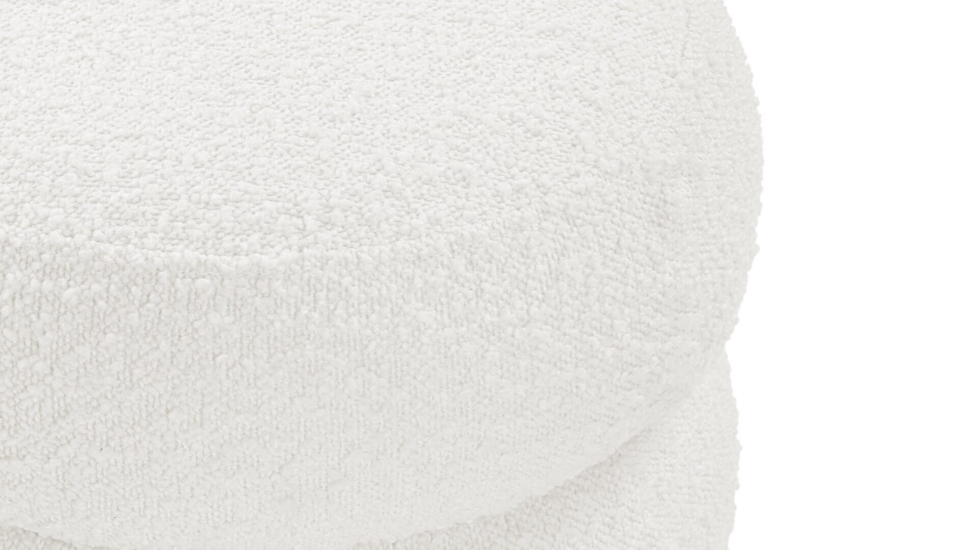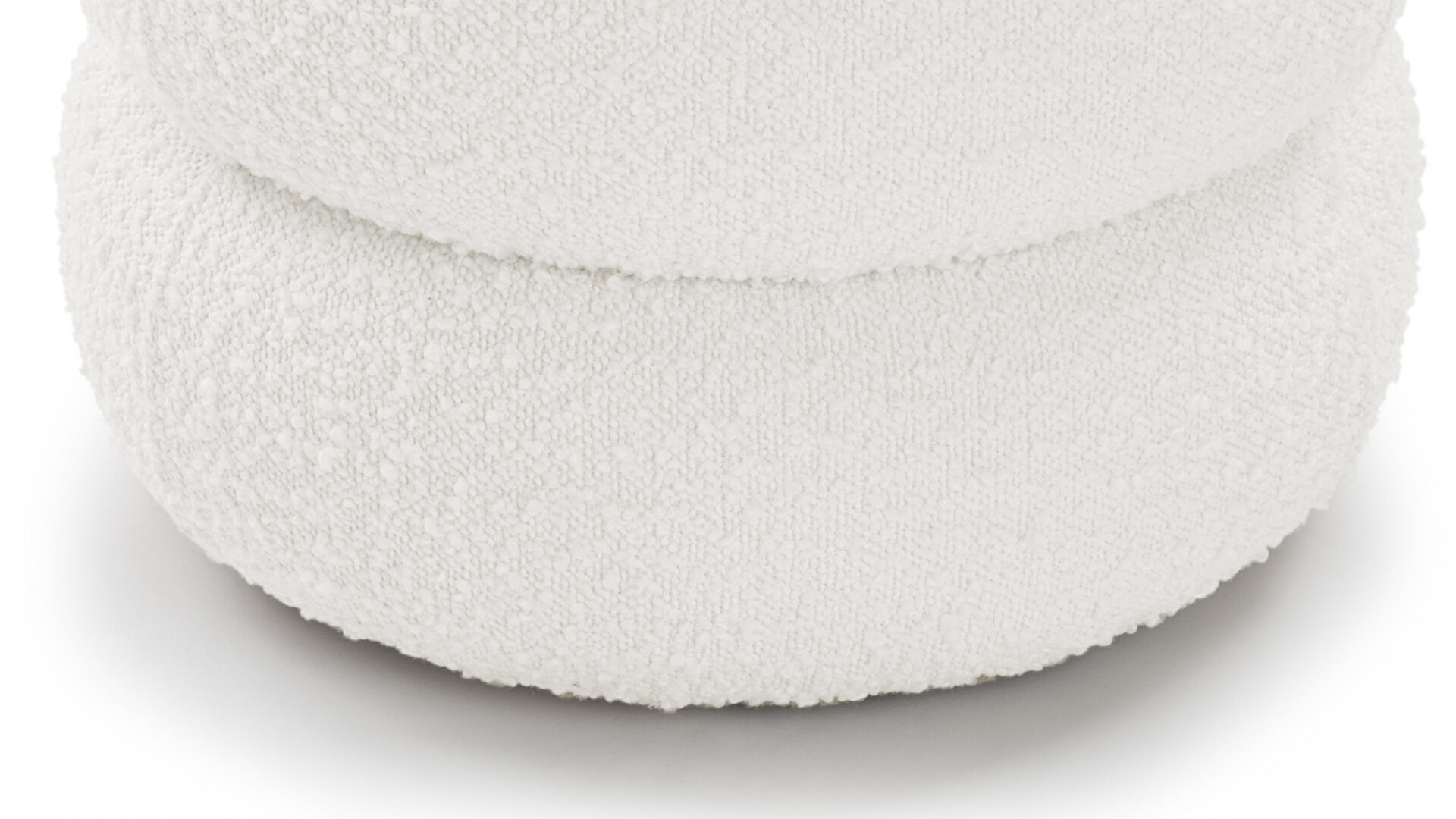Enhance your living space with the Noa Ottoman, featuring soft boucle upholstery and looped tufts that create an inviting and comfortable texture. Gentle padding on the exterior complements the ottoman's sturdy construction, ensuring both coziness and durability. Its round, sculptural design showcases stacked ring-like shapes, adding a whimsical and aesthetically pleasing touch to any room. Whether you're putting your feet up or need extra seating for guests, this ottoman is a versatile piece. Ideal for warm interiors, it can stand alone as a statement piece or be paired with other available sizes for a cohesive look.