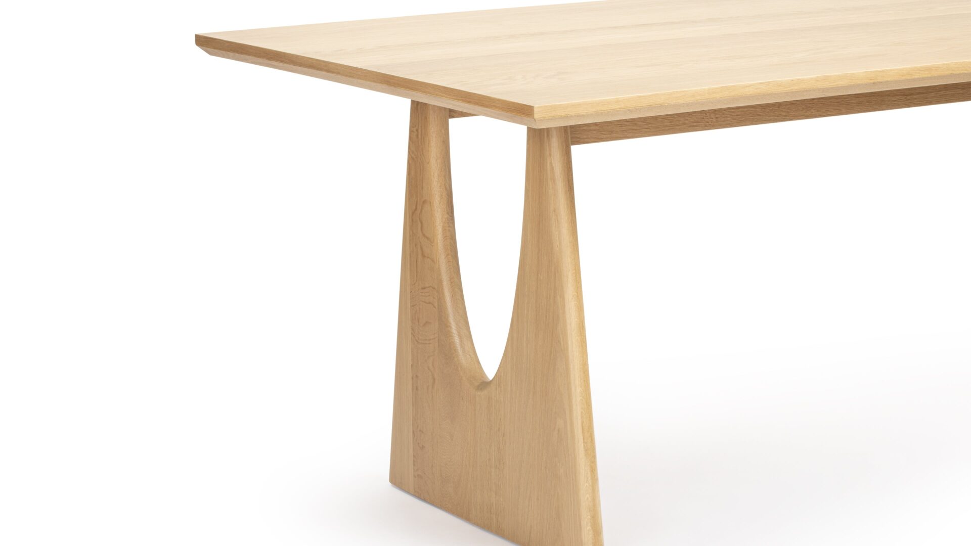 Introducing the Noom Dining Table, a captivating piece of furniture exquisitely crafted to infuse a hint of contemporary sophistication into your dining area. Constructed from oak and adorned with a light finish, this table showcases sturdy oak legs meticulously sculpted with a profound curved space, forming a sleek base that gracefully ascends to uphold the tabletop. The tabletop is accentuated by a chamfered edge that harmonizes flawlessly with the table’s clean and minimalist aesthetic.