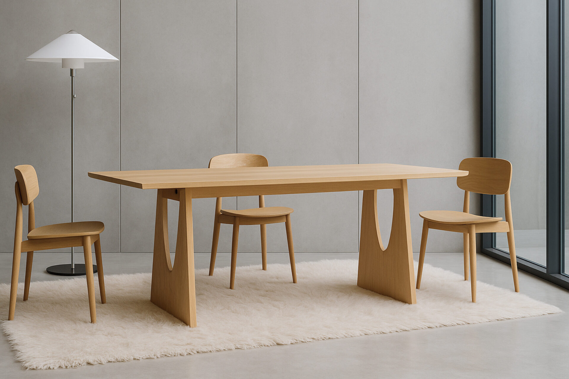 Experience the perfect blend of simplicity and sophistication with the Noom Dining Table. This minimalist piece showcases a Scandinavian aesthetic through its clean lines, light oak finish, and uniquely curved legs, creating a bold focal point in any contemporary dining area.