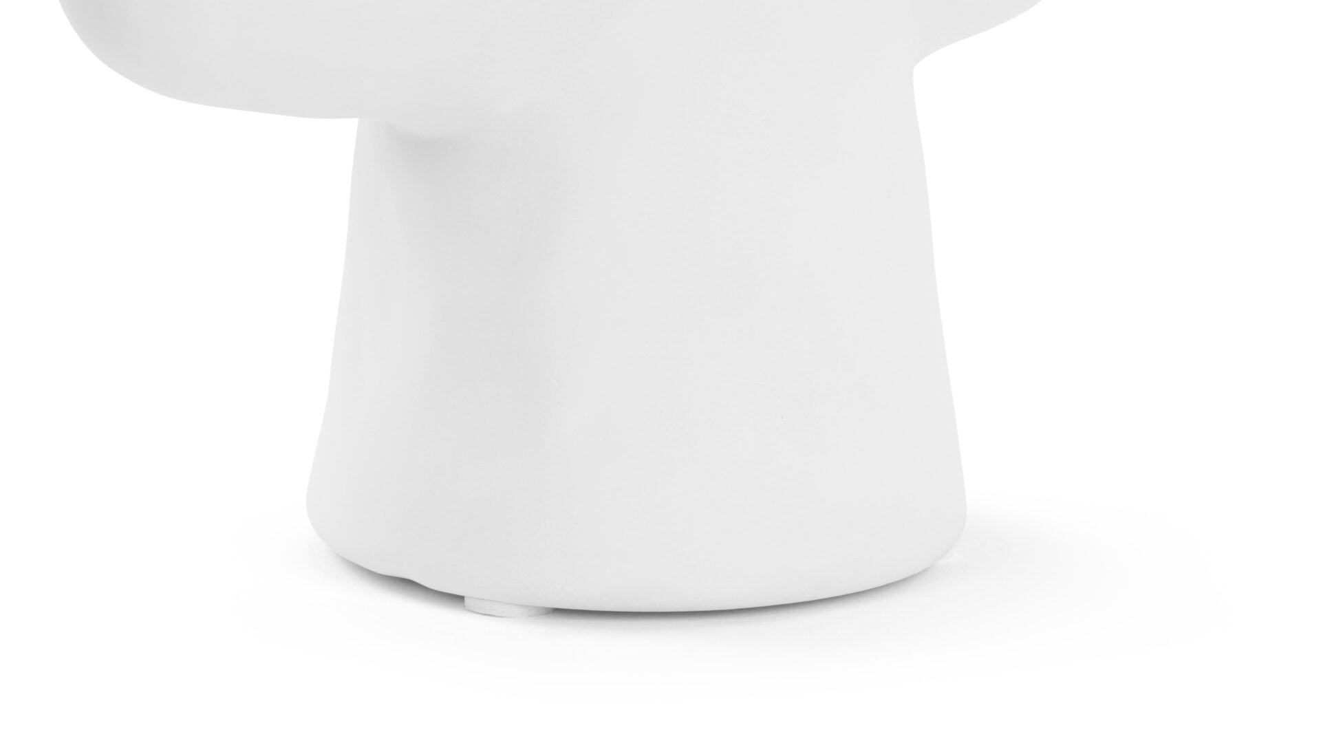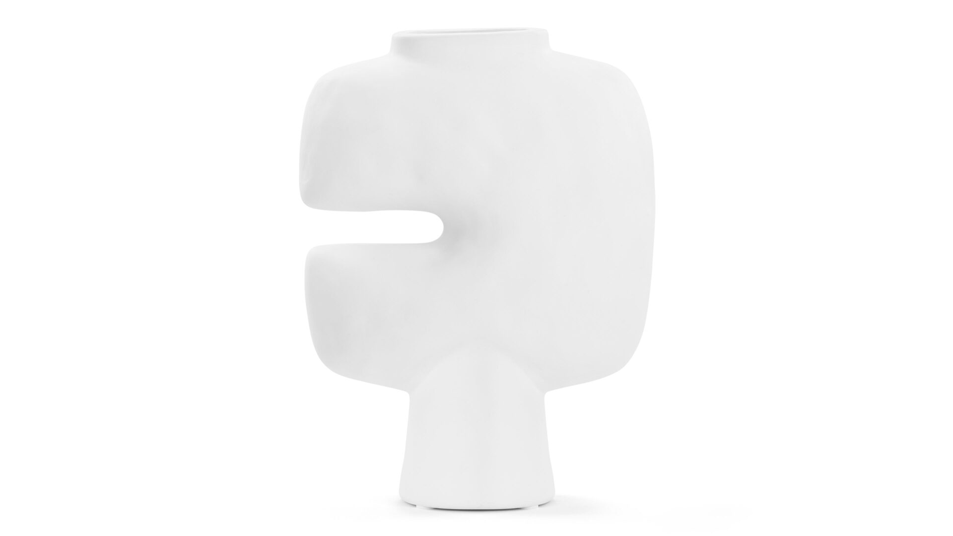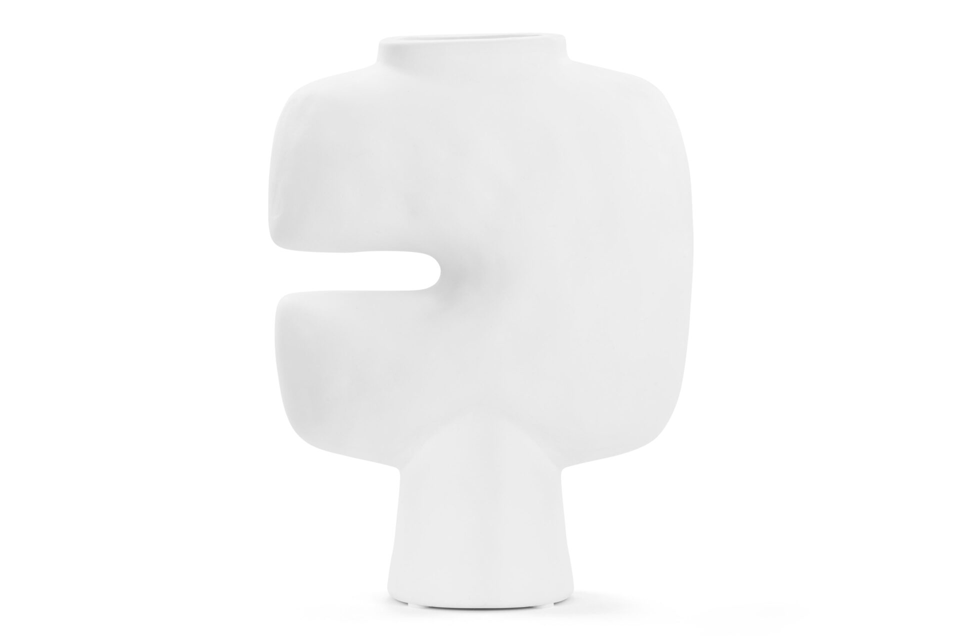 The Nyle Vase is a ceramic piece that showcases a quirky and whimsical design with a soft, organic silhouette. Its playful nature and almost human-like shape harken back to 1960s design aesthetics, while the minimal color palette gives it a distinct Scandinavian vibe. The Nyle Vase makes a striking statement on its own but can also be personalized with dried flowers and other decorative embellishments. For a captivating showcase, pair the smaller Nyle Vase with our range of ceramic vases available in various sizes. This creates a dynamic and visually engaging display, elevating the overall coherence of any setting.
