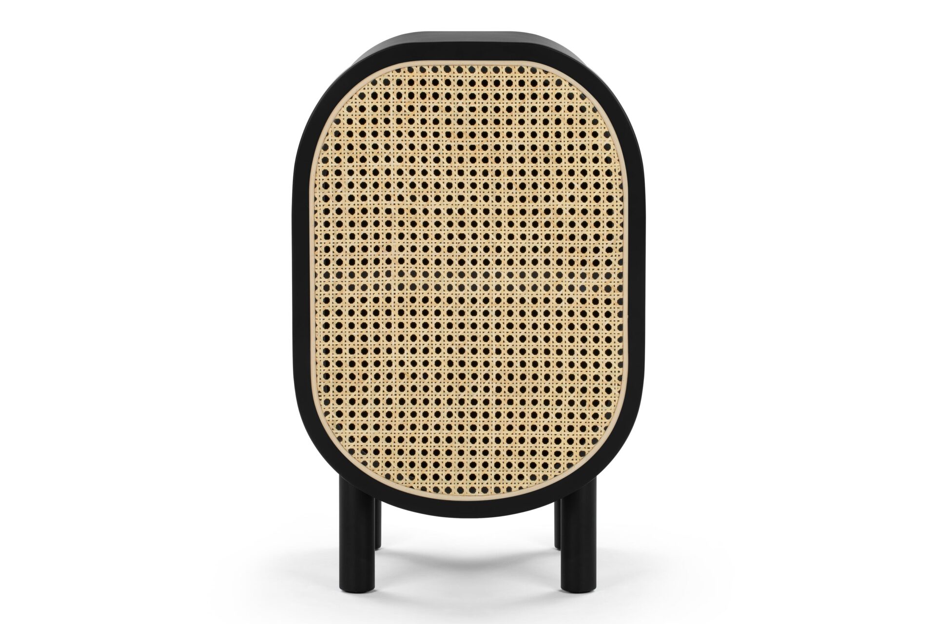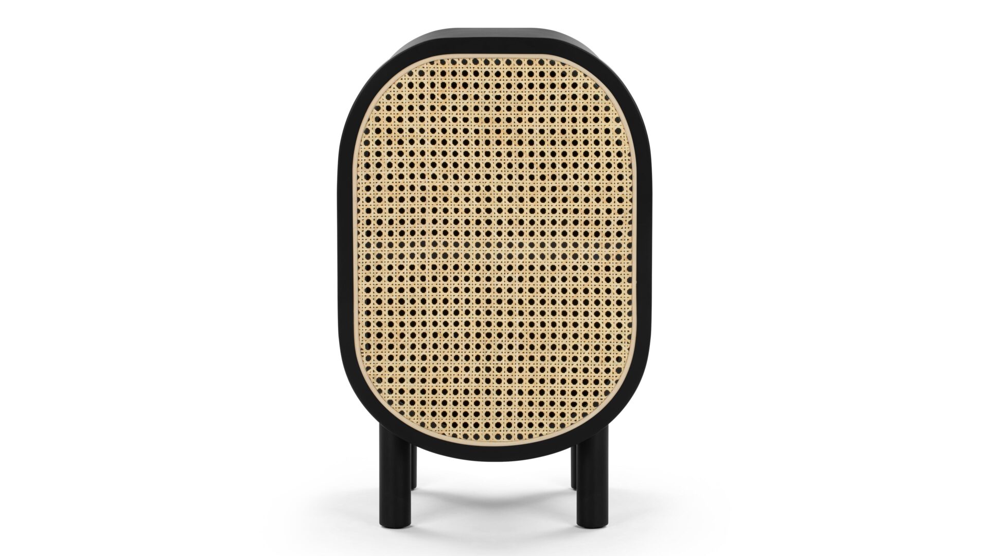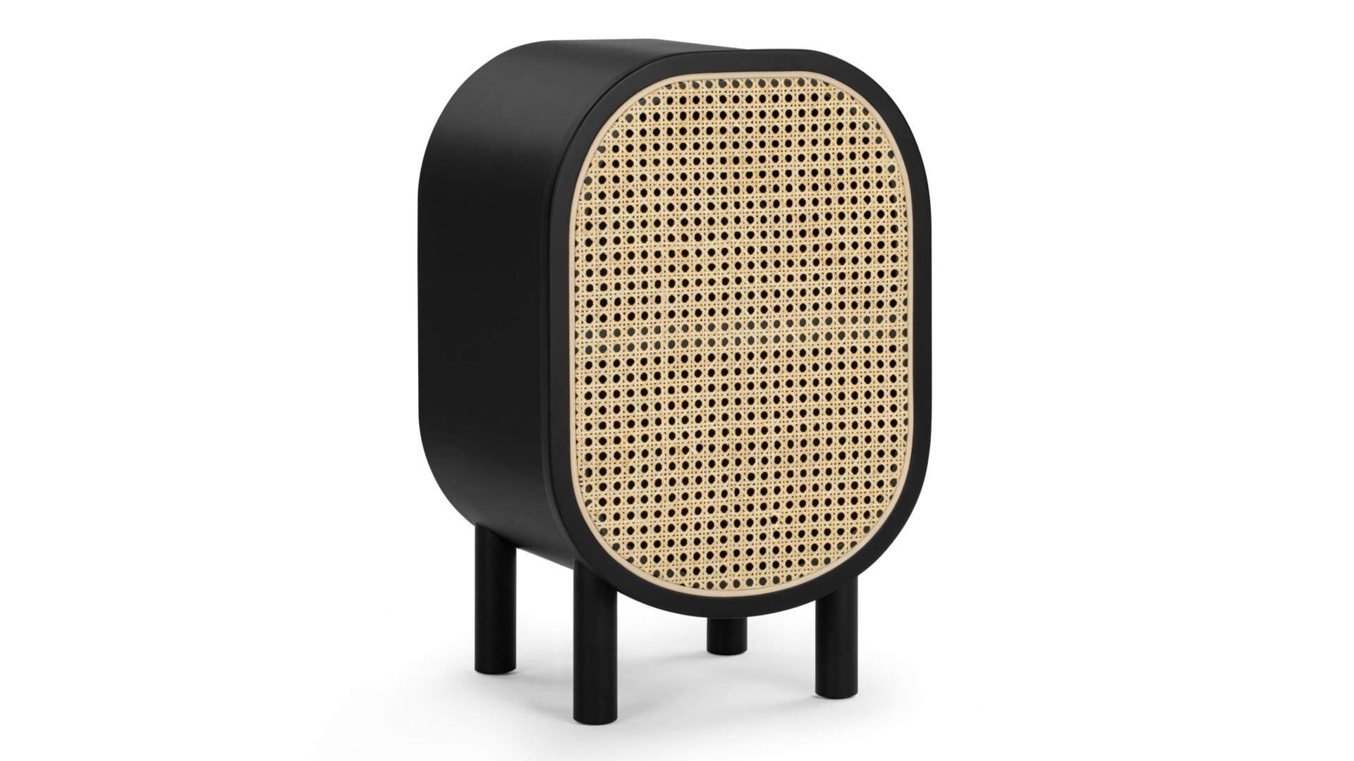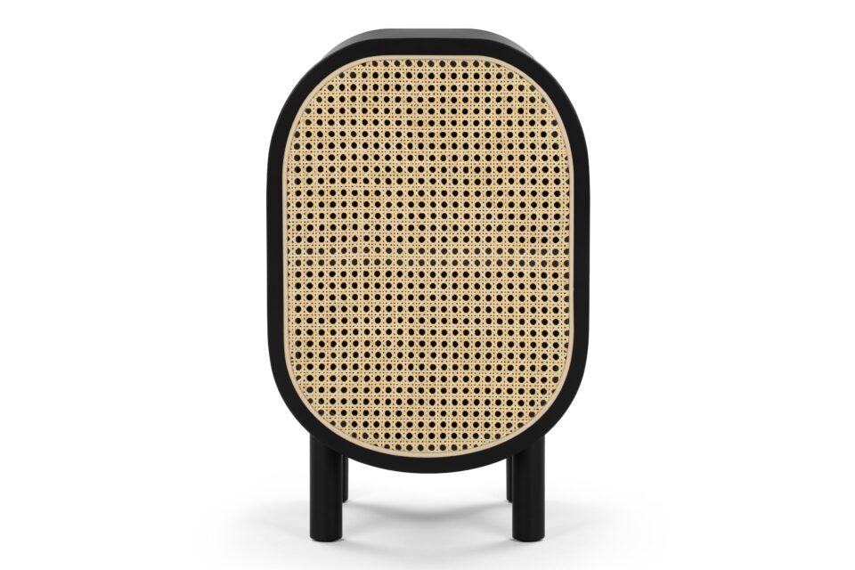 Introducing the Oma Side Table, crafted with natural rattan and a sleek matte black ash frame. Elevate your space with this versatile piece that seamlessly combines style and functionality. Ideal for concealing clutter or keeping essentials within easy reach.