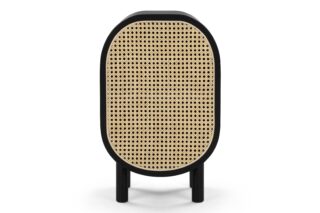 Experience the timeless allure of rattan in our collection of furniture pieces inspired by French post-war designs. Each piece features a contemporary rounded body, juxtaposing warm wood tones with a dark frame and brass detailing.