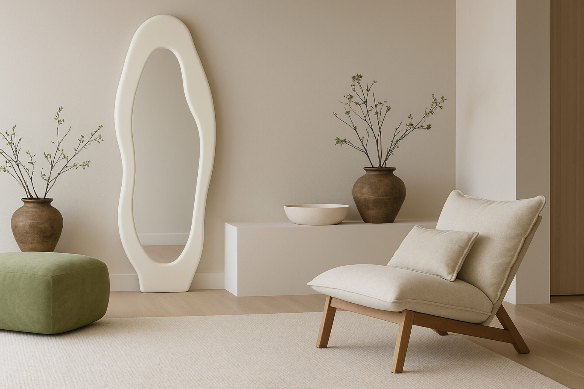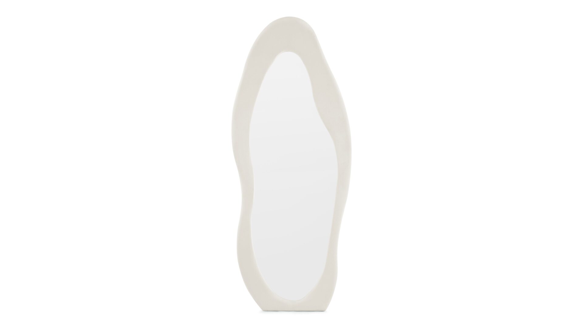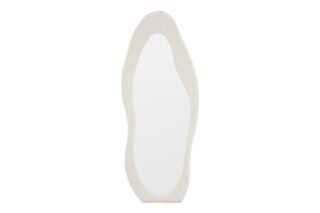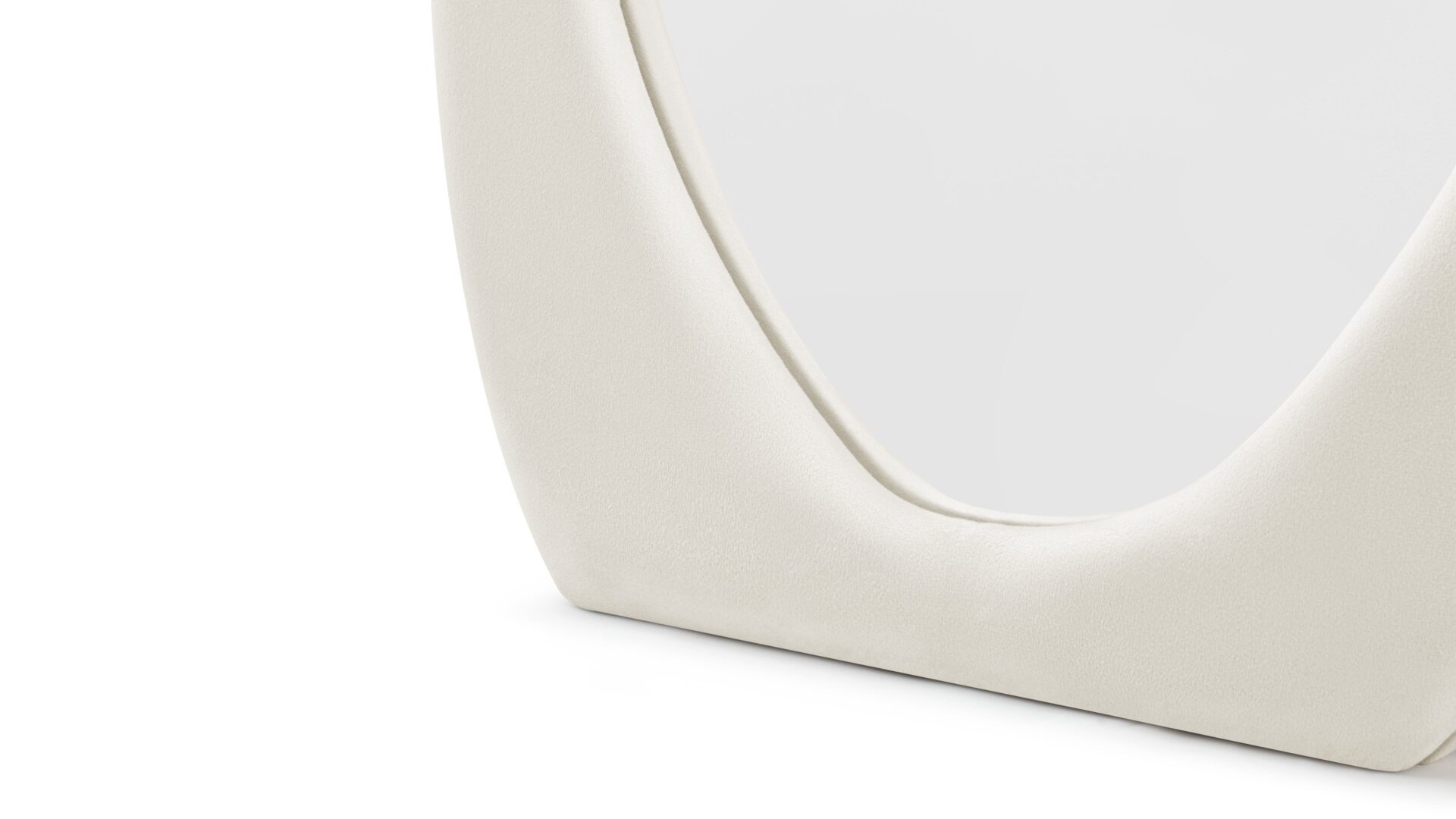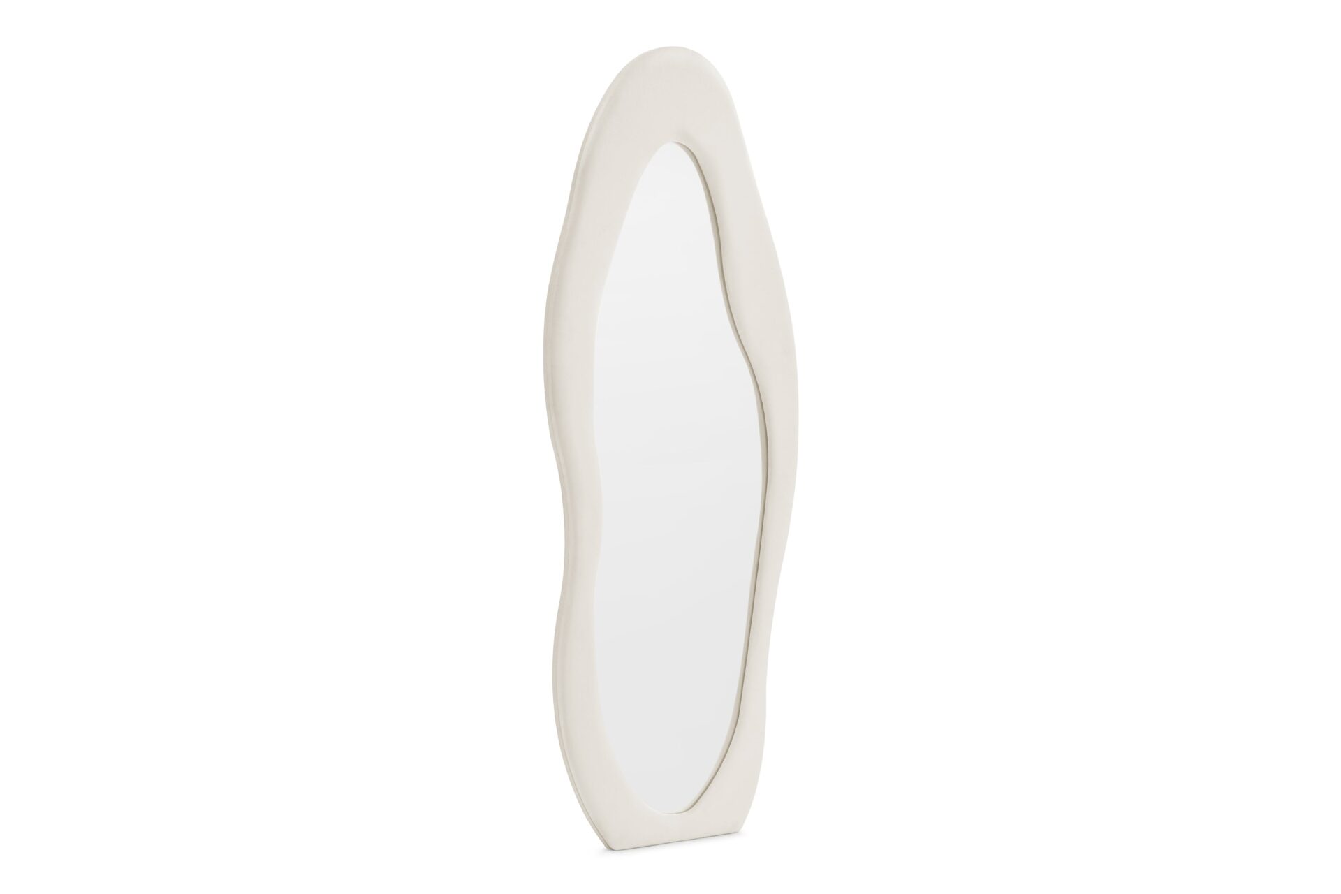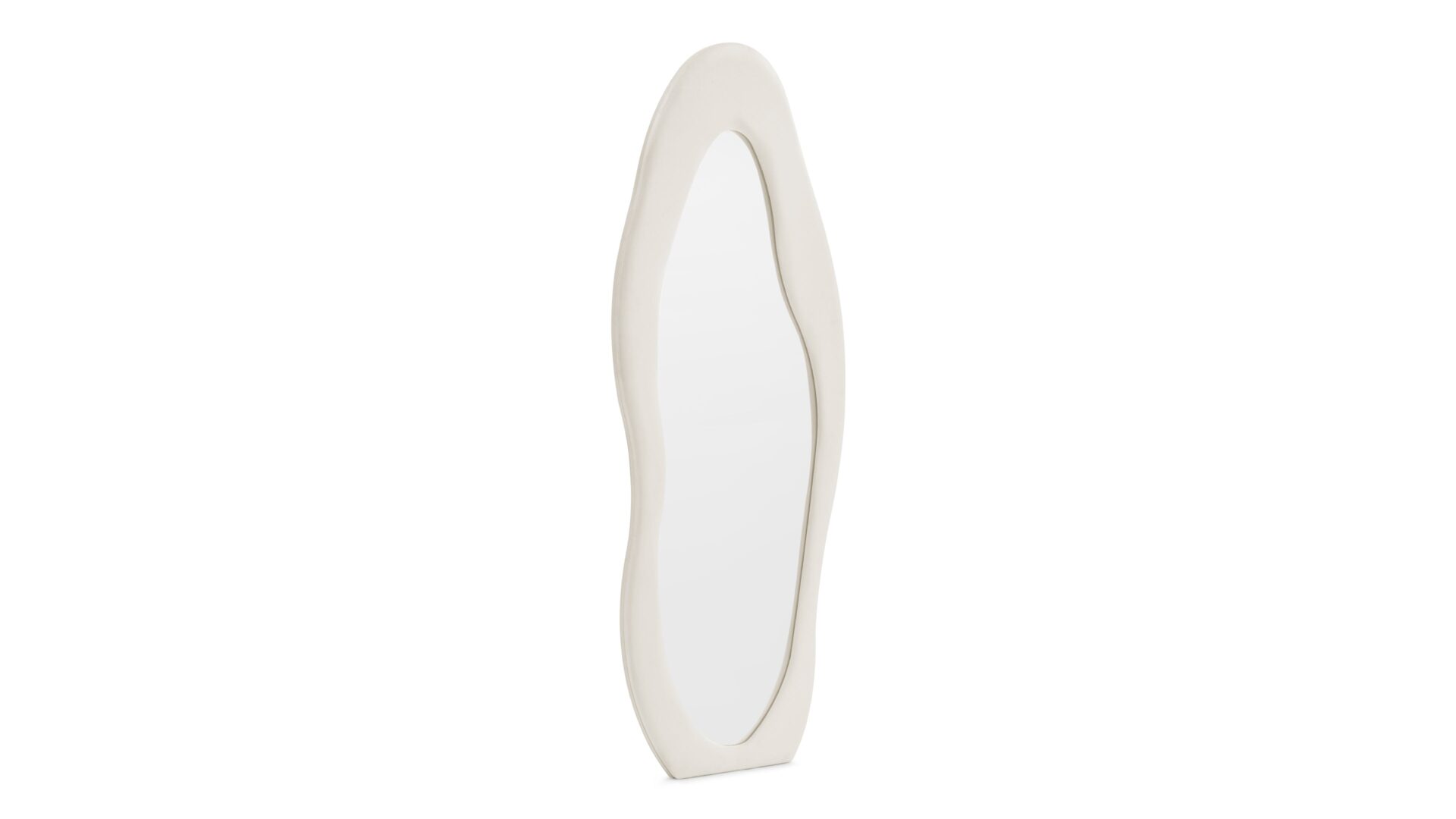 Introducing the Organic Floor Mirror, a blend of nature-inspired design and superb craftsmanship. This mirror boasts an organic shape and lavish Ivory Velvet upholstery, serving as a stunning centerpiece that melds seamlessly with modern decor. Crafted from premium materials, it captures organic shapes' essence, boasting intentional curves and irregular edges for a visually captivating look.