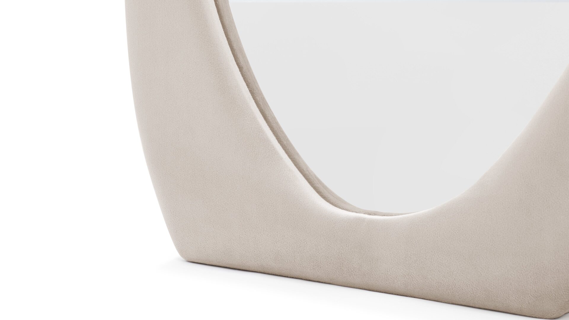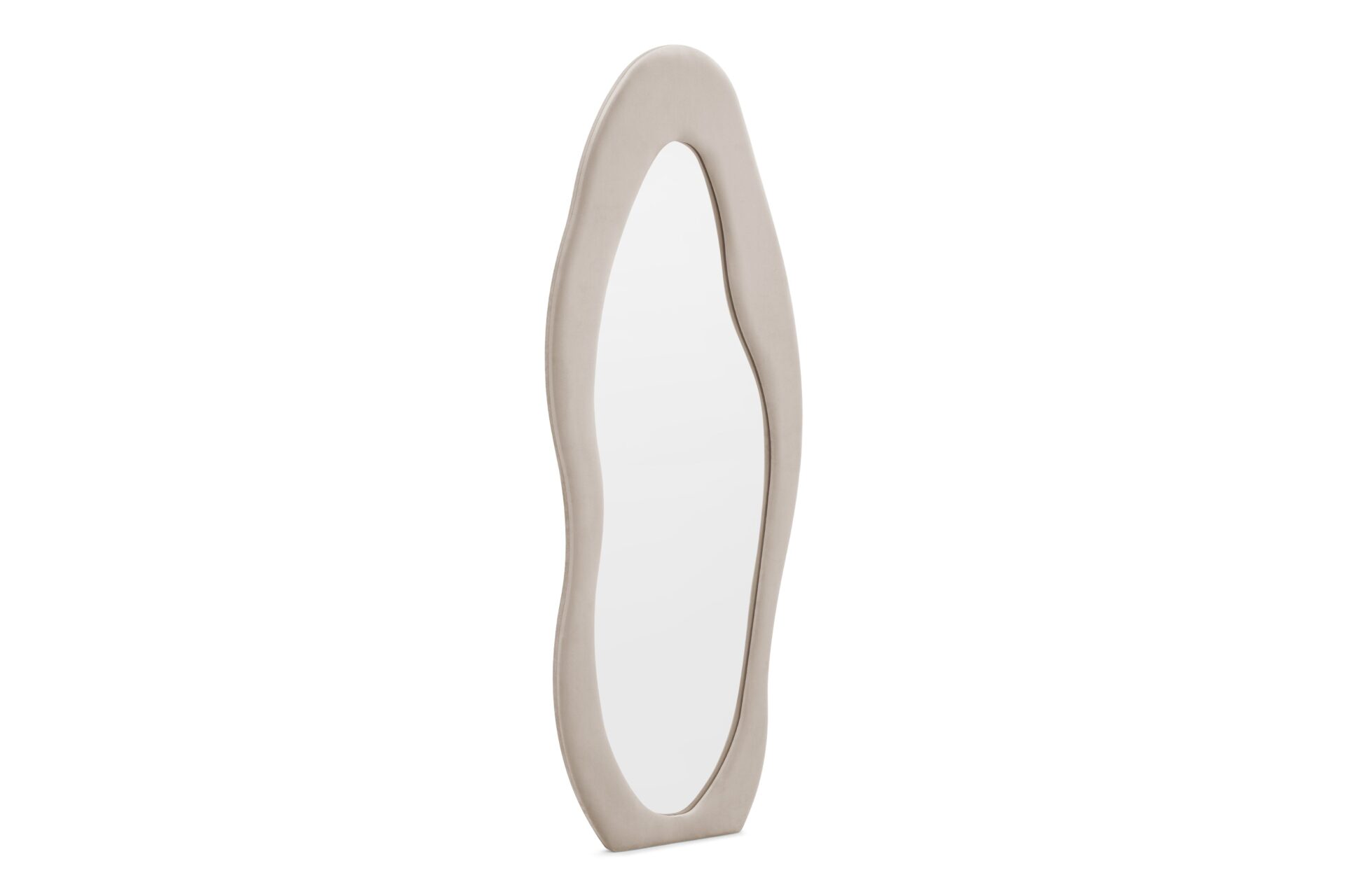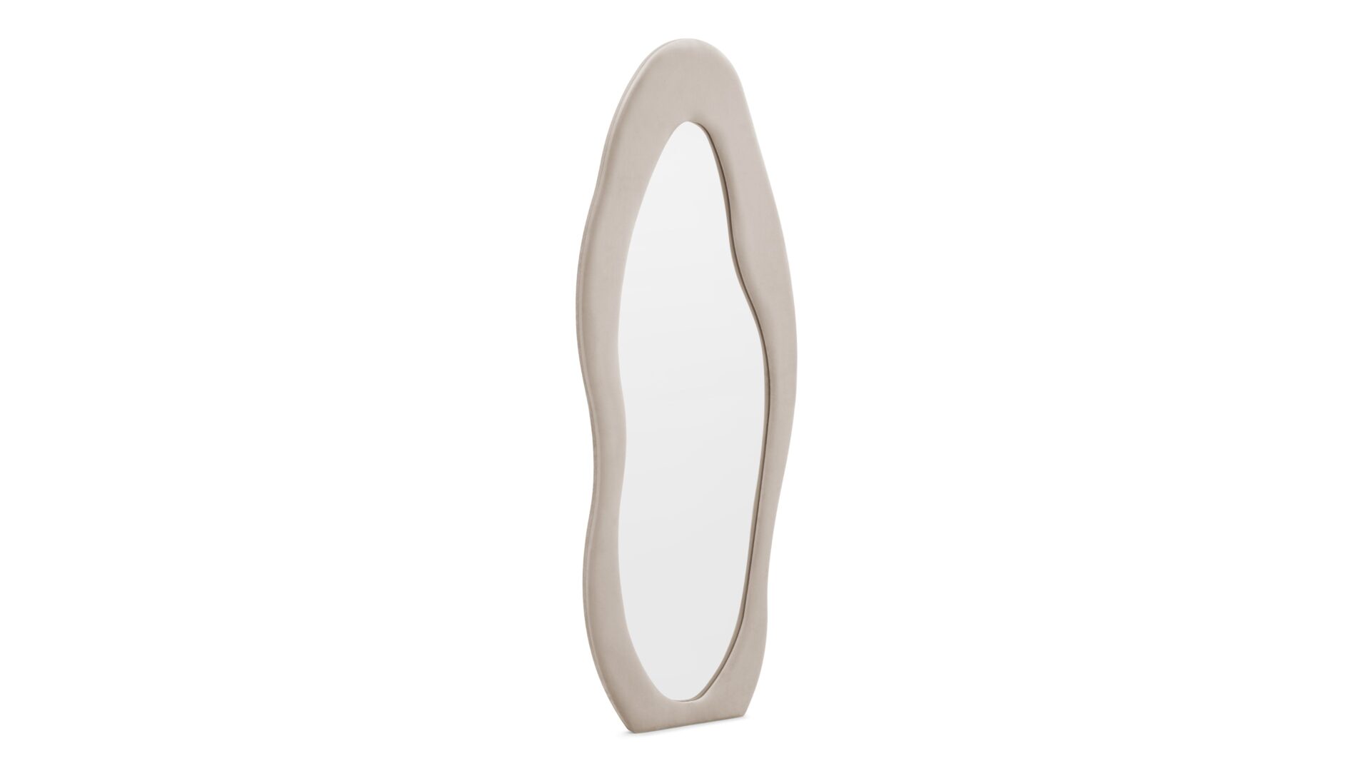 Introducing the Organic Floor Mirror - a fusion of nature-inspired design and exquisite craftsmanship. This luxurious mirror features a frame draped in luscious taupe velvet, blending opulence and sophistication effortlessly. Its organic shape and premium construction showcase meticulous artistry and attention to detail. Elevate your space with this visually captivating piece that exudes elegance and allure, a timeless investment in style.