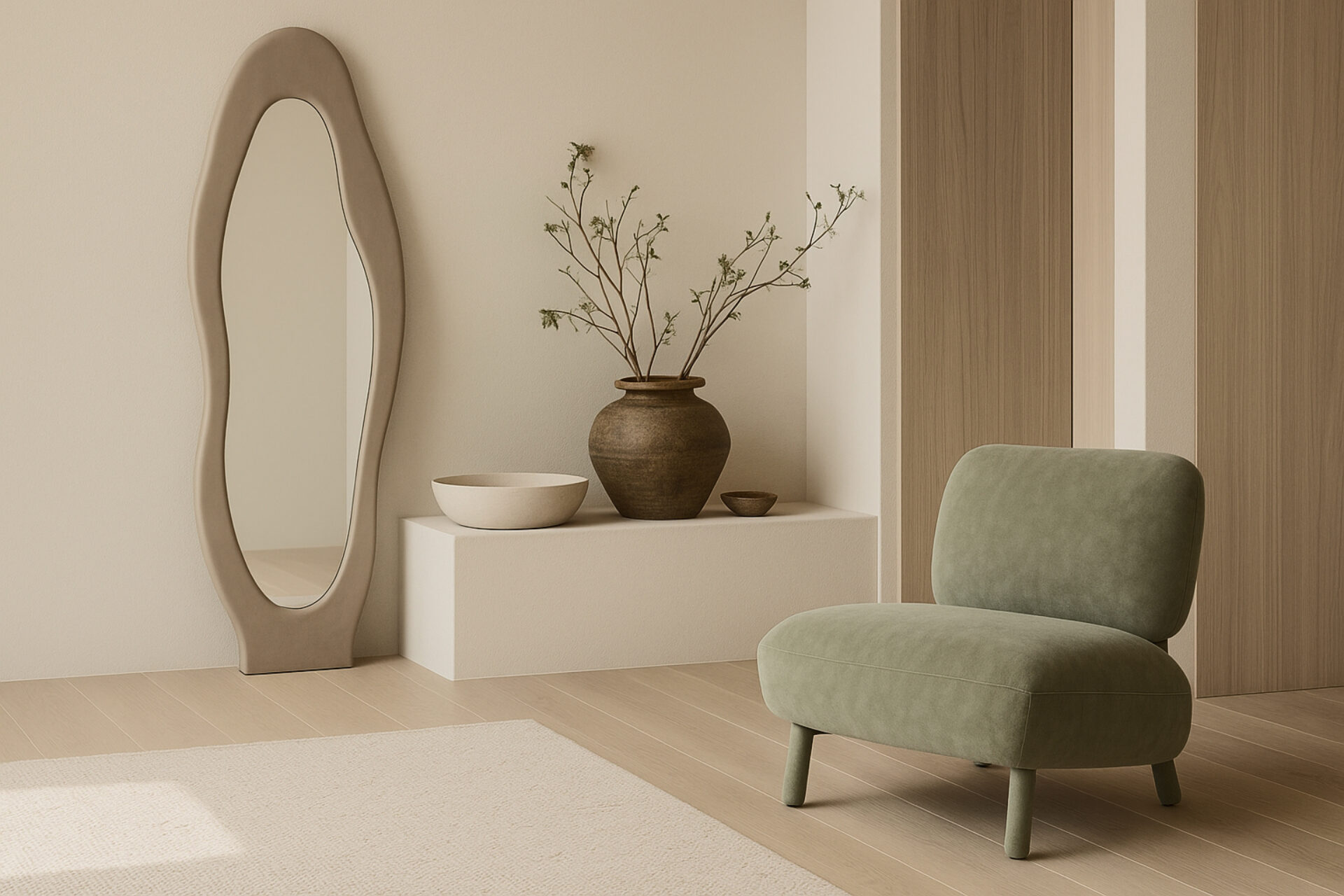 Introducing the Organic Floor Mirror - a stunning fusion of nature-inspired design and exquisite craftsmanship. This floor mirror embodies sophistication with its organic shape and luxurious velvet upholstery, making it a striking focal point that seamlessly complements any modern decor. The mirror's frame features a distinct, fluid silhouette that mirrors the natural curves found in the environment. Constructed from premium materials, the Organic Floor Mirror captures the essence of organic shapes, with intentional curves and irregular edges for a visually captivating and cohesive look.
