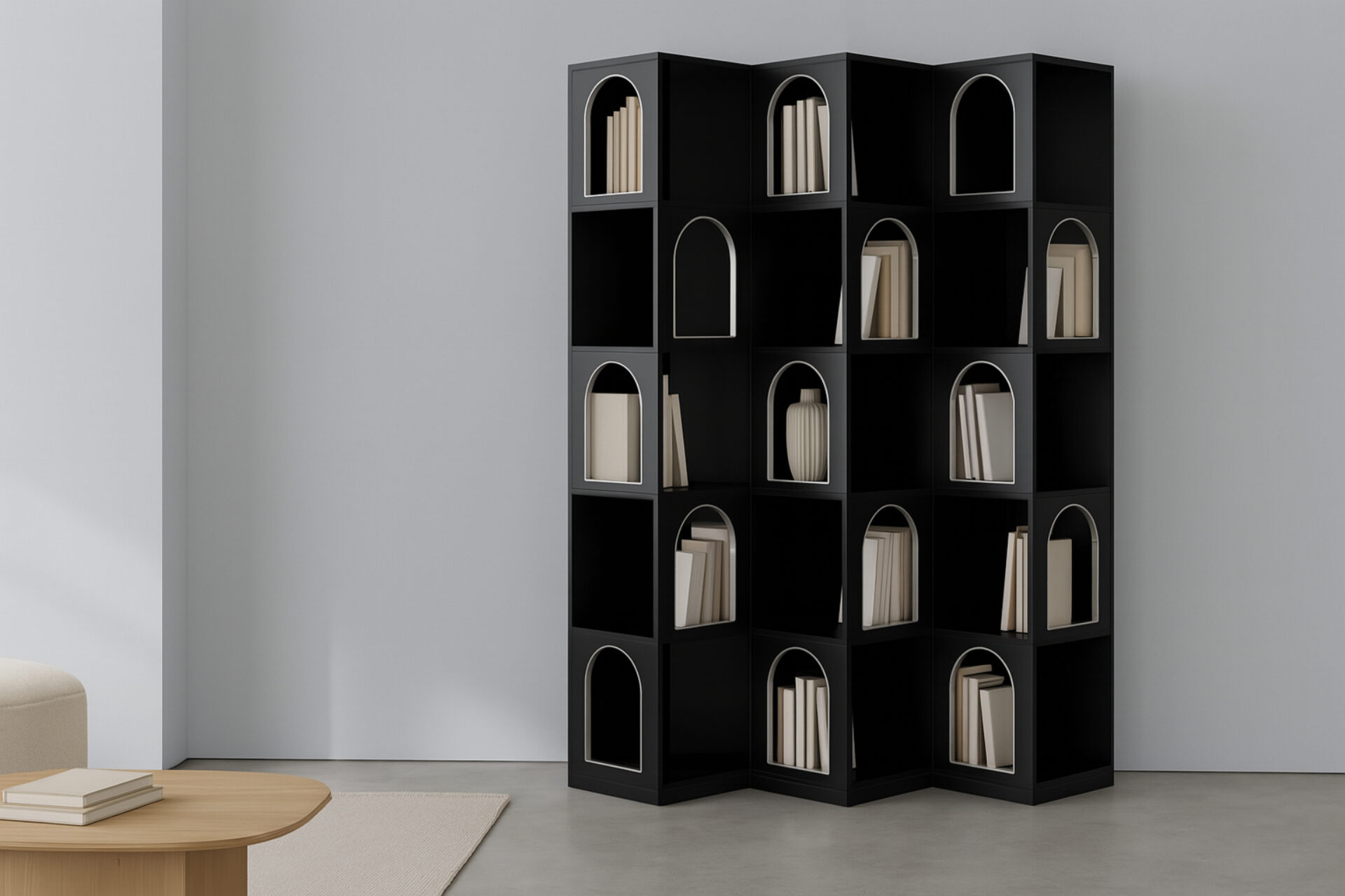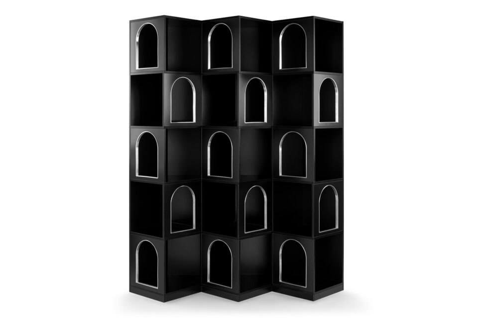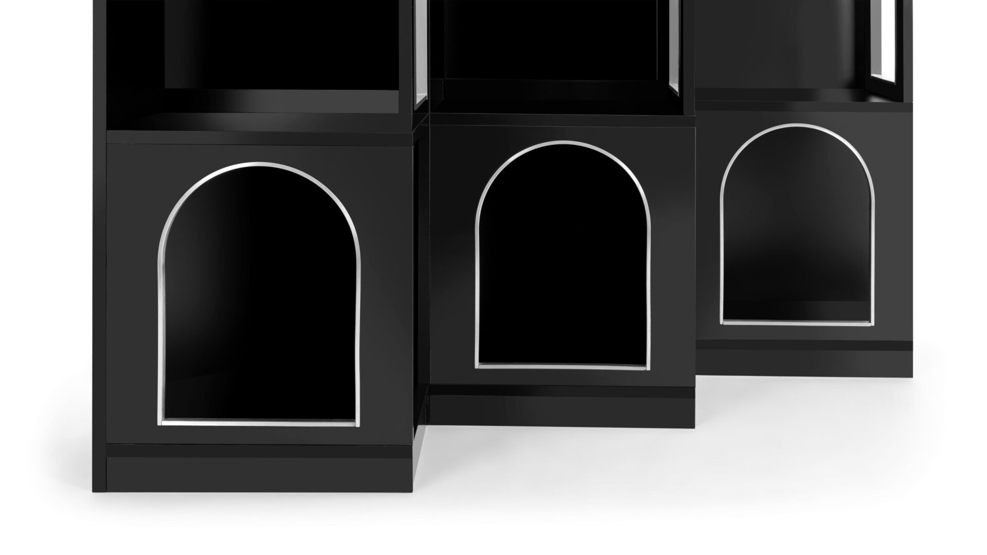 Elevate your space with the sleek and sophisticated Orsini Bookshelf in timeless black. Crafted with durable melamine coating, this modern piece boasts a captivating design, featuring a combination of arched and open square windows for stylish storage solutions. Robust enough for hefty items and books, it doubles as a chic cabinet of curiosities, perfect for showcasing your treasures. Energize the look with bursts of color or accentuate its minimalist allure with a monochromatic scheme.
