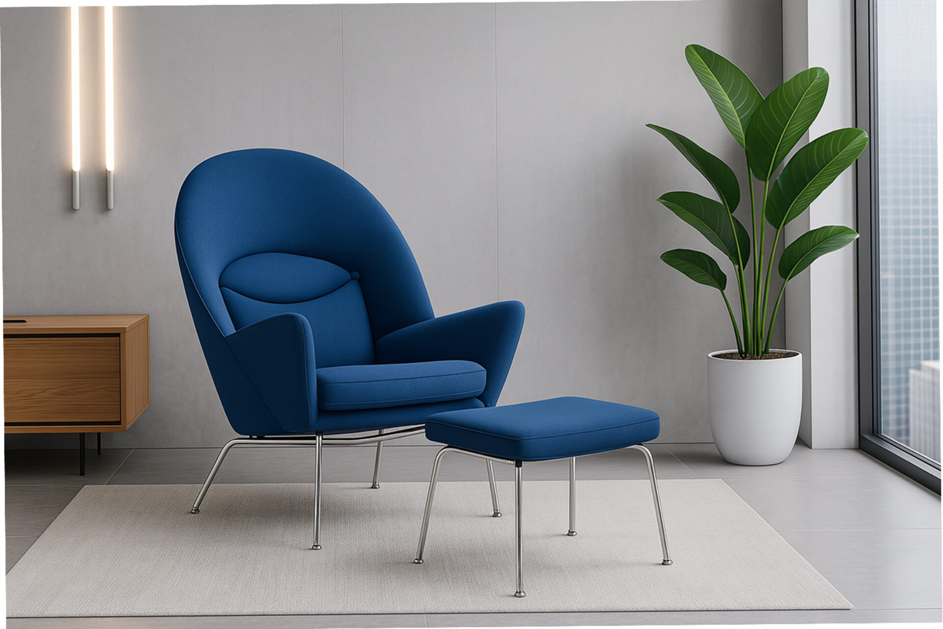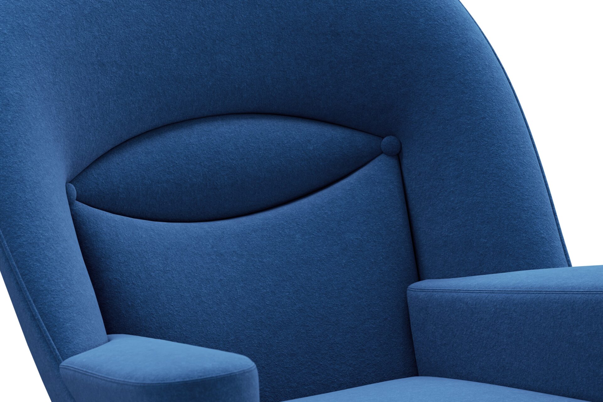 Elevate your interior space with the Oslo Chair, a blend of style and functionality. Featuring sleek lines and a modern aesthetic, this chair seamlessly fits various design schemes, from modern to transitional. Personalize with luxurious Indigo Blue Wool upholstery. The Oslo Chair stands out as a sophisticated focal point, adding elegance and refinement to your living room, study, or bedroom. Immerse yourself in comfort and style, experiencing the perfect balance of relaxation and luxury.