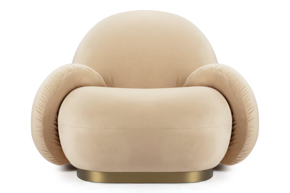 Ecru Velvet Pacha Chair: Luxurious 70s