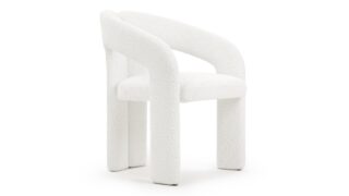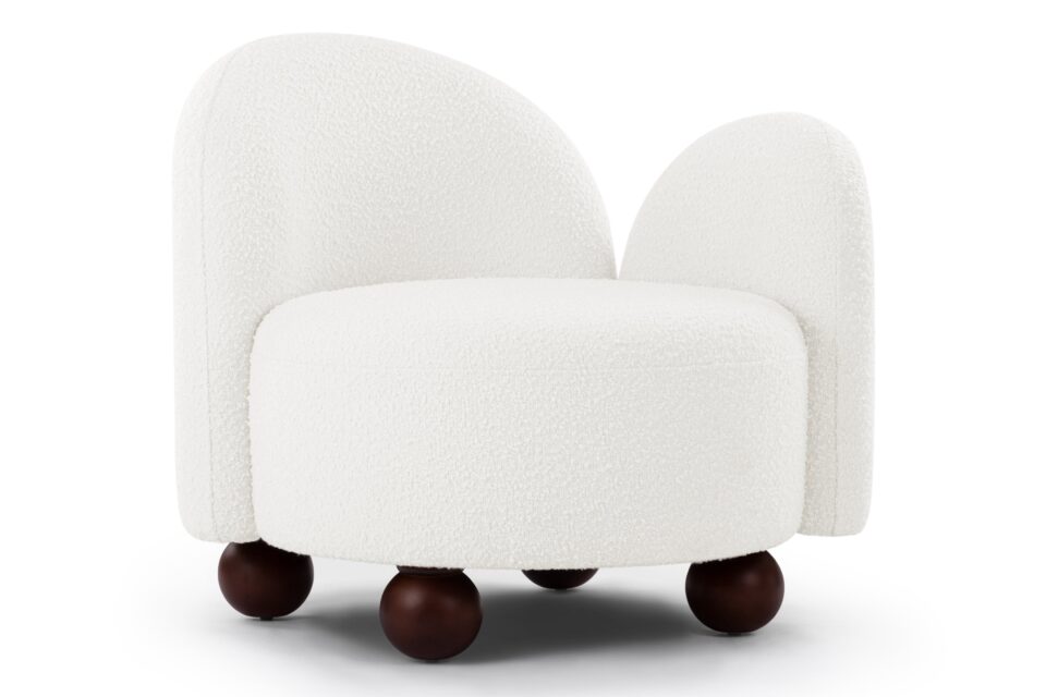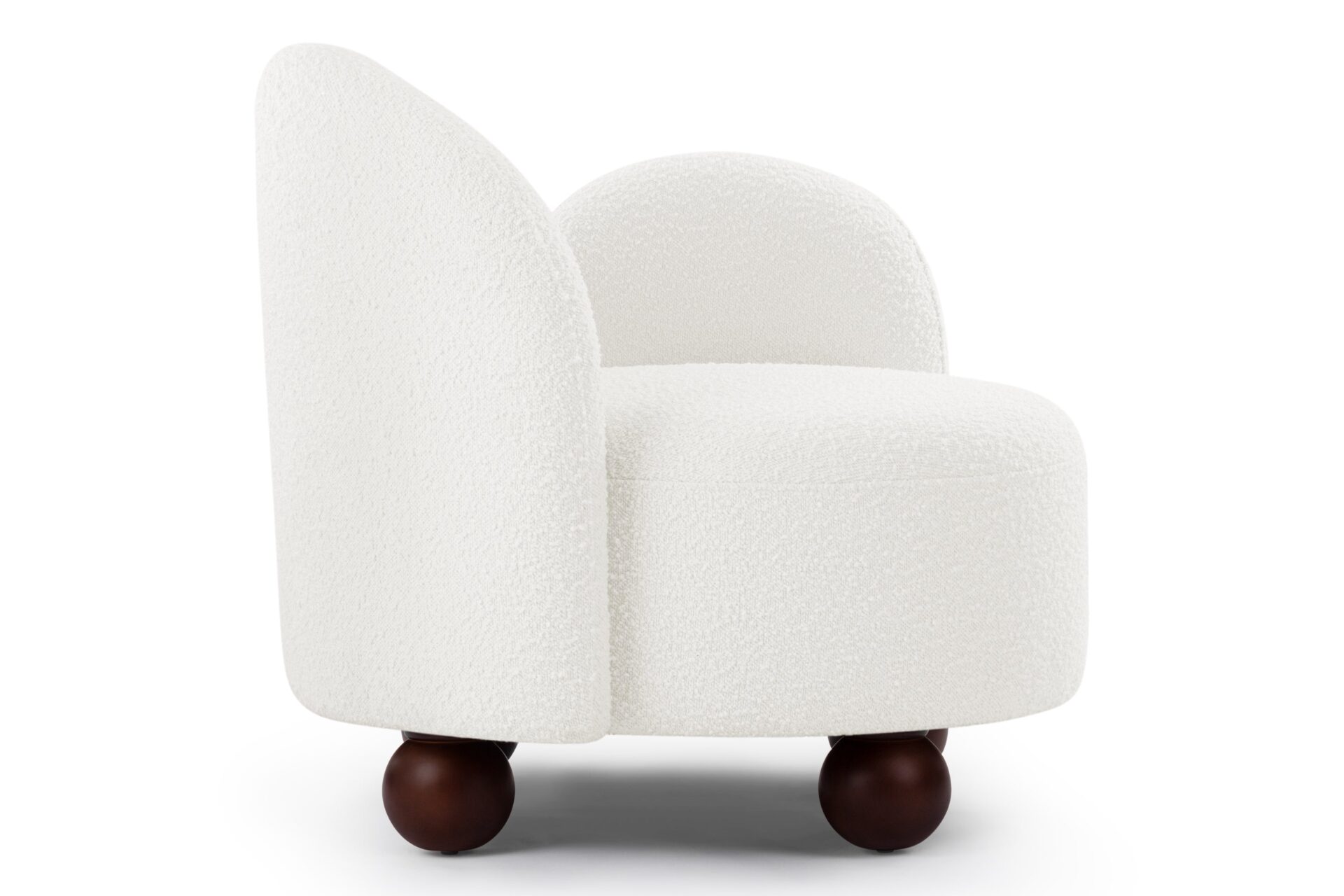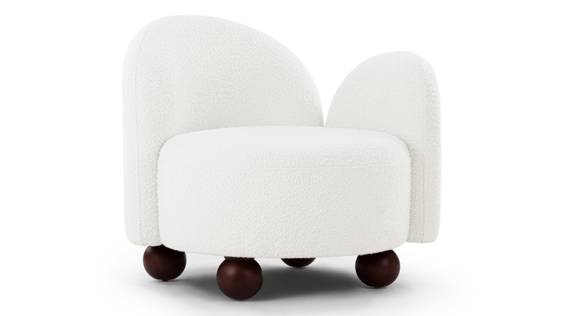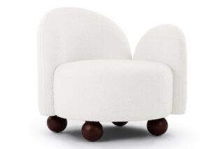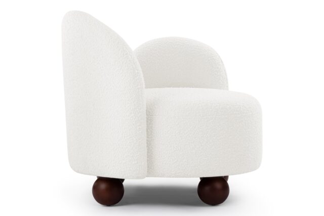 Enhance the design of the chair with this plush, light-colored boucle featuring densely-packed looping tufts for added warmth and texture. The chair is complemented by the stylish yet neat contrast of the dark-colored ball feet.