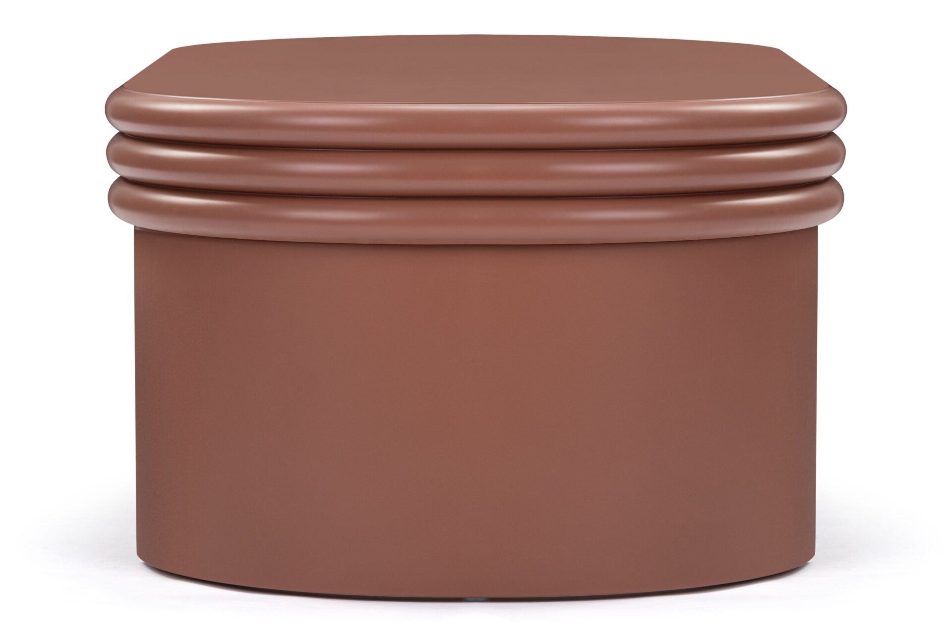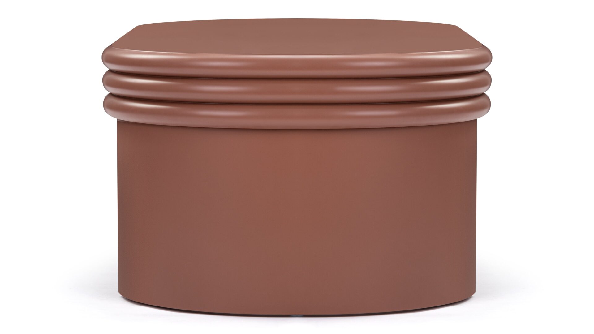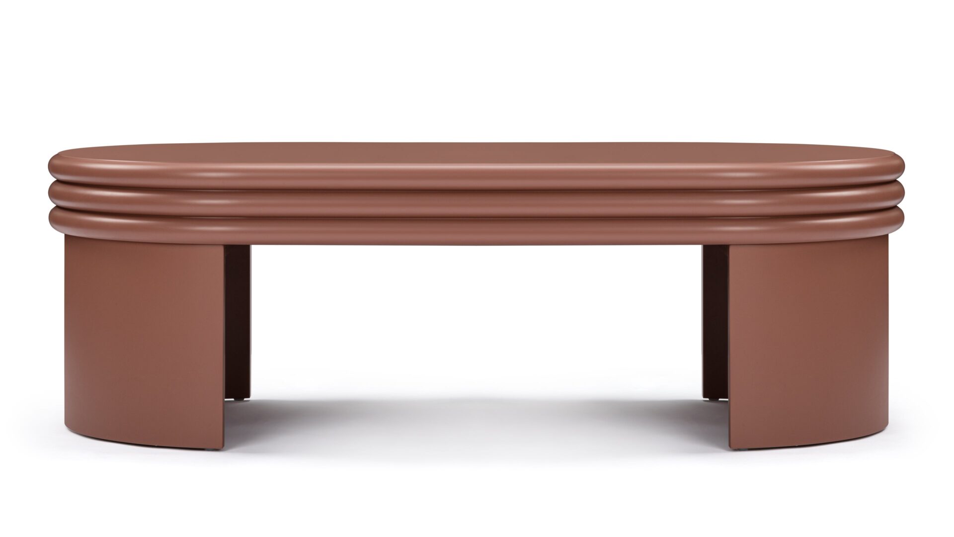 Introducing the Pascal Oval Coffee Table, a modern marvel that merges sophistication with ingenuity in furniture design. Precision and detail are at the forefront, seamlessly blending style and practicality to create a captivating centerpiece for any room. Crafted as part of the Pascal Collection, this terracotta-hued table complements other coordinating pieces, ensuring a cohesive aesthetic. Boasting durability and exquisite beauty through premium materials, this table elevates any space with its elegant finishing touches. With a unique stacked pattern and ample space for display or storage, the Pascal Oval Coffee Table exudes captivating flexibility, effortlessly enhancing a variety of interior styles.