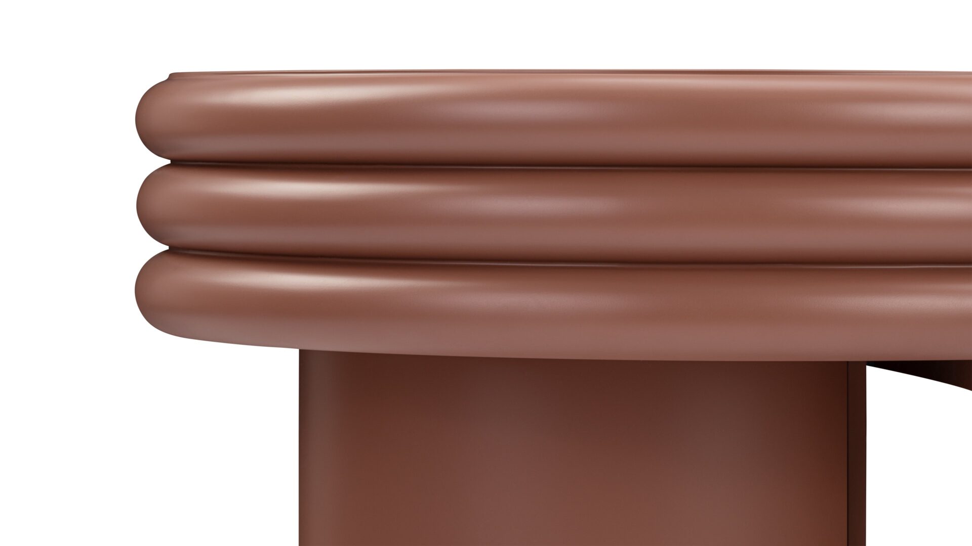 Upon initial observation, the round silhouette of the Pascal Side Table radiates a feeling of harmony and equilibrium, beckoning you to delve into its intricate details. The tabletop, a work of art in its own right, showcases a unique stacked design that brings depth and visual appeal.