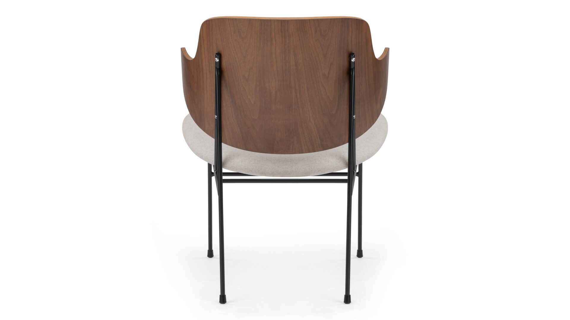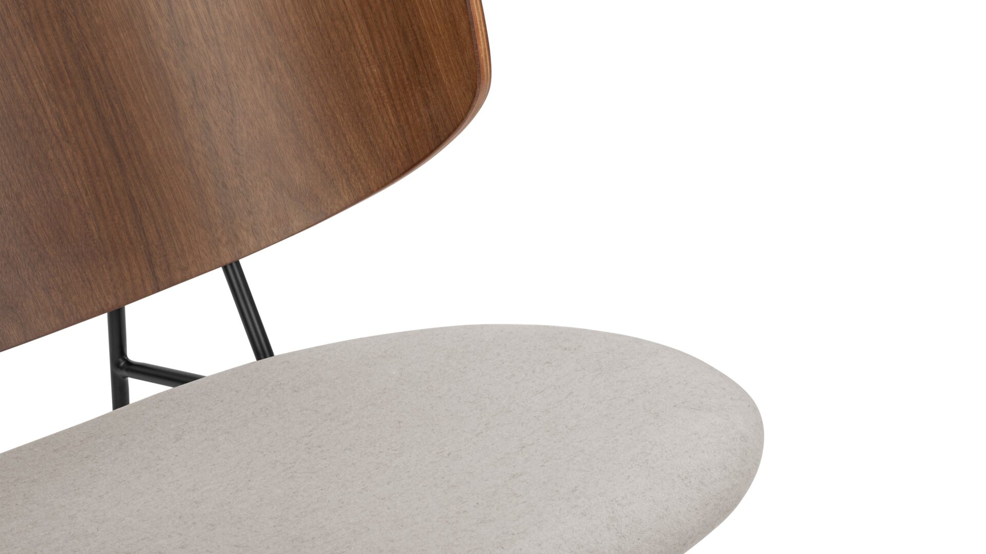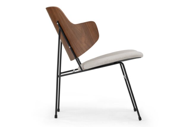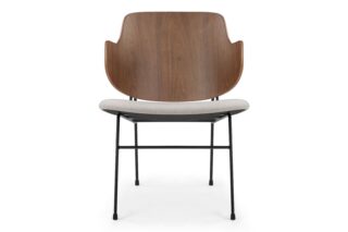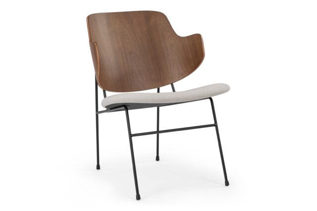 Discover the seamless fusion of modern and mid-century design in the Penguin Lounge Chair. Boasting a sculpted walnut backrest, a luxurious upholstered seat, and a sleek metal frame, this chair strikes the ideal harmony between style and comfort.