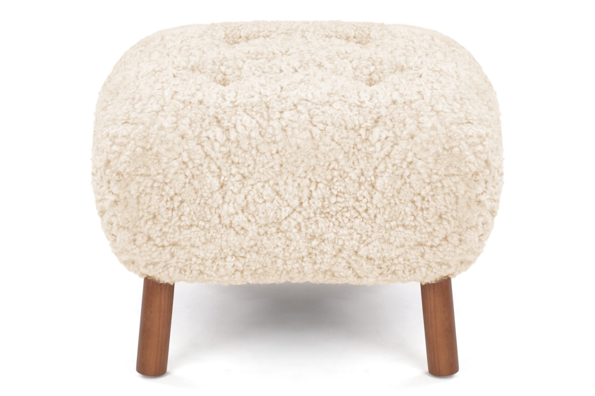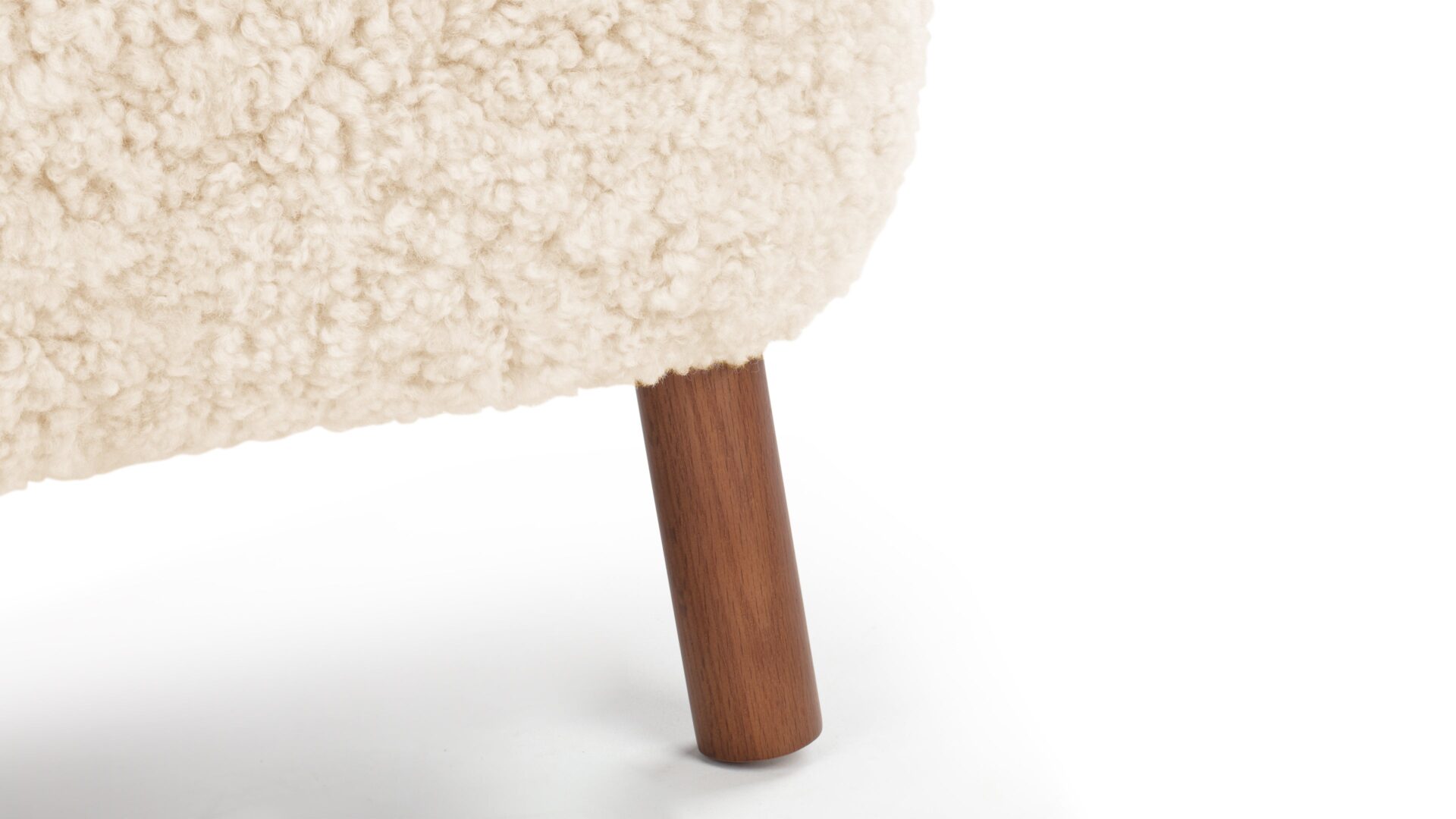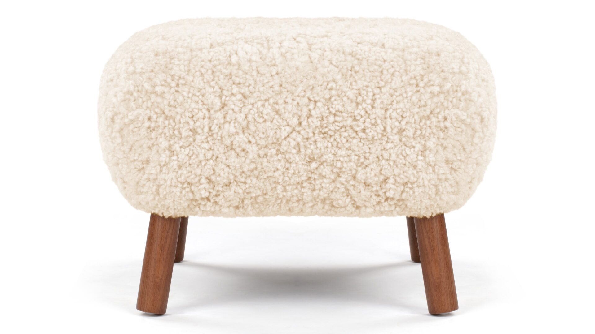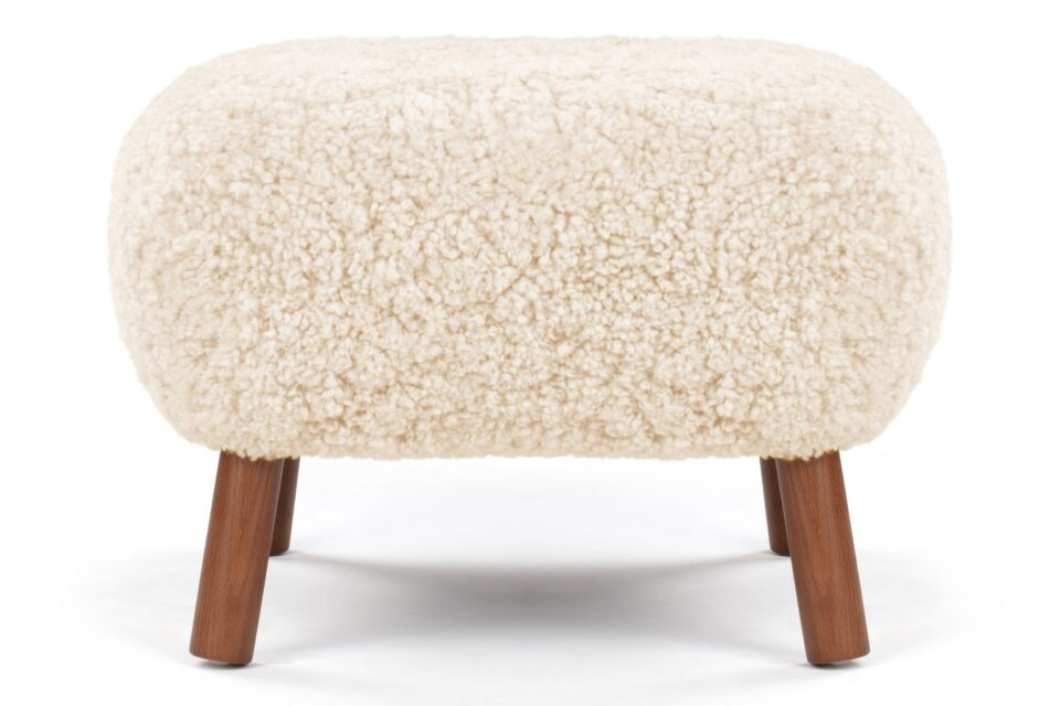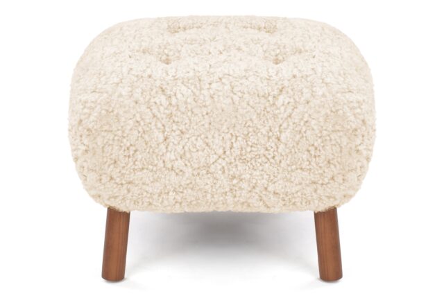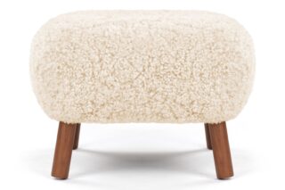 Crafted with a sturdy beech and plywood frame, the Petra Ottoman is enveloped in HR foam and polyester wadding, then luxuriously wrapped in Luxe Sheepskin. It serves as the perfect snug companion to the Lounge Chair or stands elegantly as a chic stool by itself.