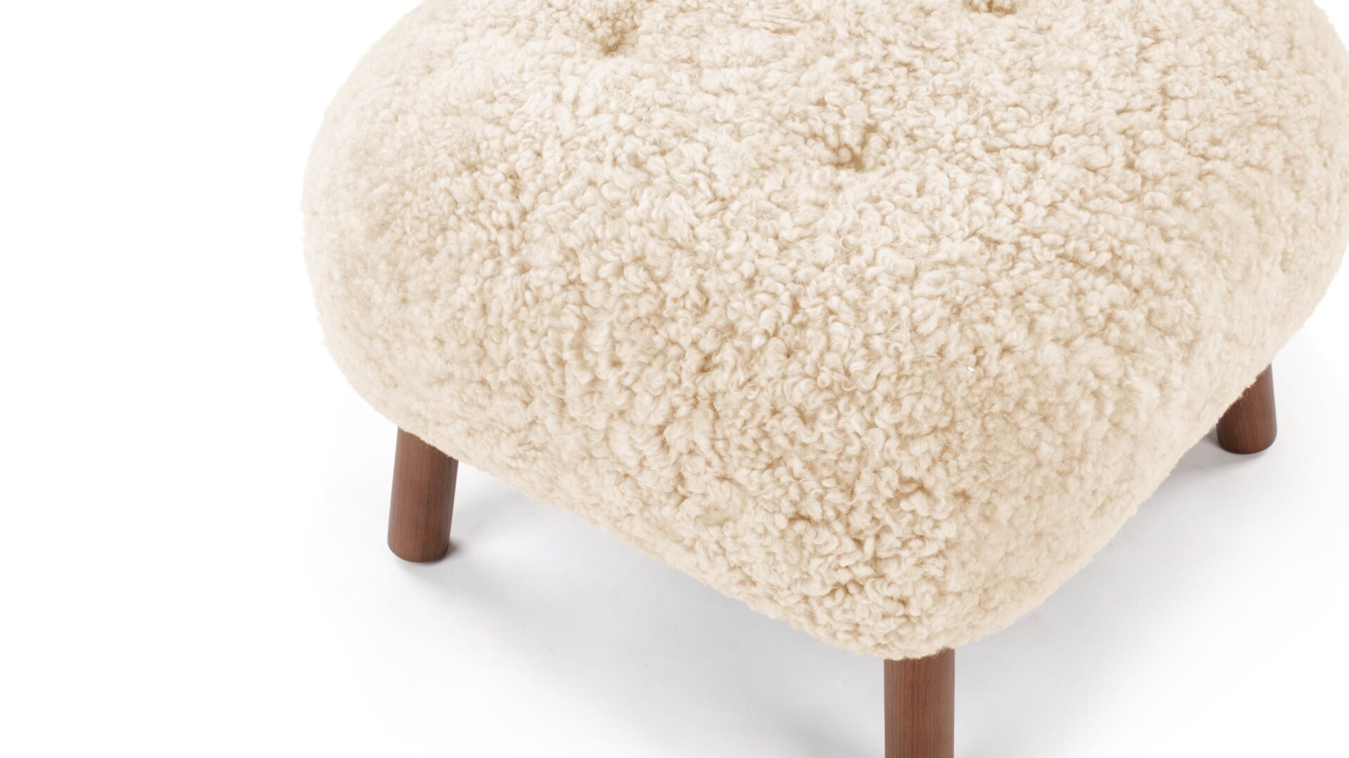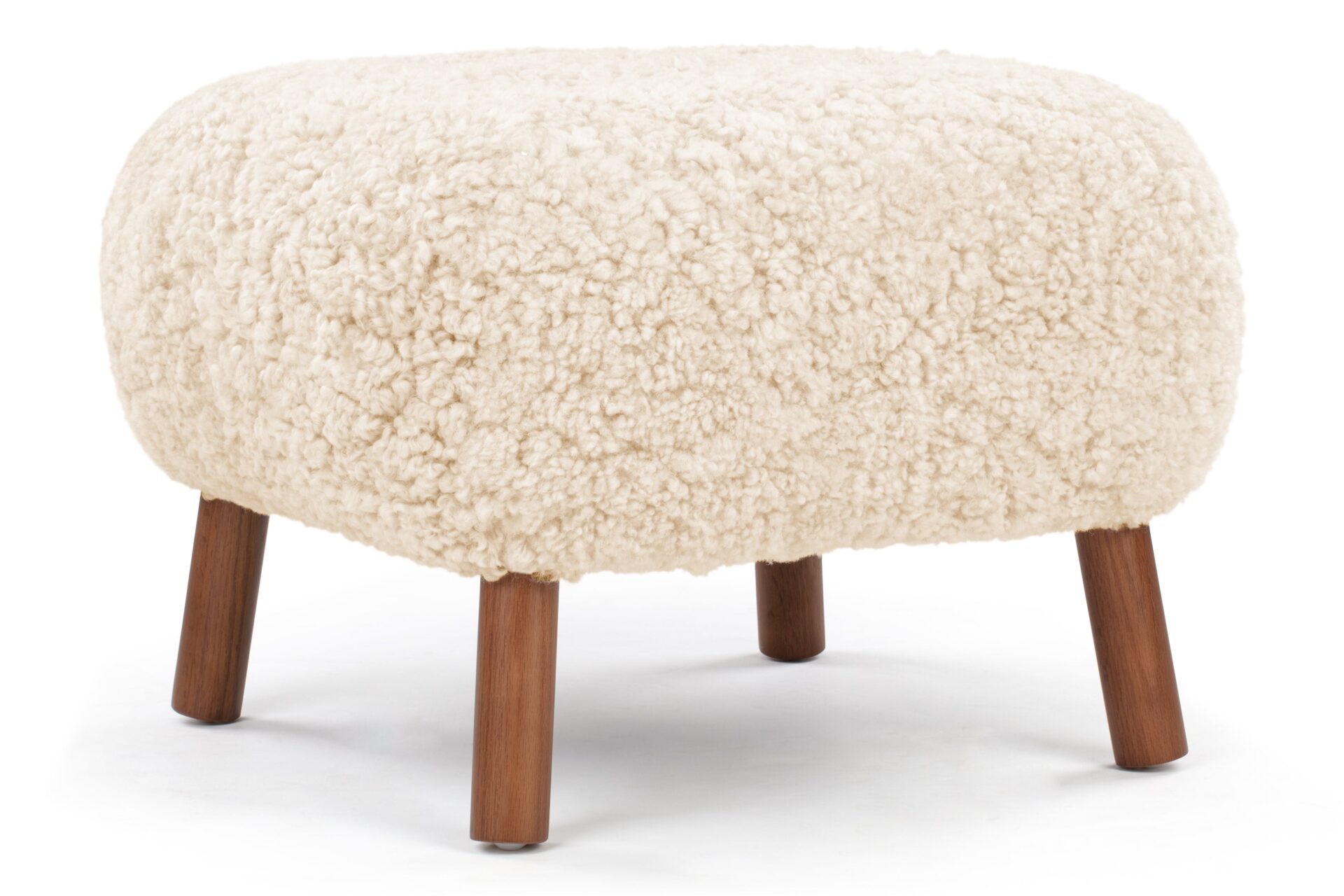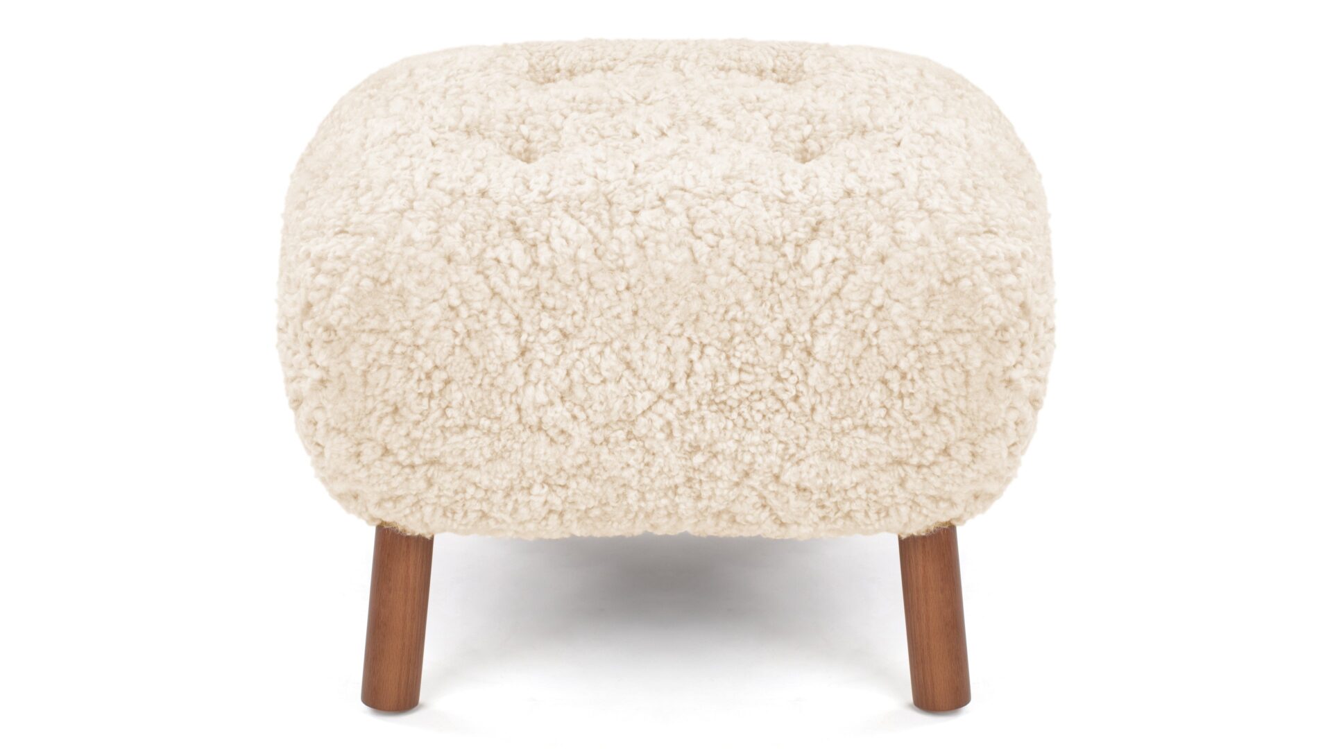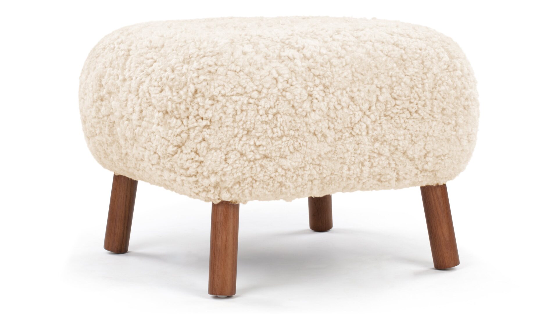 Crafted with a sturdy beech and plywood frame, the Petra Ottoman is enveloped in HR foam and polyester wadding, then luxuriously wrapped in Luxe Sheepskin. It serves as the perfect snug companion to the Lounge Chair or stands elegantly as a chic stool by itself.