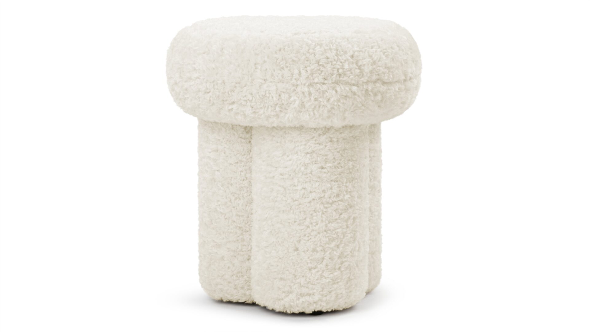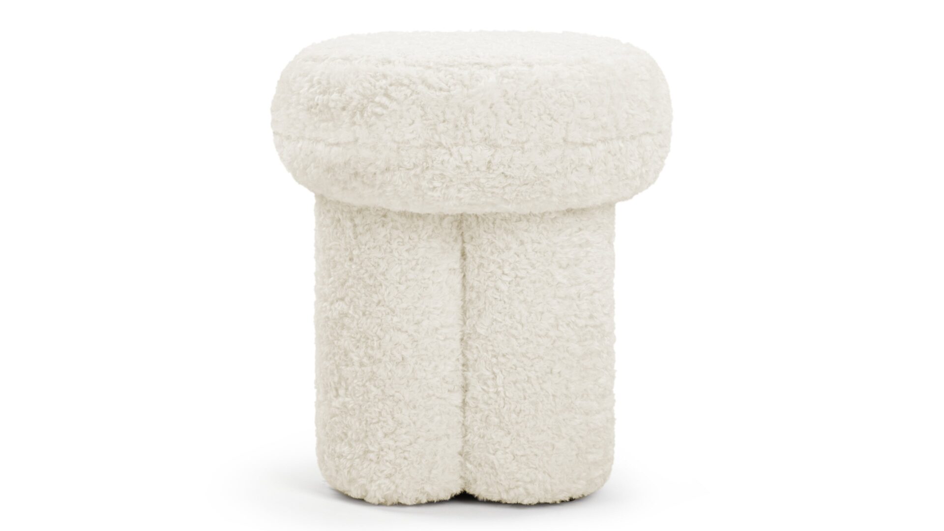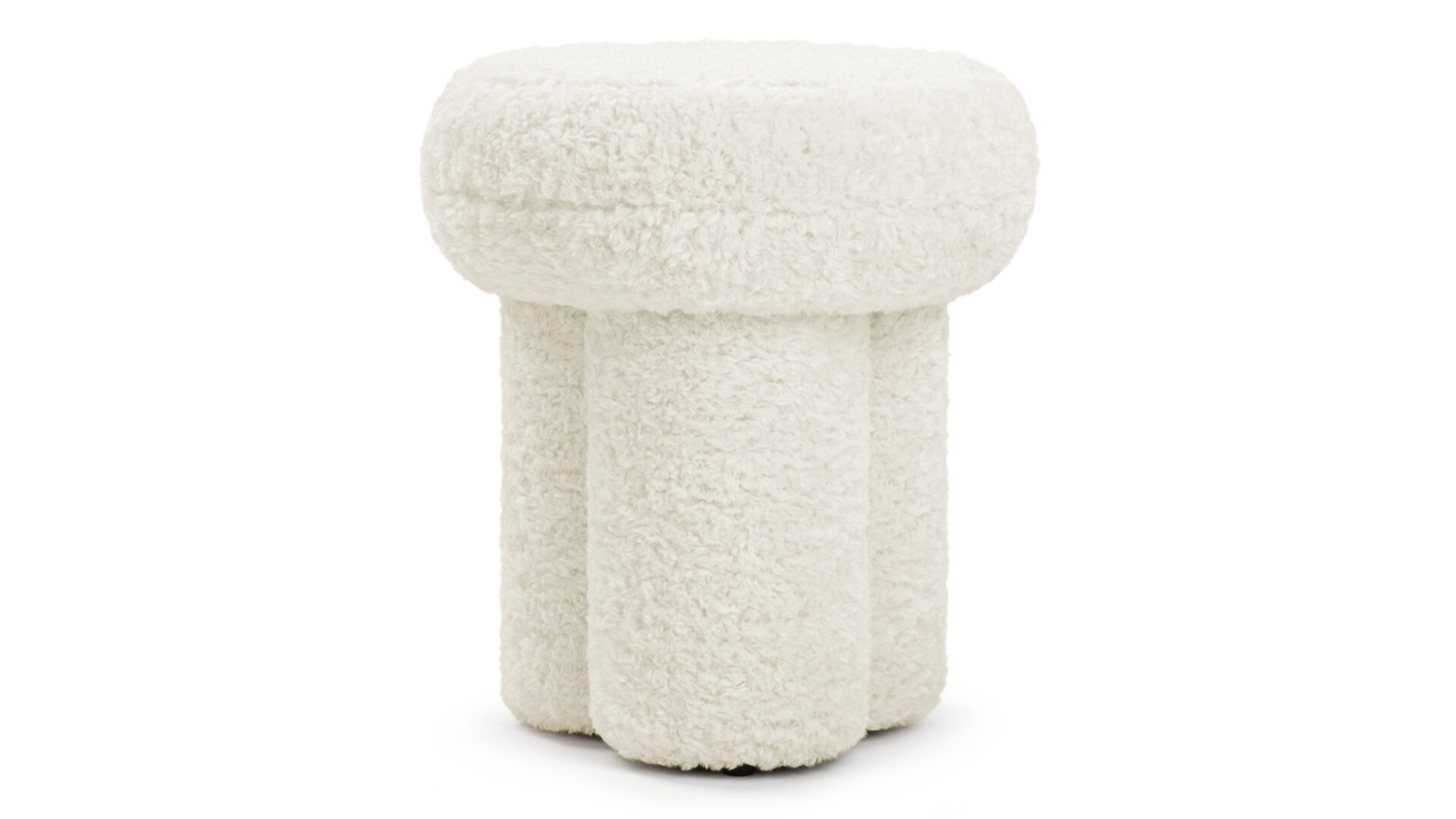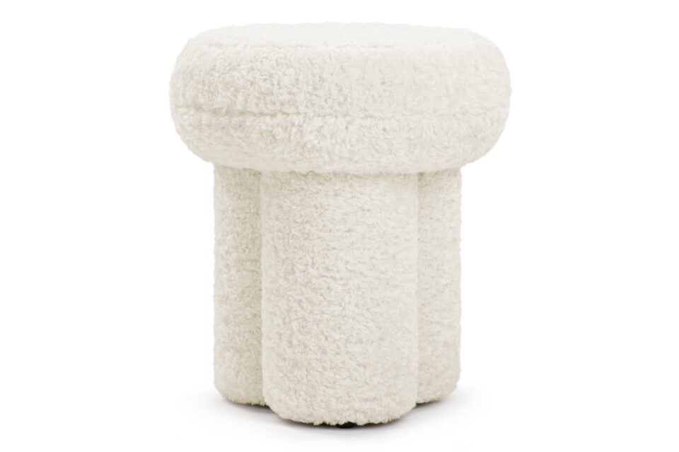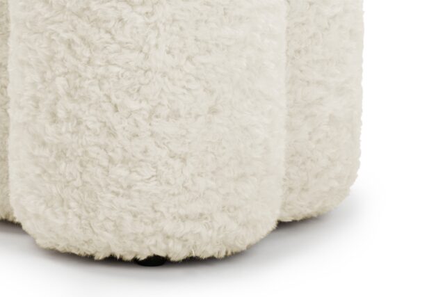 Introducing the exquisite Pia Ottoman, featuring a low-maintenance faux sheepskin that envelops its padded frame with a delightfully fluffy texture reminiscent of natural fleece, seamlessly bringing the outdoors in. Crafted in a petite, sculptural silhouette with a rounded top like a mushroom and base shaped like a clover. Perfect for relaxation or extra seating, the Pia Ottoman effortlessly combines practicality with charm, making it a versatile and stylish addition to any space.