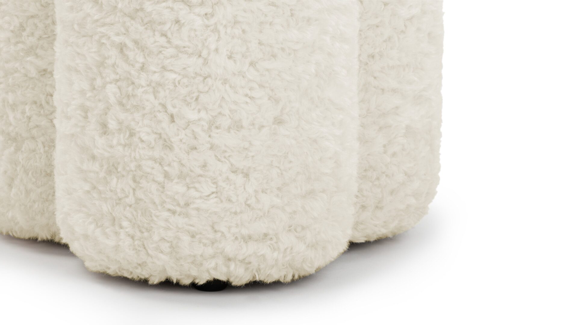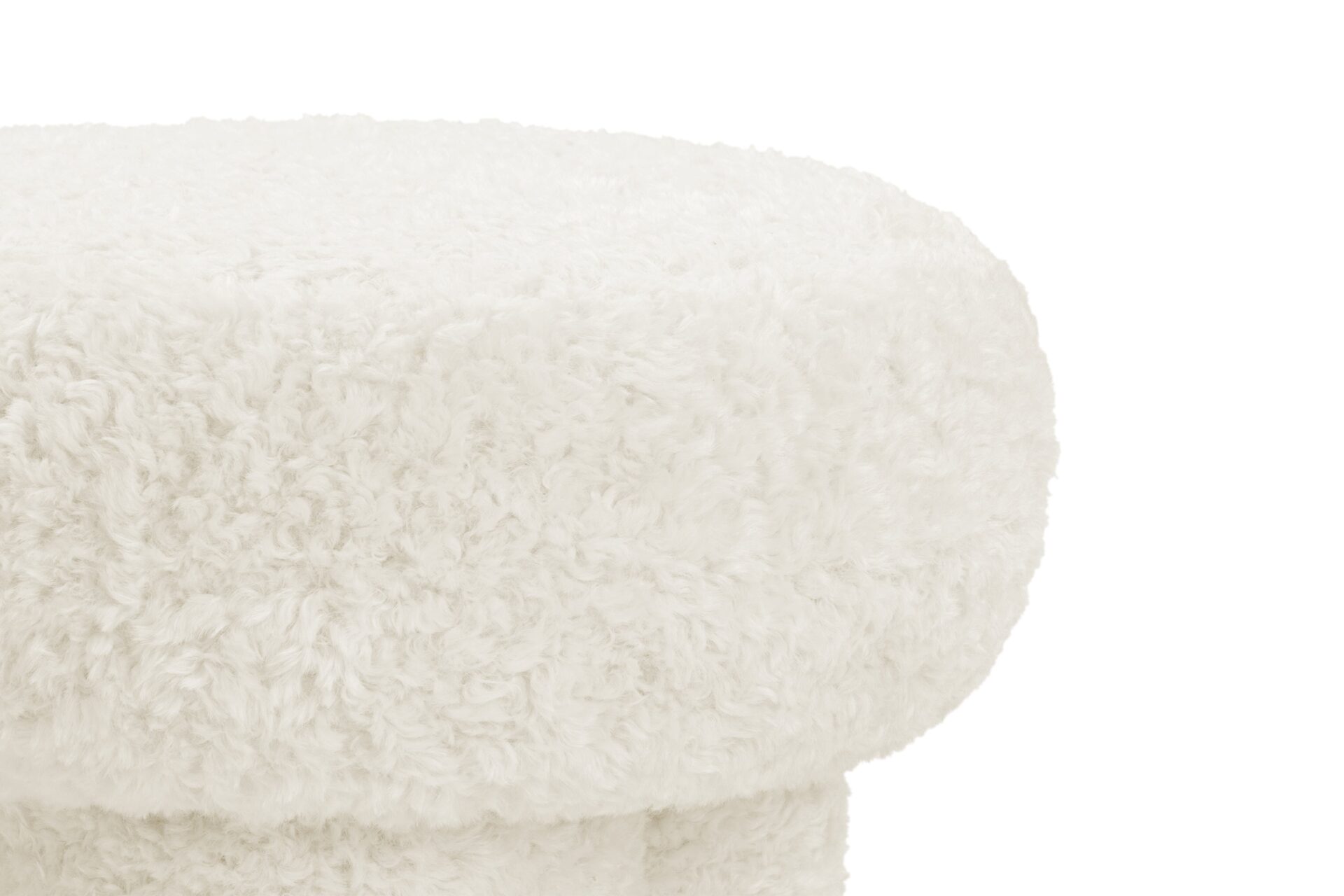 Discover the organic silhouette of the Pia Ottoman. Wrapped in easy-to-care-for faux sheepskin, this piece boasts a fluffy texture reminiscent of natural fleece, seamlessly blending outdoor coziness with indoor comfort.