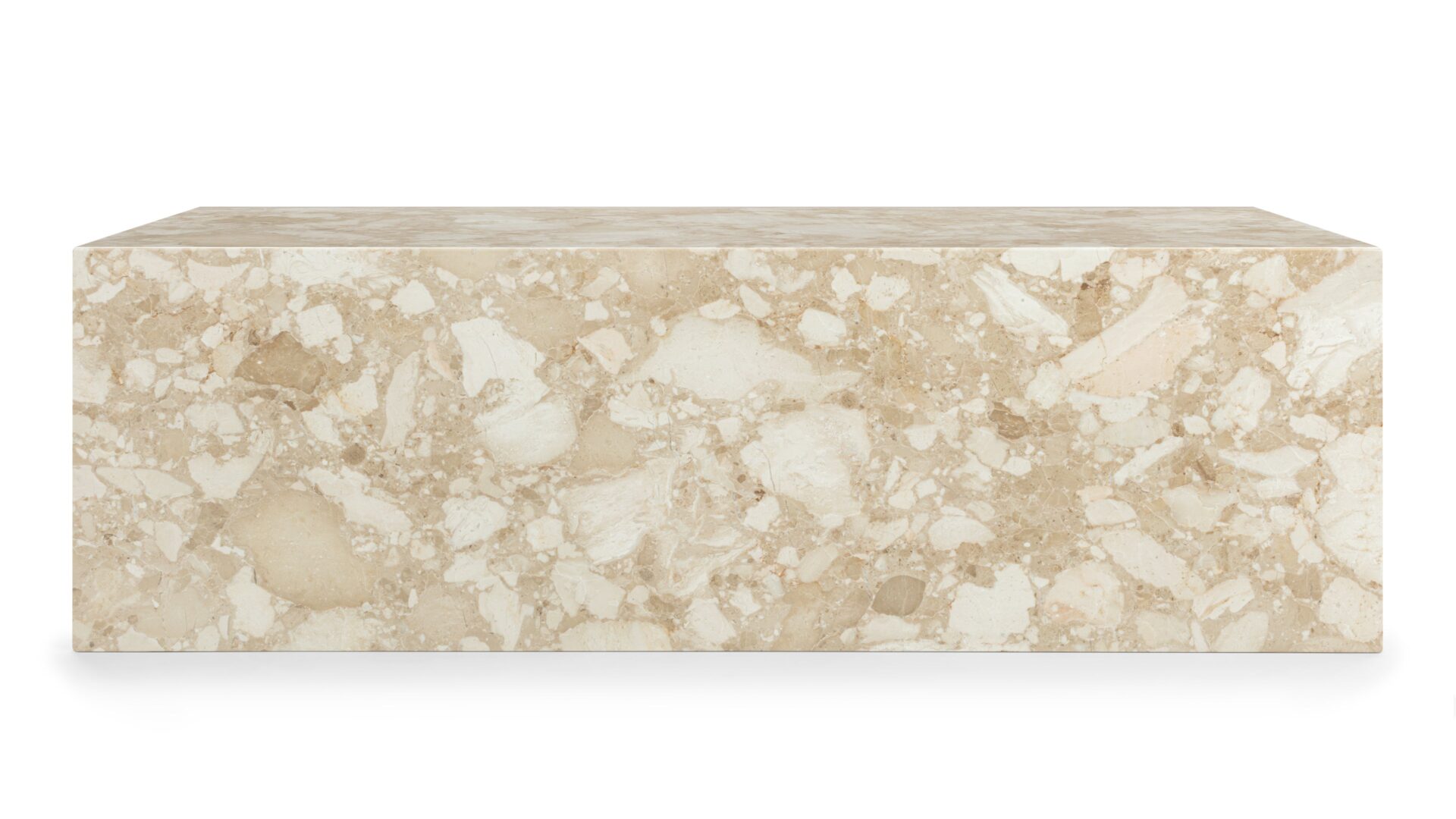 Transforming the traditional plinth into a contemporary masterpiece, the Plinth coffee table redefines elegance with Kunis Breccia marble's unique traits. Crafted to showcase the stone's individuality, its minimalist design enhances the natural beauty of the marble, featuring graceful veining, delightful color variations, and charming unique features. Appreciate the enduring charm of genuine marble with this one-of-a-kind piece that stands as a sculptural masterpiece, suitable for modern and traditional settings.