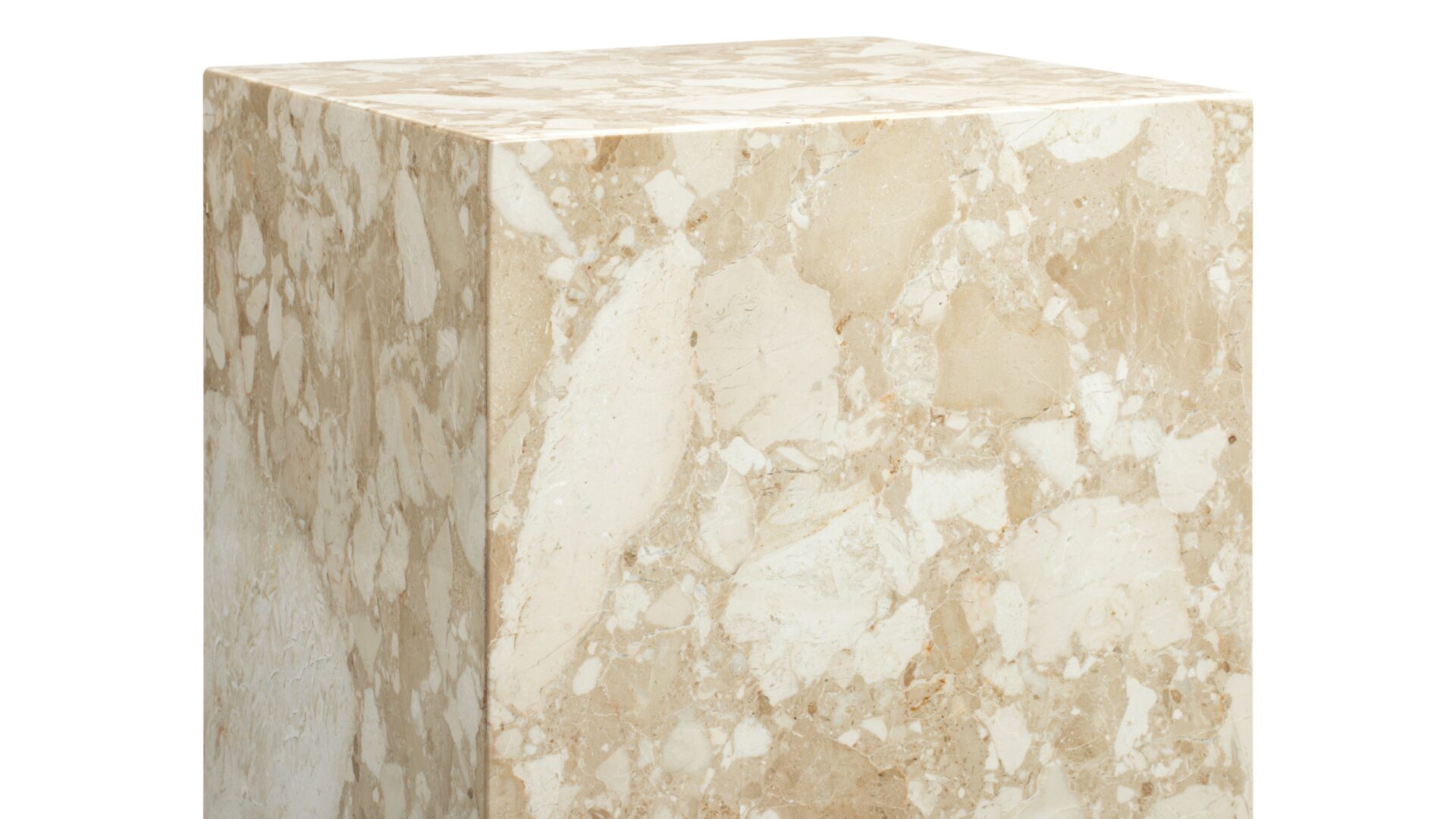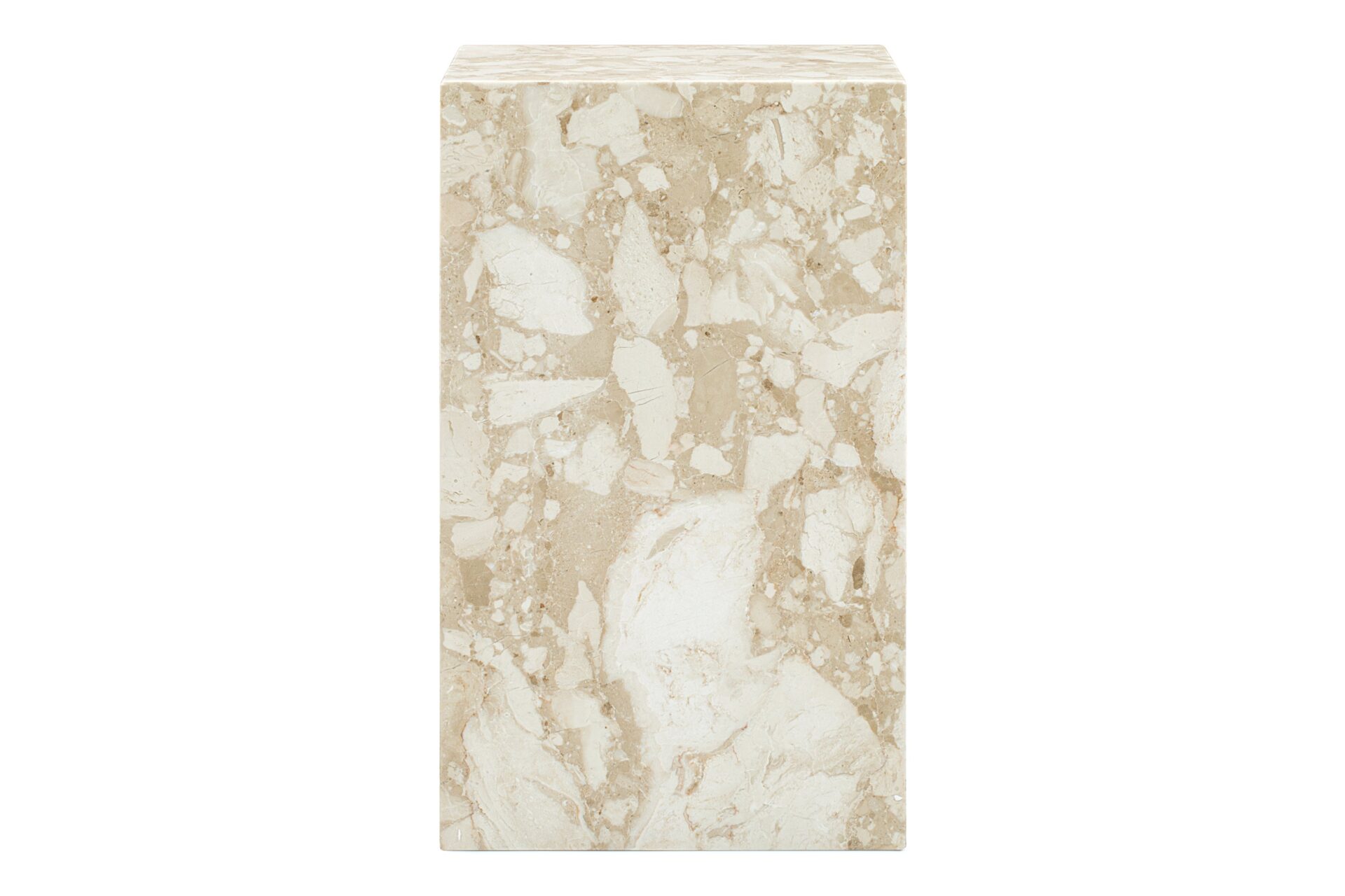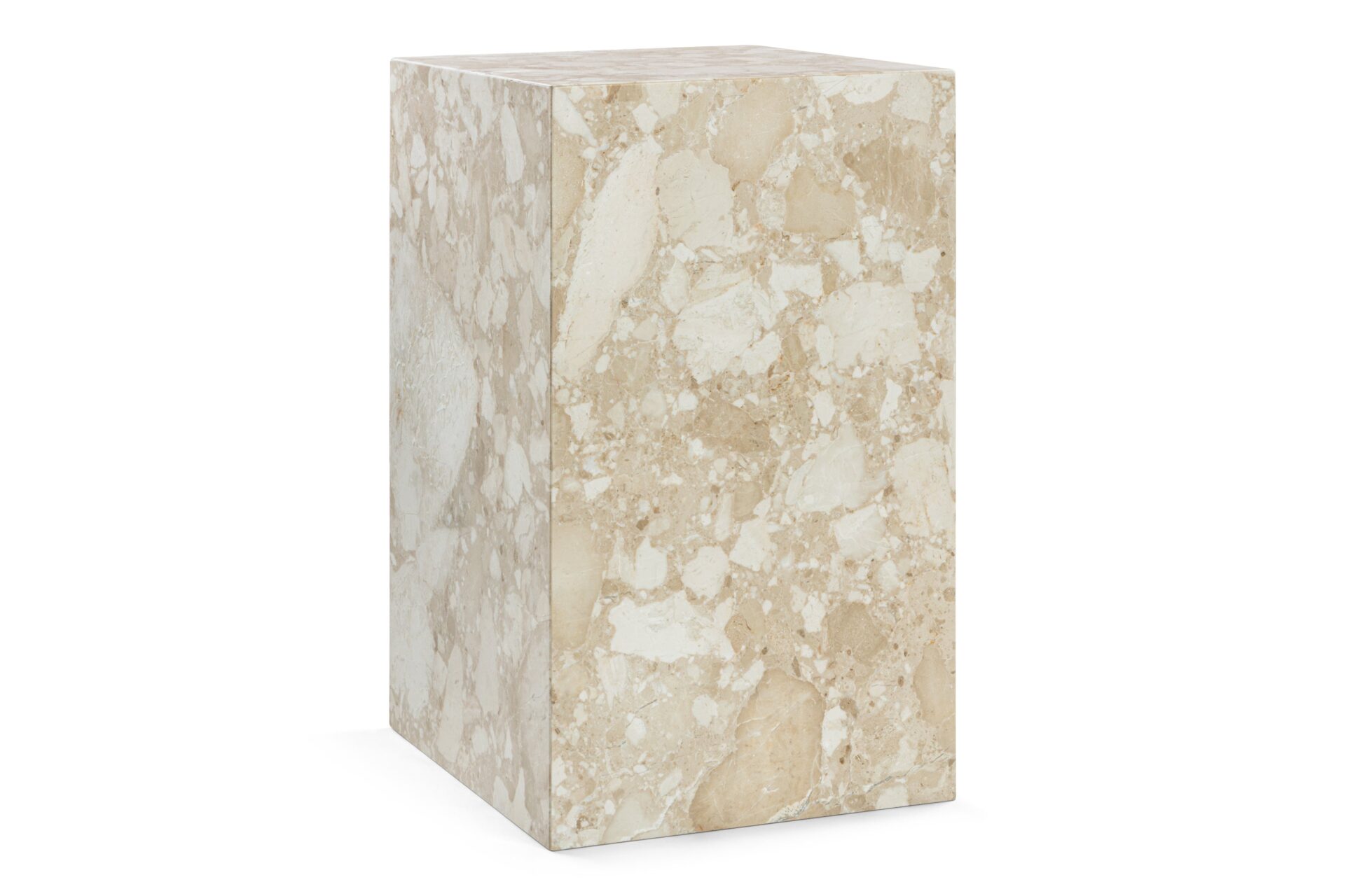 Experience the enchanting allure of Kunis Breccia marble with the Plinth side table. Meticulously crafted to celebrate the natural beauty of this exquisite material, the table's understated design accentuates the stone's inherent charm, showcasing stunning variations in color and unique veining patterns. Elevate your space with this exclusive masterpiece that seamlessly blends modern elegance with timeless sophistication.