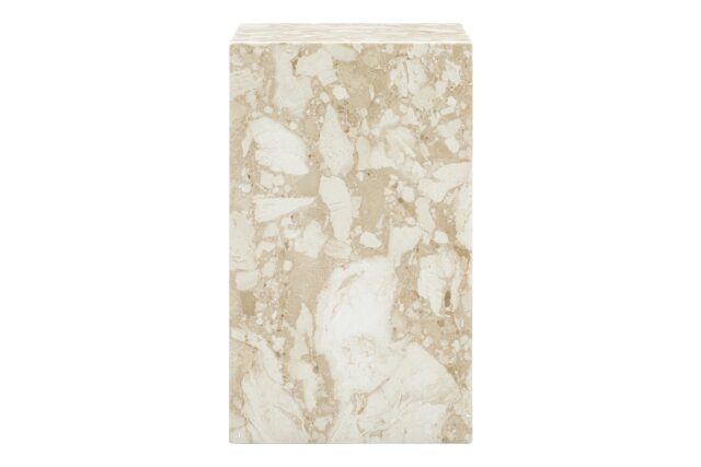 Crafted with a deliberately understated design, the Plinth side table aims to enhance the inherent beauty of marble in its truest state. Its clean and straightforward appearance allows the stone's individuality to shine. Revitalizing the traditional notion of a plinth, this modern Danish creation reinvents the pedestal as more than just a display base, transforming it into a work of art on its own. Constructed using exquisite Italian modellato marble, each Plinth side table promises uniqueness, displaying subtle neutral veining, delightful color variations, and distinctive charming traits.