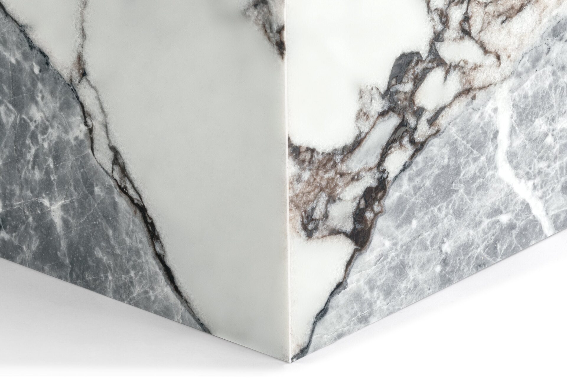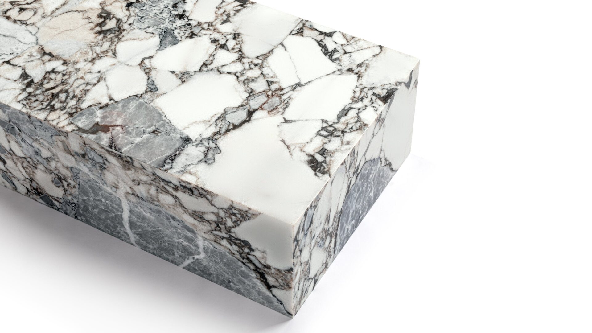 Crafted with precision to maintain perfect uniformity in shape, the Plinth coffee table showcases a monolithic design that pays tribute to the unique natural beauty of the stone. Constructed from high-quality Italian modellato marble featuring delicate and sophisticated veining, every Plinth coffee table is truly one-of-a-kind, displaying the individual characteristics imbued into this stunning stone over centuries.