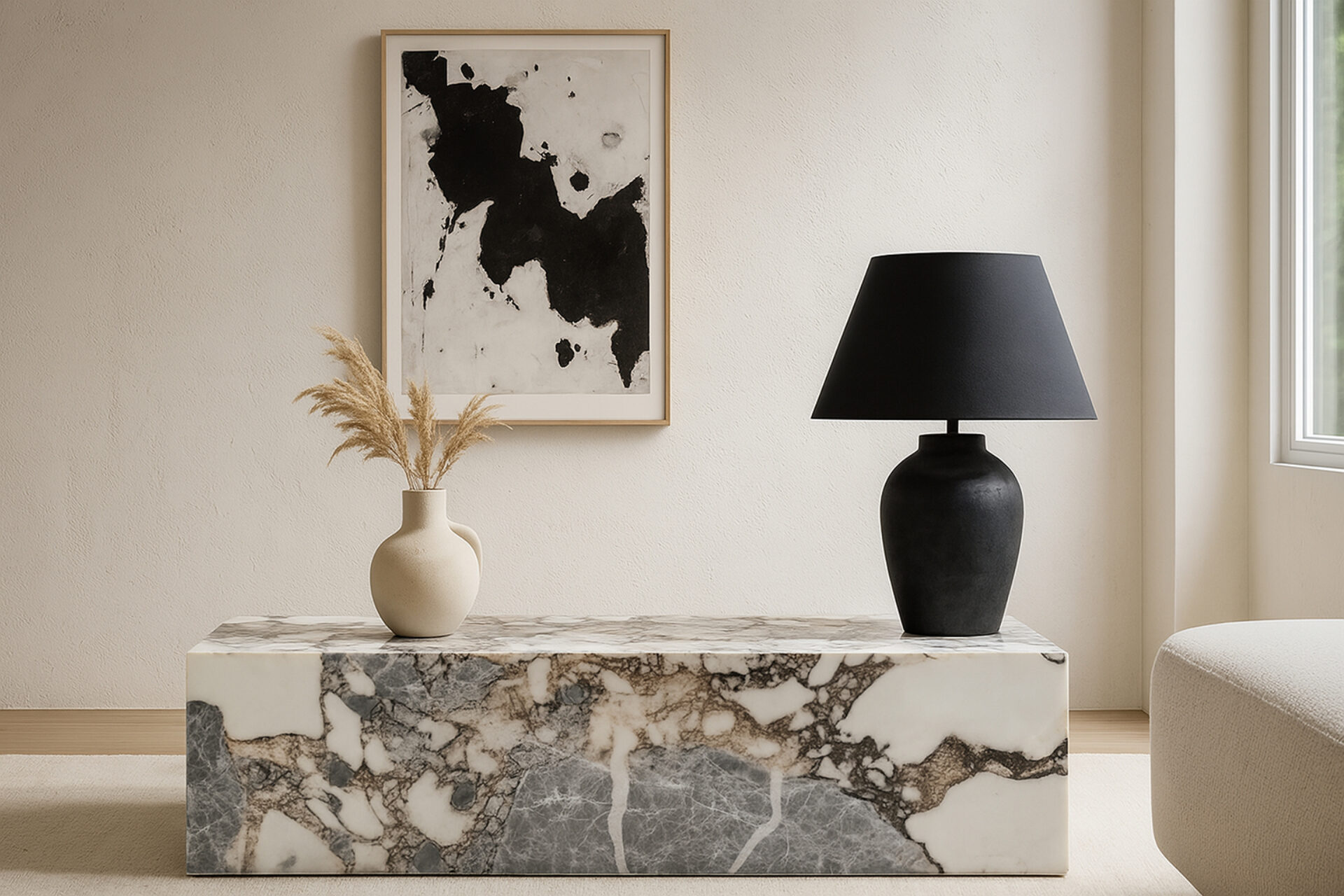 Appreciate the enduring charm and sophisticated elegance of genuine marble with the Plinth. The versatile design seamlessly fits into modern and traditional settings. Let this eye-catching piece take center stage in your decor, creating a chic spot to showcase your glassware and beloved coffee table books.