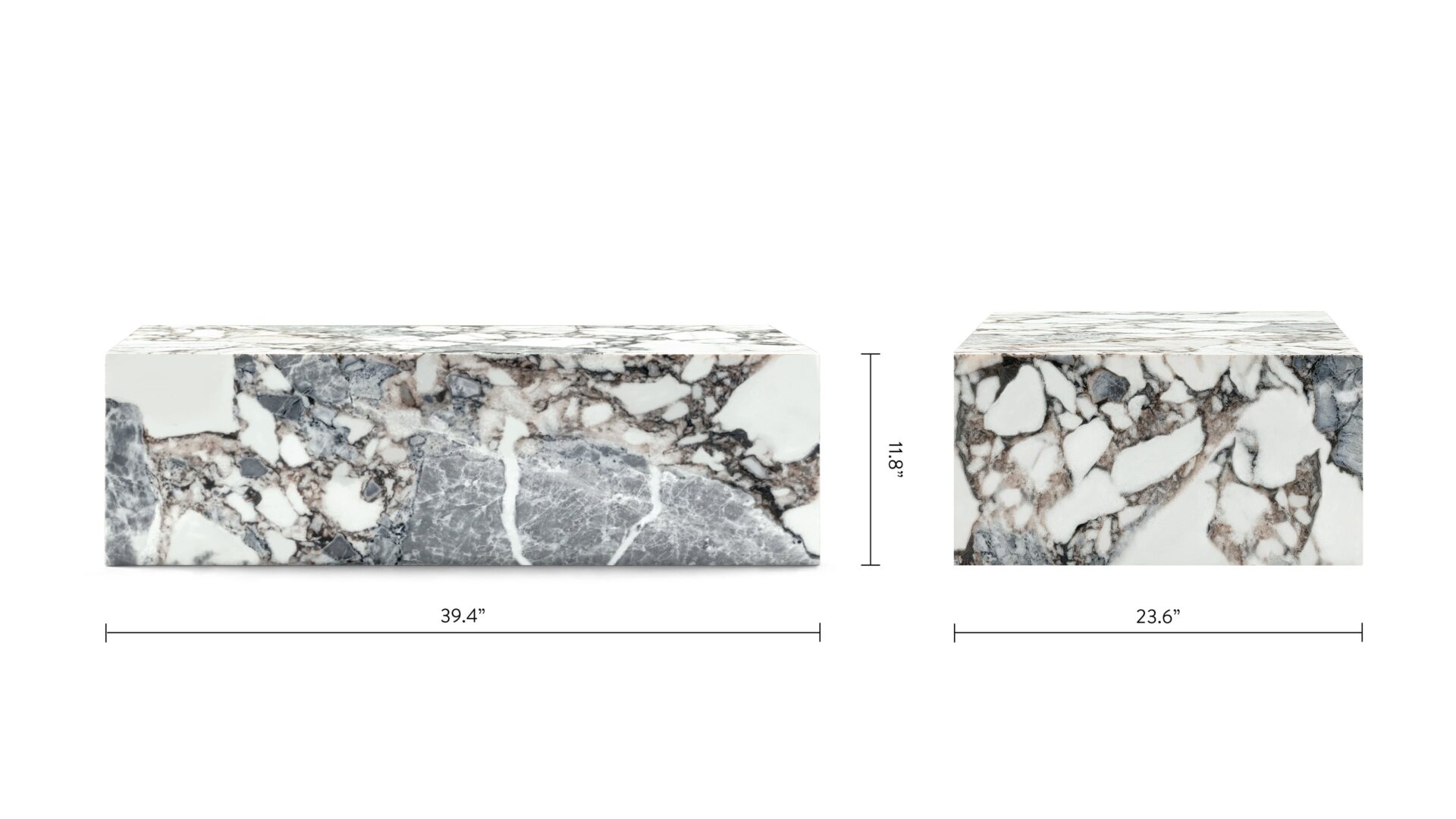 Embrace the understated elegance of the Plinth coffee table, crafted from exquisite Italian modellato marble. Featuring delicate gray and neutral veining, each table boasts unique color variations and distinctive characteristics. This modern Danish design transforms the traditional plinth into a mesmerizing sculptural masterpiece, perfect for showcasing your style and sophistication.