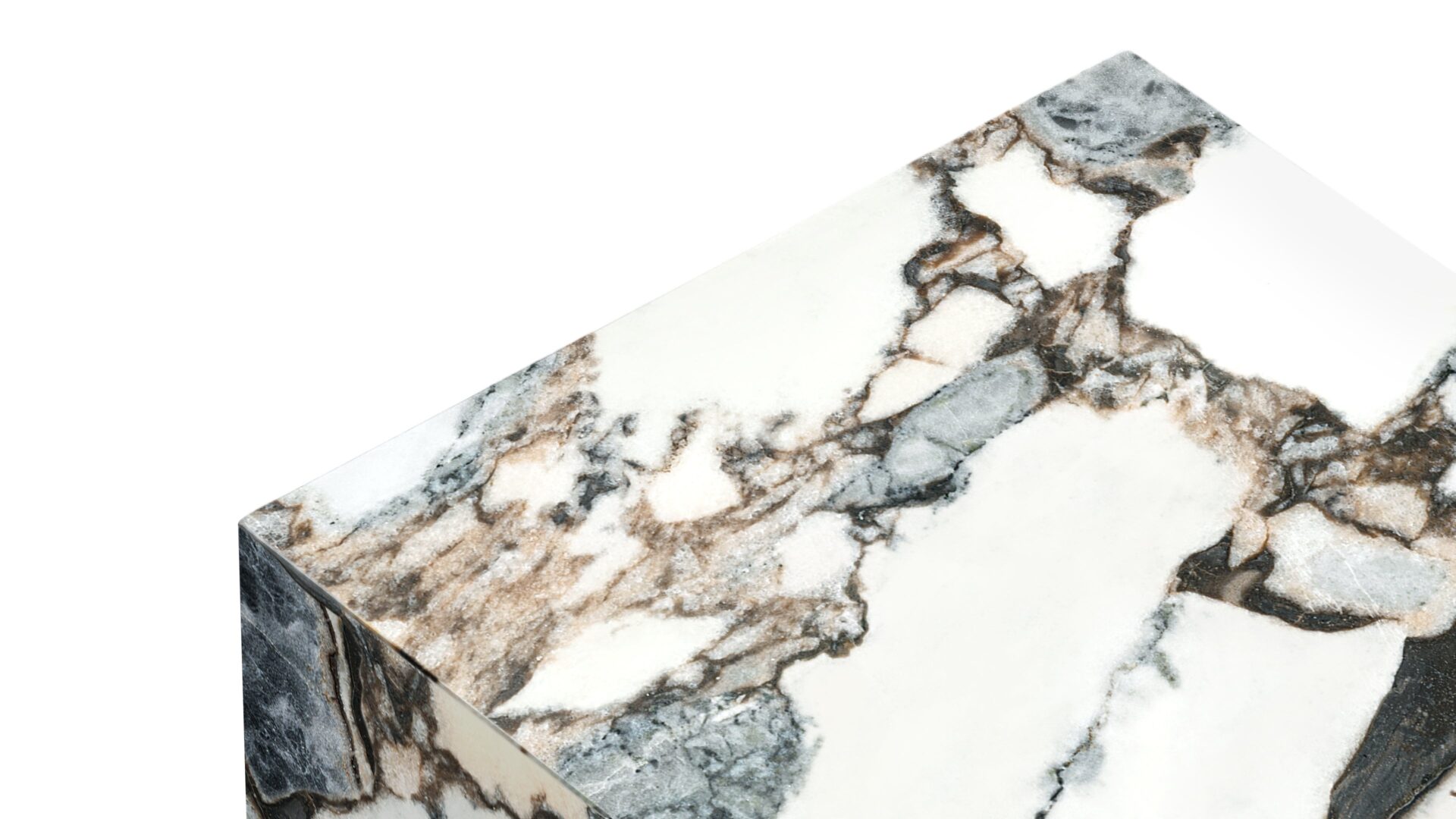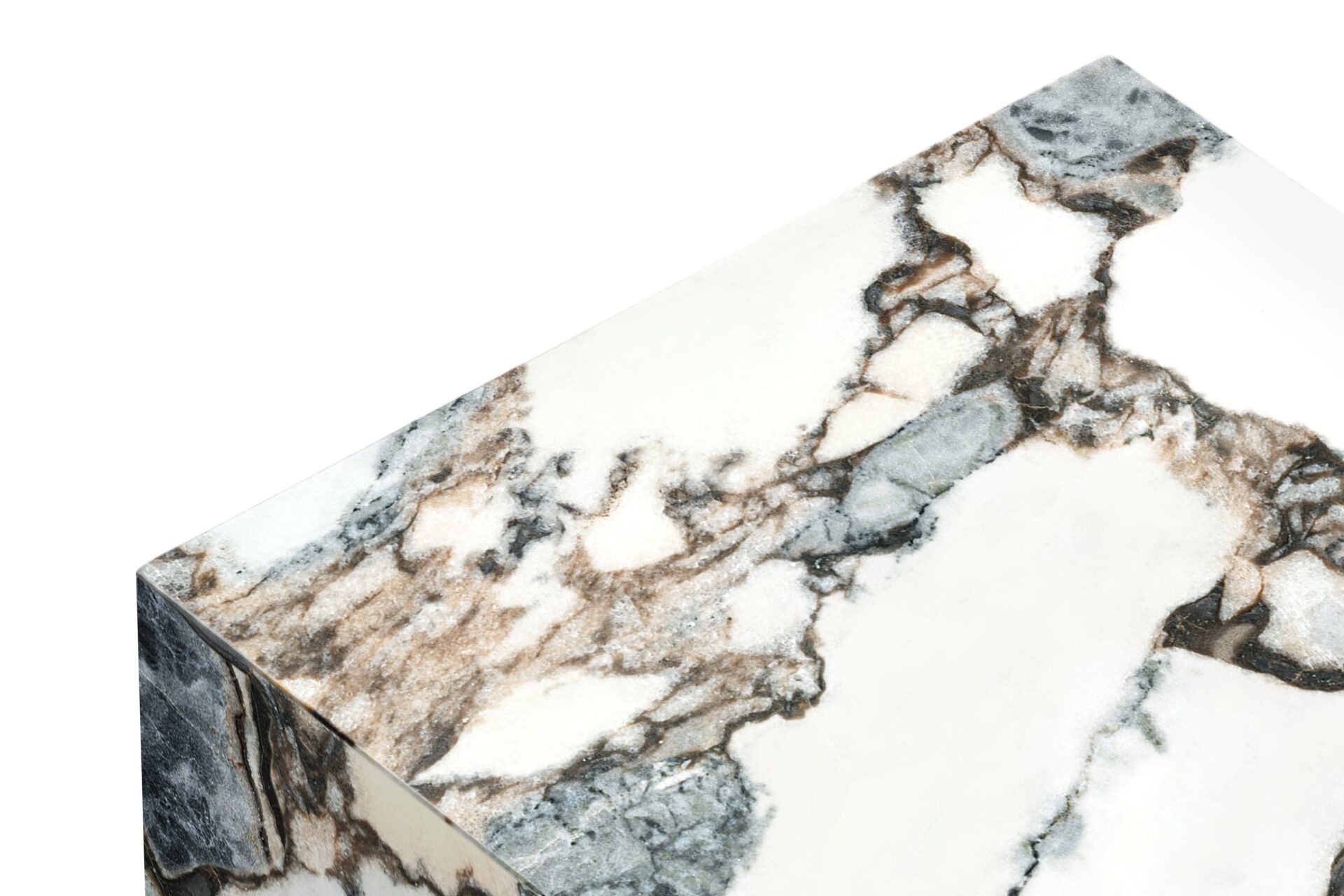 Impeccably consistent in form, this solid design pays tribute to the stunning natural charm of the stone. Crafted from high-quality Italian marble with striking veining, every Plinth side table is one-of-a-kind, showcasing the distinct features that have been intricately woven into this exquisite stone over centuries.