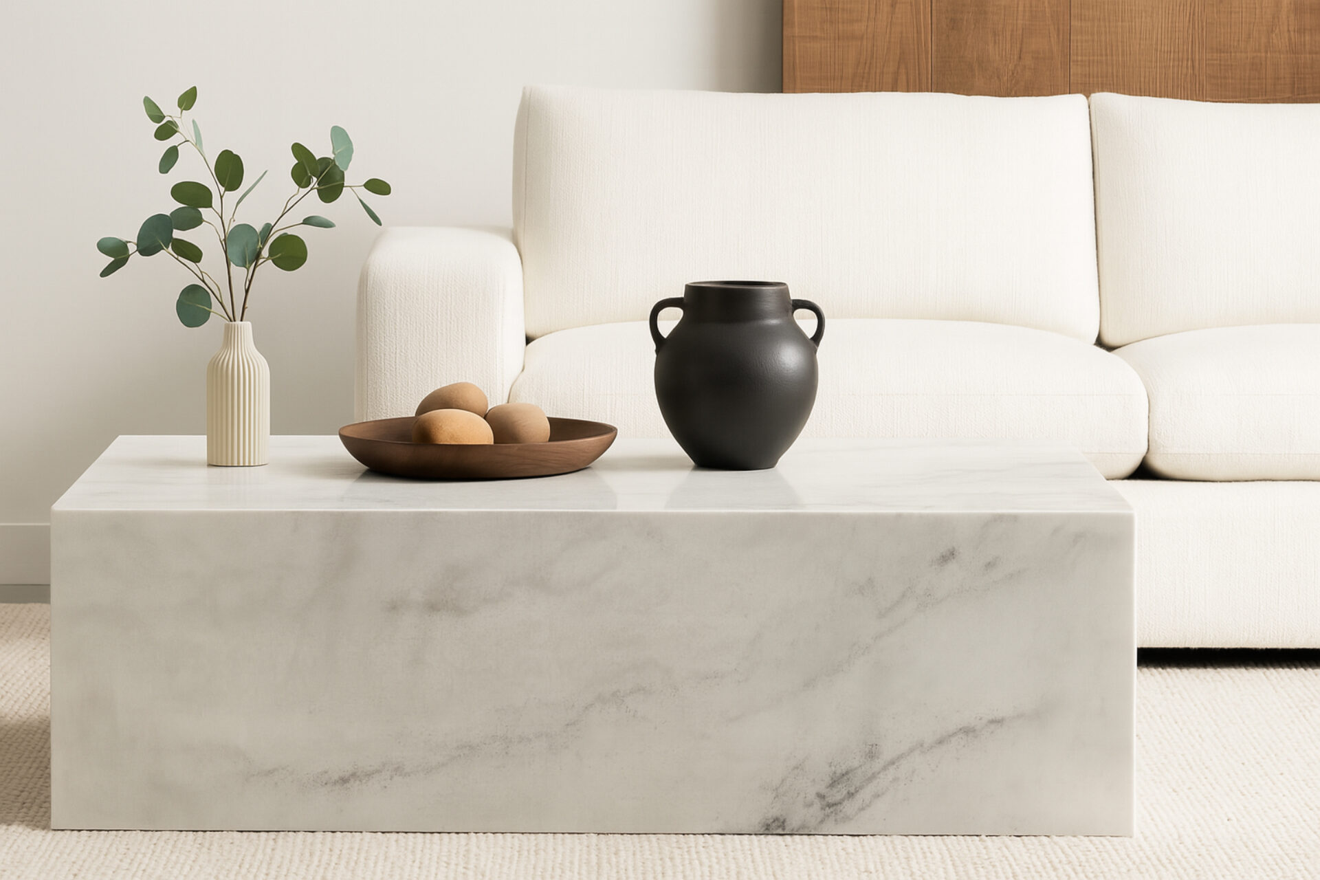 Appreciate the enduring charm and sophisticated elegance of genuine marble with the Plinth. The versatile design seamlessly fits into modern and traditional settings. Let this eye-catching piece take center stage in your decor, creating a chic spot to showcase your glassware and beloved coffee table books.