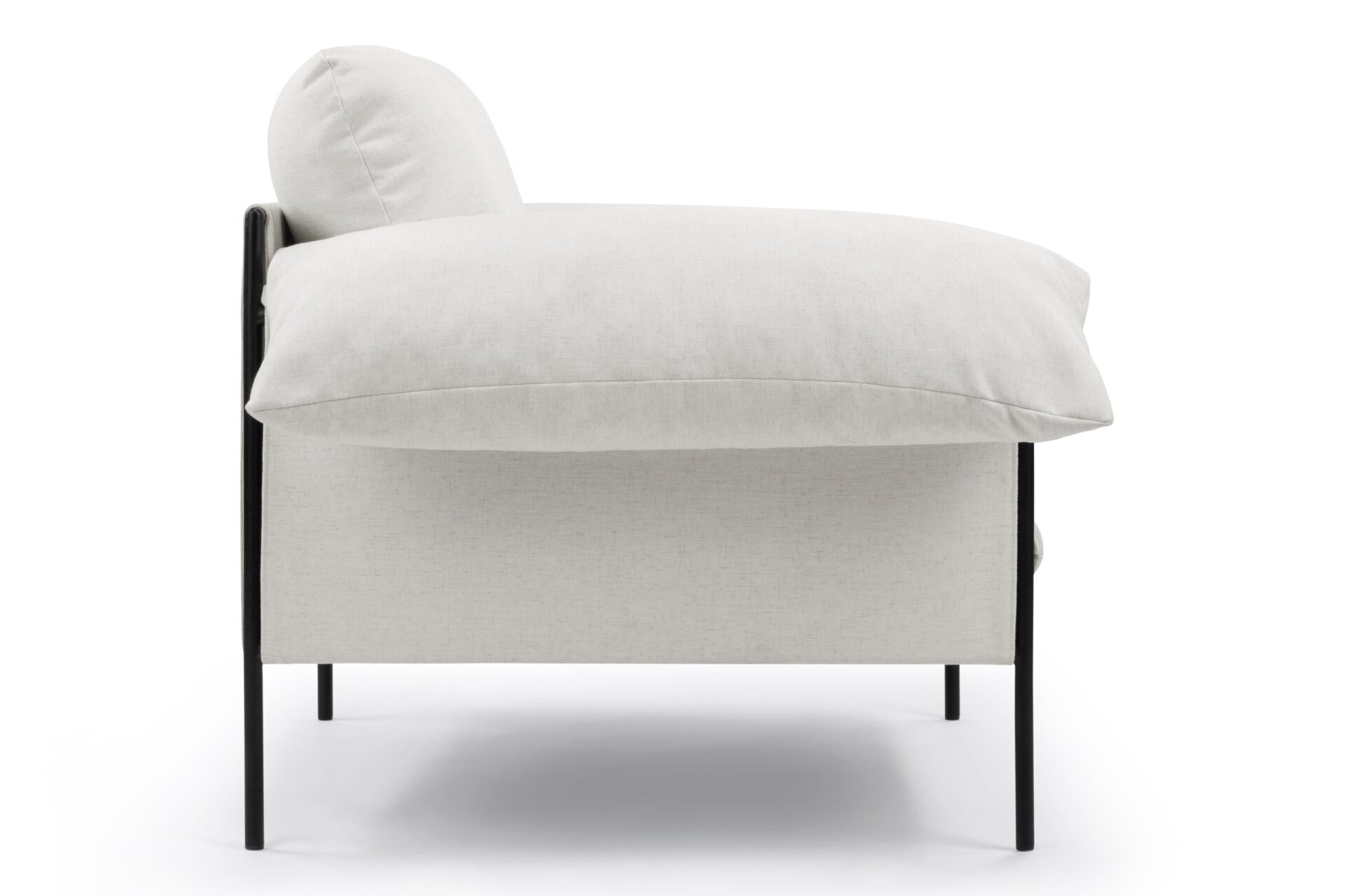 Elevate your space with the approved Stills furniture piece. The sophisticated black metal frame effortlessly complements the plush off-white upholstery, striking a harmonious blend of industrial allure and welcoming coziness. This piece's suspended seat and modern metal frame accentuate its architectural yet inviting charm, establishing it as a standout selection for modern living areas.