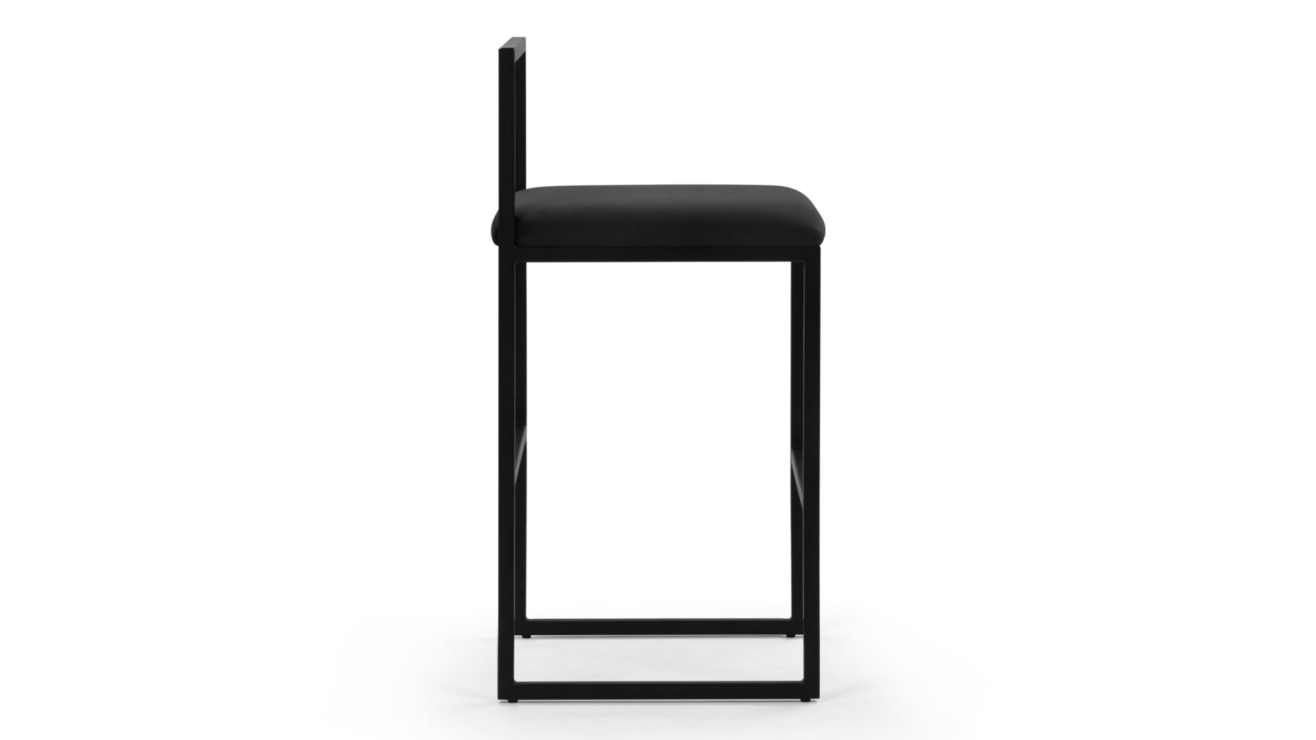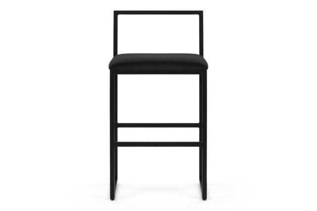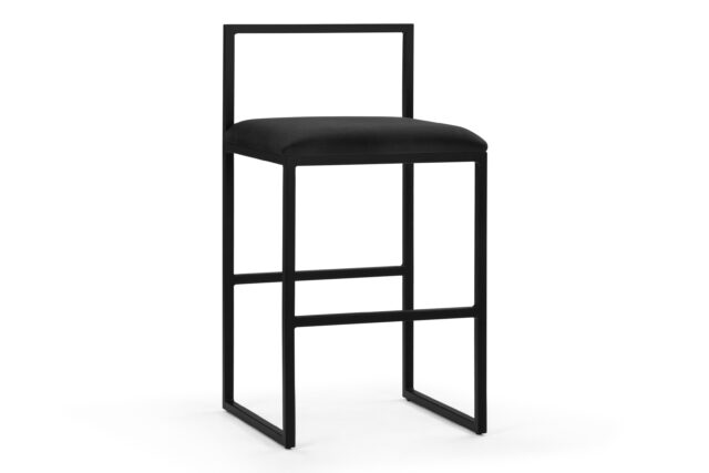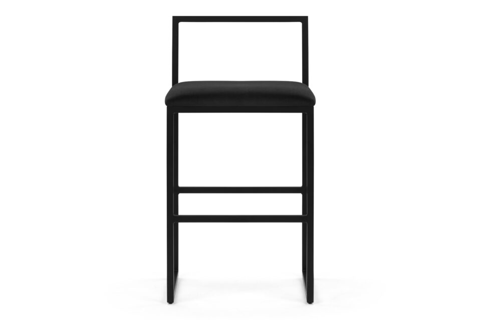 Discover the modern elegance of the Rens Counter Stool. Boasting a chic, minimalist design, this stool showcases a luxurious black velvet seat paired with a stylish angular metal frame for a sophisticated touch. Its sleek low back and square corners infuse a refined contemporary essence to any decor.