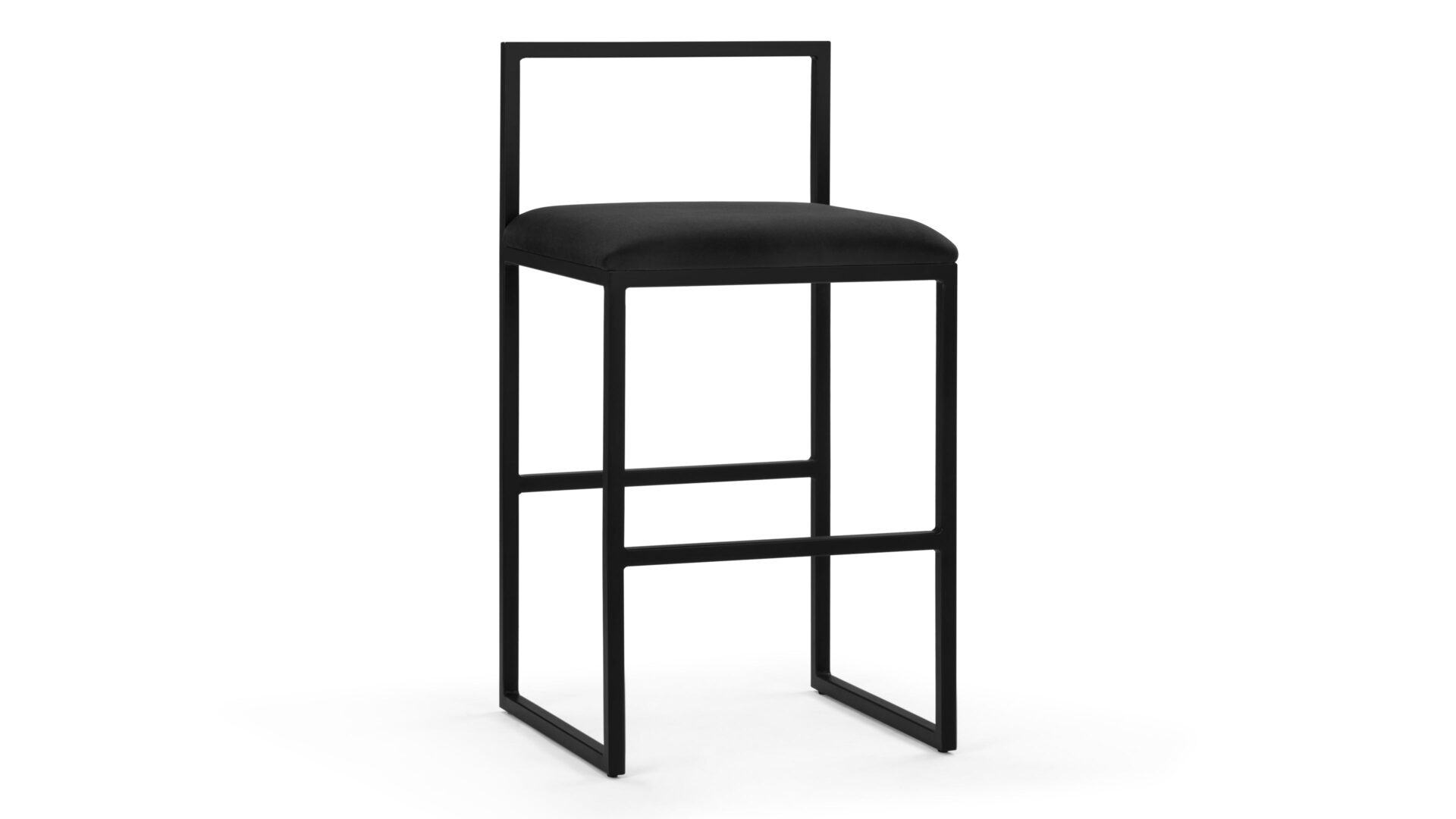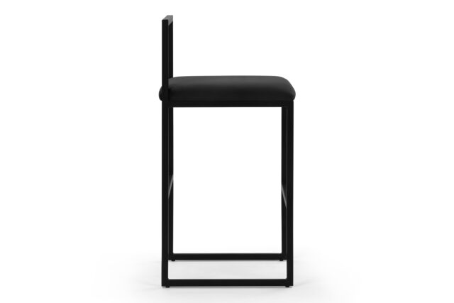 Elevate your kitchen or low bar area with the modern elegance of the Rens Counter Stool. A luxurious black velvet seat, high-density foam padding, and sleek black metal frame create a sophisticated seating solution perfect for leisurely conversations or relaxed meals. Infuse contemporary flair into any decor effortlessly with this stylish and elegant stool.