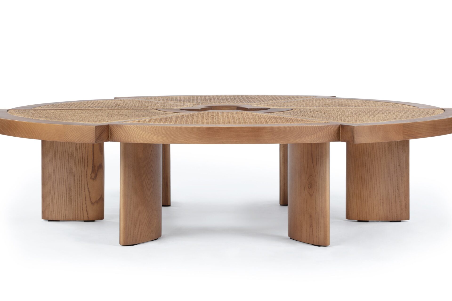 Expertly crafted with meticulously proportioned thick hardwood legs and a chunky top, the Rio table beautifully juxtaposes the use of cane and a central hole, creating a perfect balance between solidity and lightness in the design.