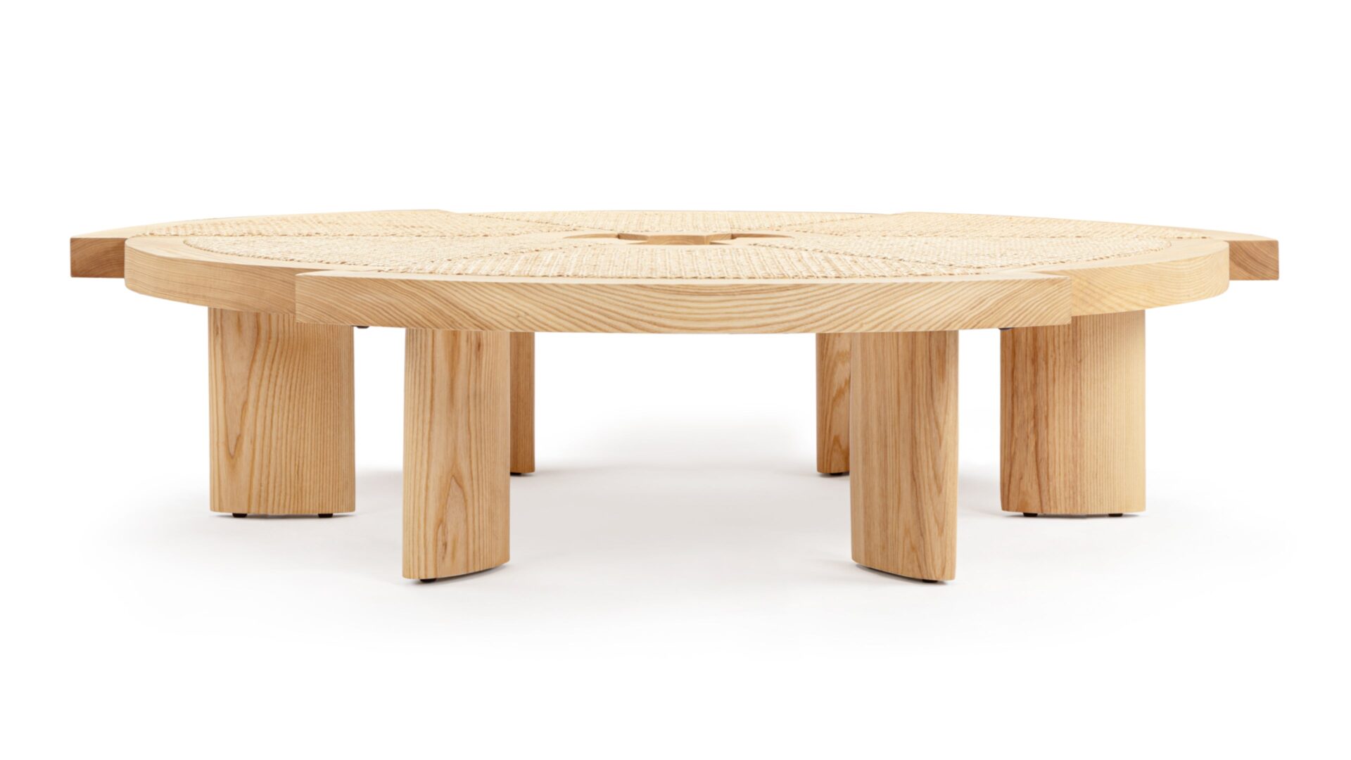 Experience the enduring allure of the Rio Coffee Table, a captivating design that effortlessly blends timeless style. Featuring a unique circular form with cane-inset segments, the Mango Bay Coffee Table™ showcases balanced symmetry and a distinctive staggered edge. Crafted with ash material and showcasing an elegant combination of solidity and lightness, this piece embodies simplified elegance and harmonious design, making it a classic symbol that seamlessly marries mid-century modern charm with contemporary aesthetics.