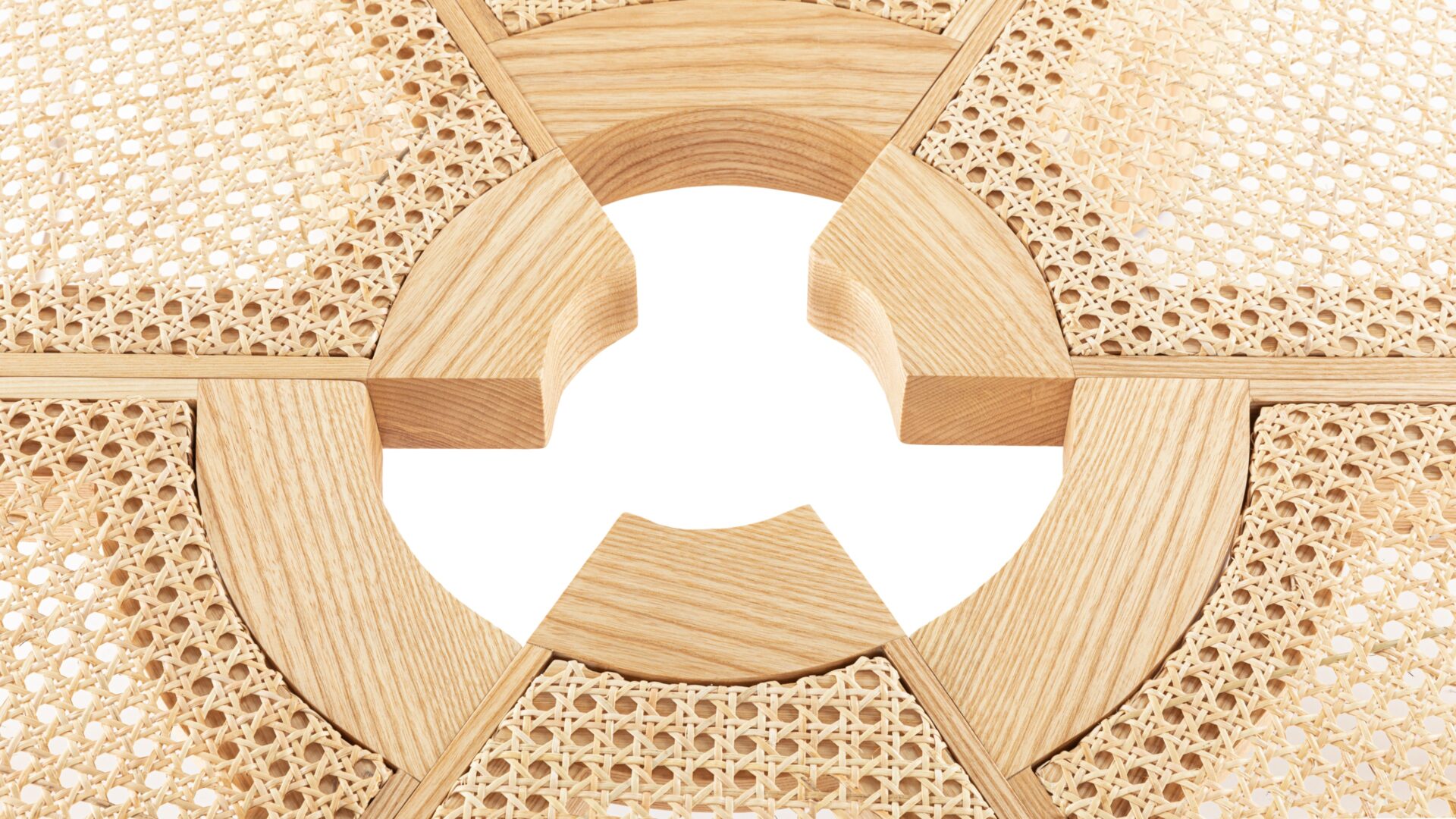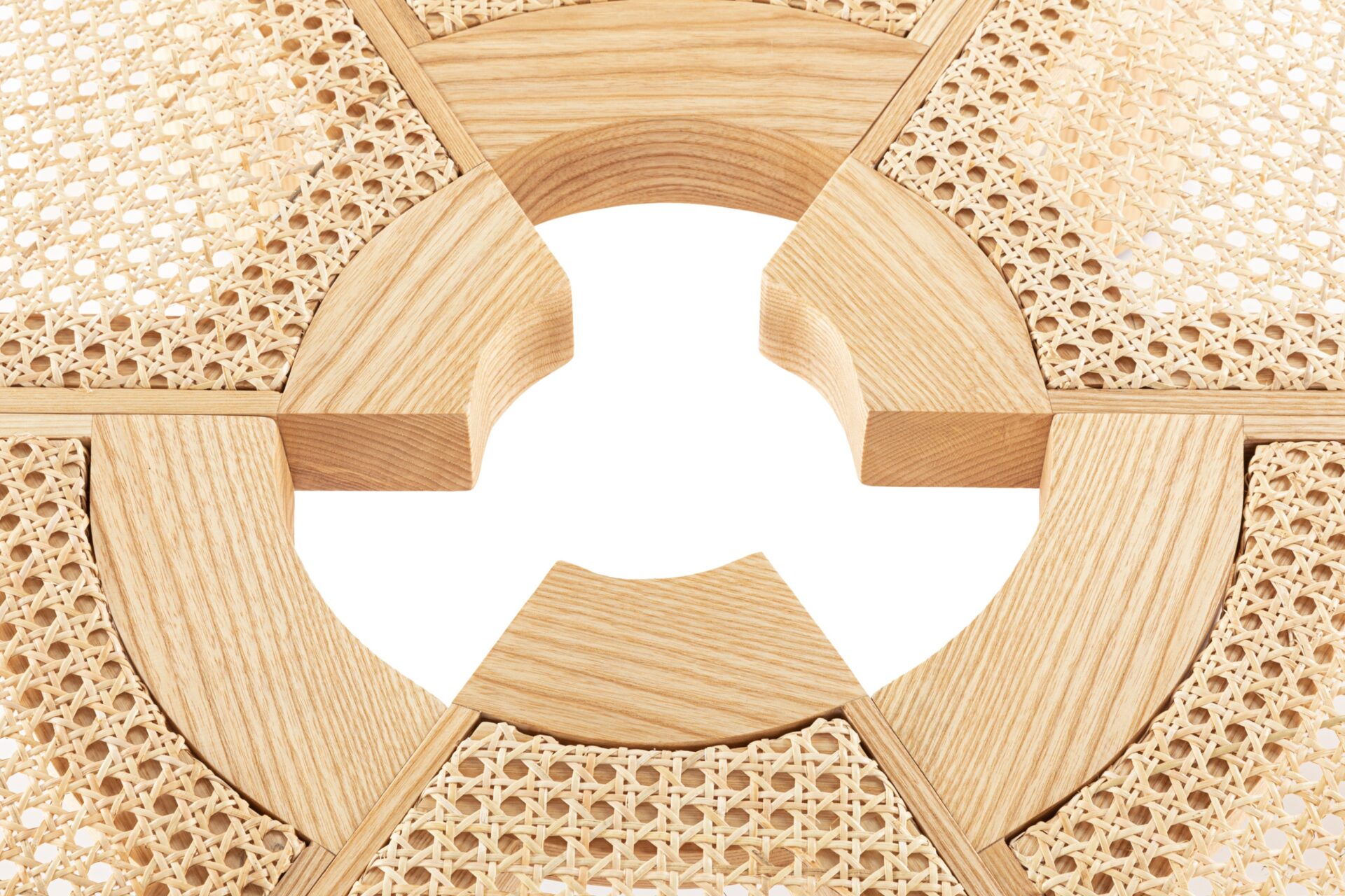 Expertly crafted with meticulously proportioned thick hardwood legs and a chunky top, the Rio table beautifully juxtaposes the use of cane and a central hole, creating a perfect balance between solidity and lightness in the design.