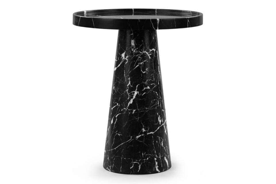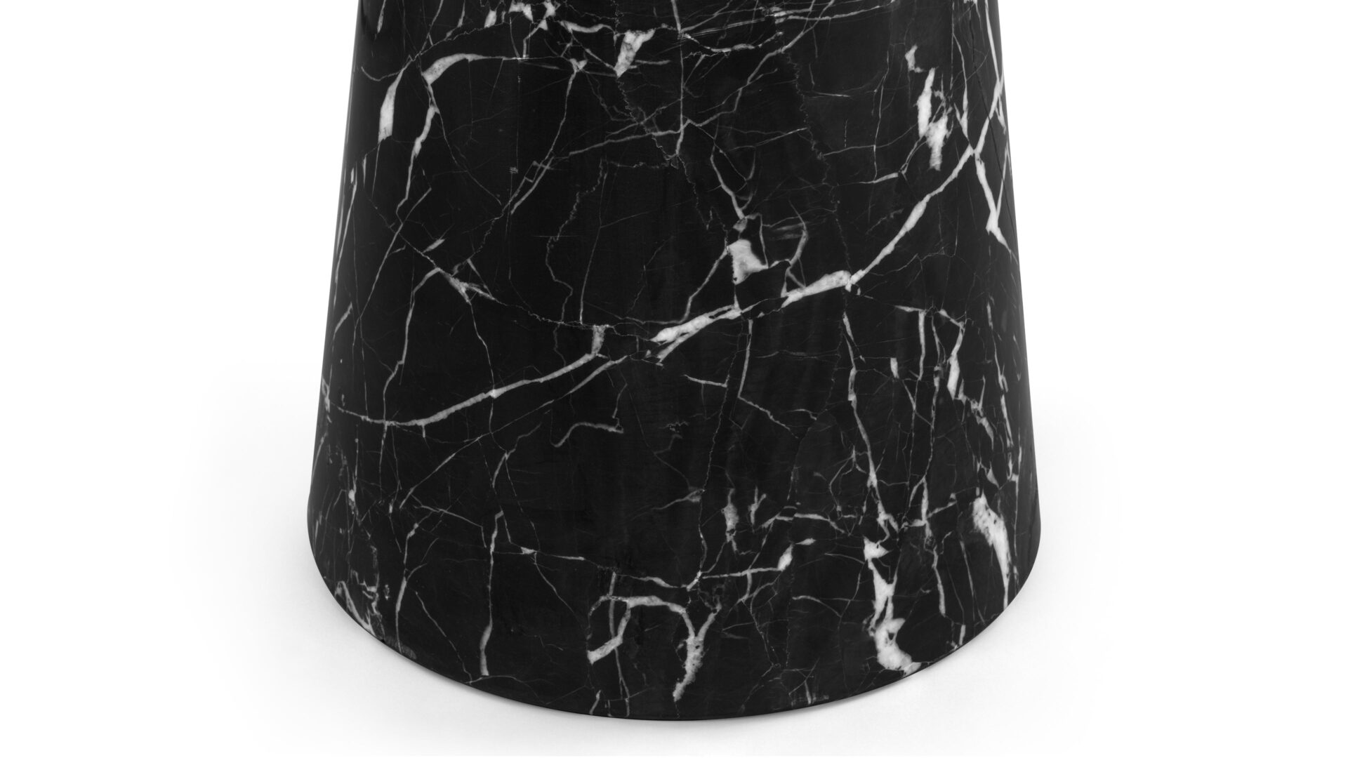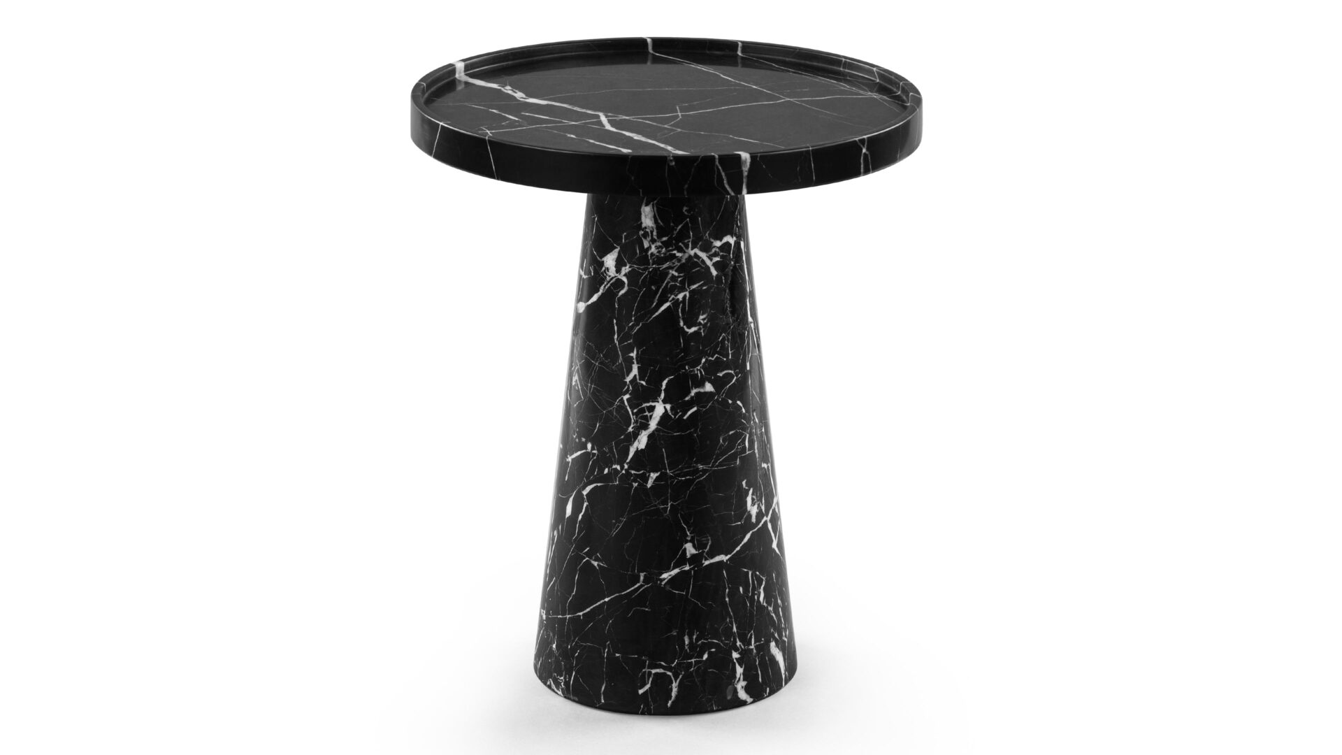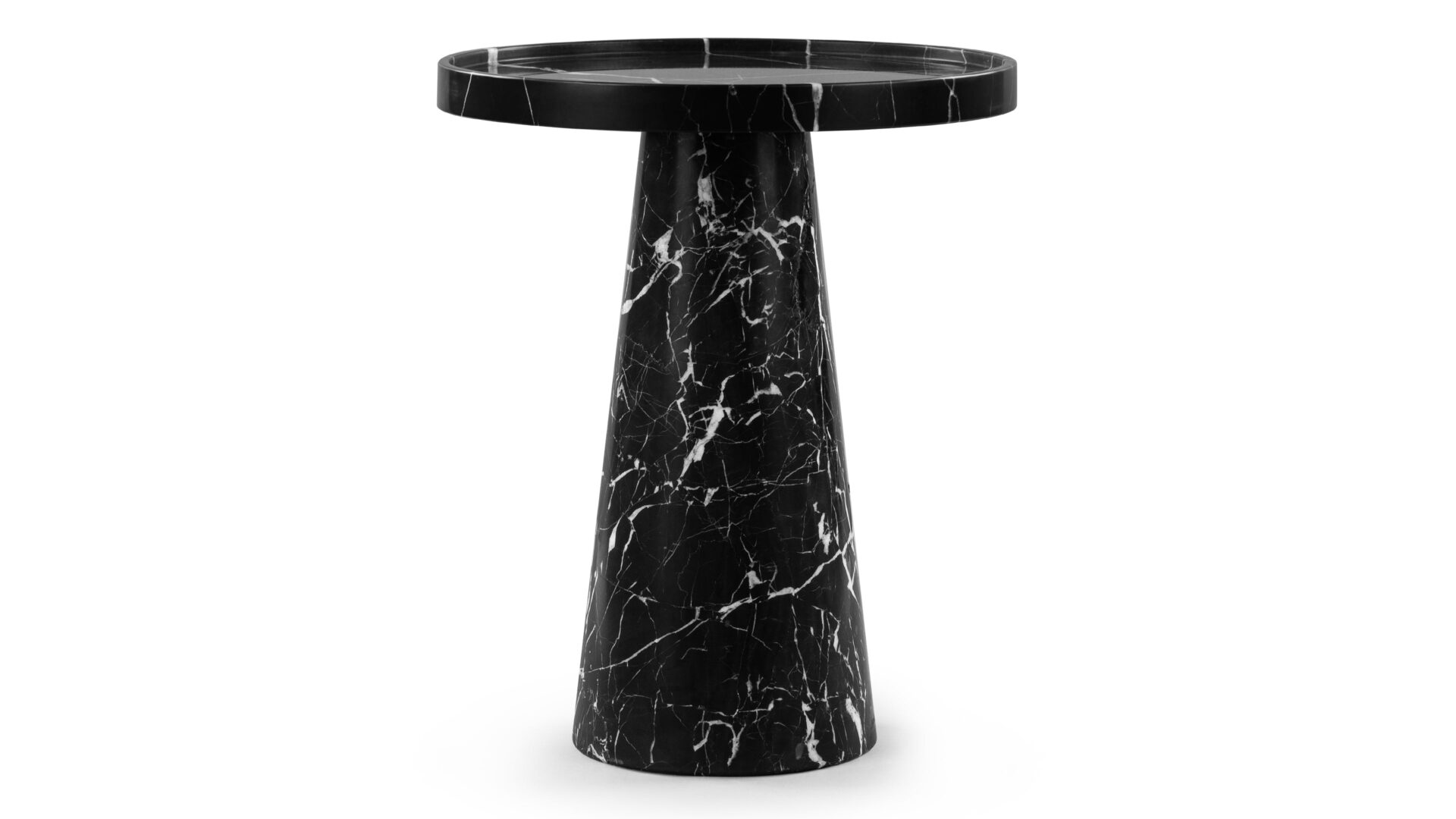 Discover the sophistication and elegance embodied in the Roc Side Table, a meticulously crafted piece of furniture designed with precision and meticulous attention to detail. This marble side table epitomizes modern design aesthetics, showcasing a sleek and polished black marble surface that radiates a timeless allure, making it a versatile addition to any contemporary interior. Its conical base infuses a hint of architectural flair into its overall design, showcasing expert craftsmanship that ensures a perfect balance and stability, while maintaining a visually captivating silhouette. The Roc Side Table is a captivating masterpiece that transcends mere furniture functionality, serving as an artistic expression of modern design principles—a harmonious blend of aesthetics and utility that enhances the sophistication of any space it adorns.